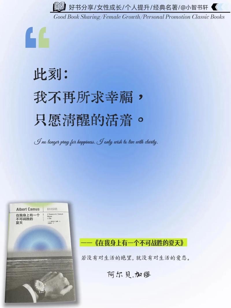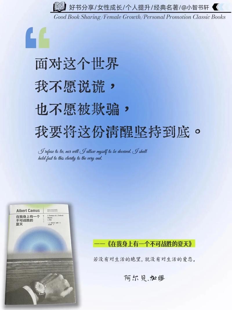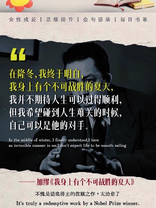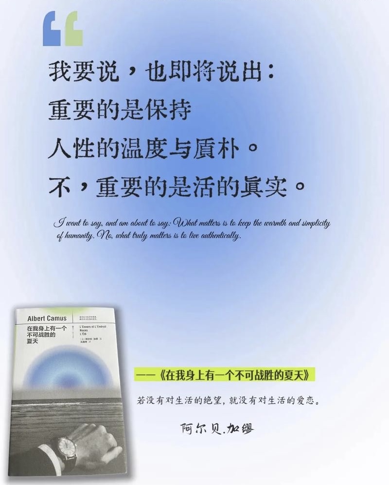 《我身上有个不可战胜的夏天》是潮新闻第十一期阅读活动可免费兑换的书籍之一,其是法国作家阿尔贝·加缪的一部重要散文集,收录了他从1935年至1953年间创作的14篇散文。这本书不仅是加缪从青年走向思想成熟的文学“实验场”,更是他毕生写作母题与哲学思想的源头。 🔍 核心内容与思想脉络 这本书的核心,在于加缪通过描绘阿尔及尔贫民窟的生存图景、北非炽热的阳光与废墟,确立了其独特的存在主义视角。 核心哲学命题:荒诞与美的并置 加缪的哲学思考扎根于具体的感官世界,而非抽象的书斋。在散文中,他始终将死亡、贫困与阳光、海洋这些截然相反的意象并置。例如,在《反与正》中,一位老妇人为自己购买、装修并迷恋上墓地的故事,与叙述者自己在房间内感受阳光、枝叶光影的鲜活生命体验形成强烈对照。这种并置揭示了加缪的核心洞察:生命的璀璨与腐朽永远相互寄生,世界的“荒诞”正源于这种不可理喻的矛盾与反差。 独特的“身体哲学”与“婚礼”精神 与其他哲学家不同,加缪的思想诞生于“烈日炙烤的废墟、咸涩的海风与无花果树的芬芳之中”。他强调用整个身体去感受世界——岩石的温度、浪花的节奏——在感官的狂喜中与宇宙达成短暂的和解。他将自己与提帕萨等地的关系形容为一场“婚礼”,这是灵魂与世界一场炽热而纯粹的“结合”。这种对“世界之不可理喻的美”的绝对忠诚,是其反抗荒诞的起点。 ✨ 核心意象:“不可战胜的夏天” 书名这句诗出自加缪的《重返提帕萨》,它并非指一个季节,而是一种隐喻,象征着人内心那股在认识到世界荒诞本质后,依然蓬勃、无法被摧毁的生命力与激情。 这个“夏天”代表着: · 清醒的勇气:在直面人生寒冬(荒诞、痛苦、虚无)时,保持的清醒与不妥协。 · 反抗的热量:拒绝沉沦与绝望,选择热爱、投入生活本身所产生的那股内在能量。 · 幸福的根源:后来在《西西弗神话》中升华为“应当想象西西弗是幸福的”这一著名论断,其情感与体验的根源,正是本书中那个“在贫民窟阳台上凝望大海的穷青年对生命既清醒又沉醉的双重凝视”。 📖 文学价值与当代意义 这本书展现了存在主义最本真的形态:它不是书斋里的概念游戏,而是“赤脚踏过滚烫沙砾时的痛感与快感”。通过散文这种自由的体裁,加缪记录下了思想生成的原始瞬间,让读者能触摸到他哲学中那份灼热的生命质感。 对于当代读者而言,这本书的意义在于: · 提供了一种面对荒诞的积极姿态:当认识到社会固有的虚伪、虚无与荒诞后,加缪指引的不是颓废,而是在清醒中更热烈地投入生活,在行动与感受中创造意义,做一个“乐观的虚无主义者”。 · 强调感受与体验:在一个被理性与抽象过度包裹的时代,加缪提醒我们回归身体、感官和具体的生活体验,从中汲取力量。 总的来说,《我身上有个不可战胜的夏天》是进入加缪精神世界的一把关键钥匙。它不那么系统,却更鲜活、更动人。它告诉我们,真正的勇气,是能在直视烈日(生命的光辉)如直视死亡(生命的荒诞)之后,依然选择在内心深处培育并守护那个“不可战胜的夏天”。 如果大家想更深入地理解加缪,我可以为你们梳理他的“荒诞三部曲”(《局外人》《西西弗神话》《卡利古拉》)如何从不同维度发展本书的思想哦~