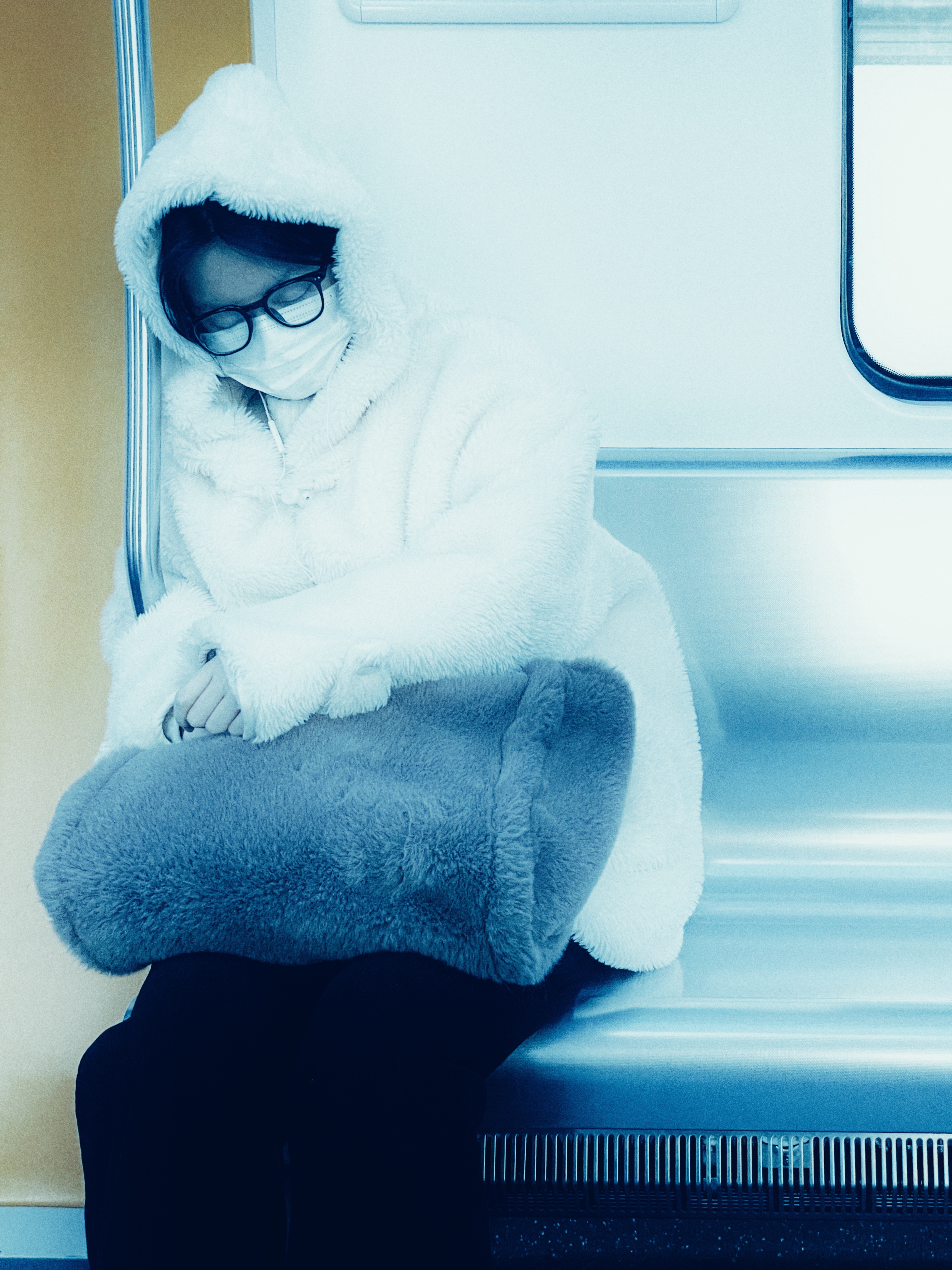 《在摇晃的车厢里,把自己裹成一团温柔。》 地铁呼啸着穿过甬城的腹地,带着钢筋水泥的冷硬与烟火气的温热,在隧道里划出长长的风。她缩在车厢一角,像一颗被温柔包裹的茧。白色毛绒外套兜住半张脸,口罩与眼镜在皮肤上压出浅痕,却丝毫不影响她此刻的松弛。 车窗外的光影忽明忽暗,像城市眨动的眼睛。广告牌的霓虹、站台的白光、隧道里的漆黑,在她脸上投下流动的光斑。她却始终垂着眼,仿佛外界的一切都与她无关。膝头的灰色抱枕被圈在怀里,像抱着一团柔软的云,隔绝了车厢的凉意与人群的喧嚣。 这是属于都市人的独处时刻。周围或站或坐的乘客,各自揣着心事。有人对着屏幕皱眉,有人耳机里淌着旋律,有人随着车身摇晃打盹。唯有她,在这逼仄的空间里,开辟出一方小小的安然。没有匆忙的步履,没有待办事项的催促,只有呼吸随着车身轻轻起伏。 或许她刚结束一天的奔波,或许正奔赴一场约会,或许只是想在城市里漫无目的地晃荡。但此刻,这些都不重要了。地铁是移动的岛屿,载着疲惫的旅人,也载着片刻的安宁。毛绒外套的暖意,口罩后的呼吸,抱枕的柔软,共同织就了一张温柔的网,将她与外界的纷扰轻轻隔开。 宁波这个城市,从不会因为某个人的停顿而放慢脚步,但总有人能在疾驰的生活里,找到属于自己的节奏。她就那样安静地坐着,像一株在角落兀自生长的植物,不张扬,不迎合,只在自己的时区里,享受着独有的安然。 当列车抵达下一站,人群涌来又散去,她依旧保持着蜷缩的姿势。有光透过车窗,在她的外套上镀上一层柔和的光晕。原来真正的安然,从不是避开车马喧嚣,而是在心中修篱种菊。在这趟永不停歇的城市列车上,她用自己的方式,与世界温柔相处。