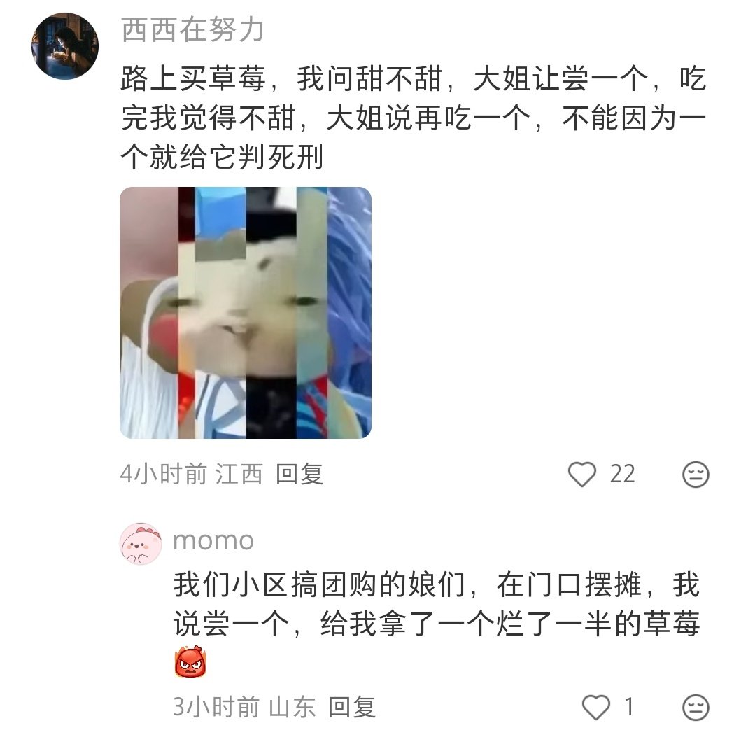哈哈哈我经常遇到这种情况,尝了觉得不好吃或者不甜,可是尝都尝了,又不好意思不买了,就硬着头皮少买点[泪奔]