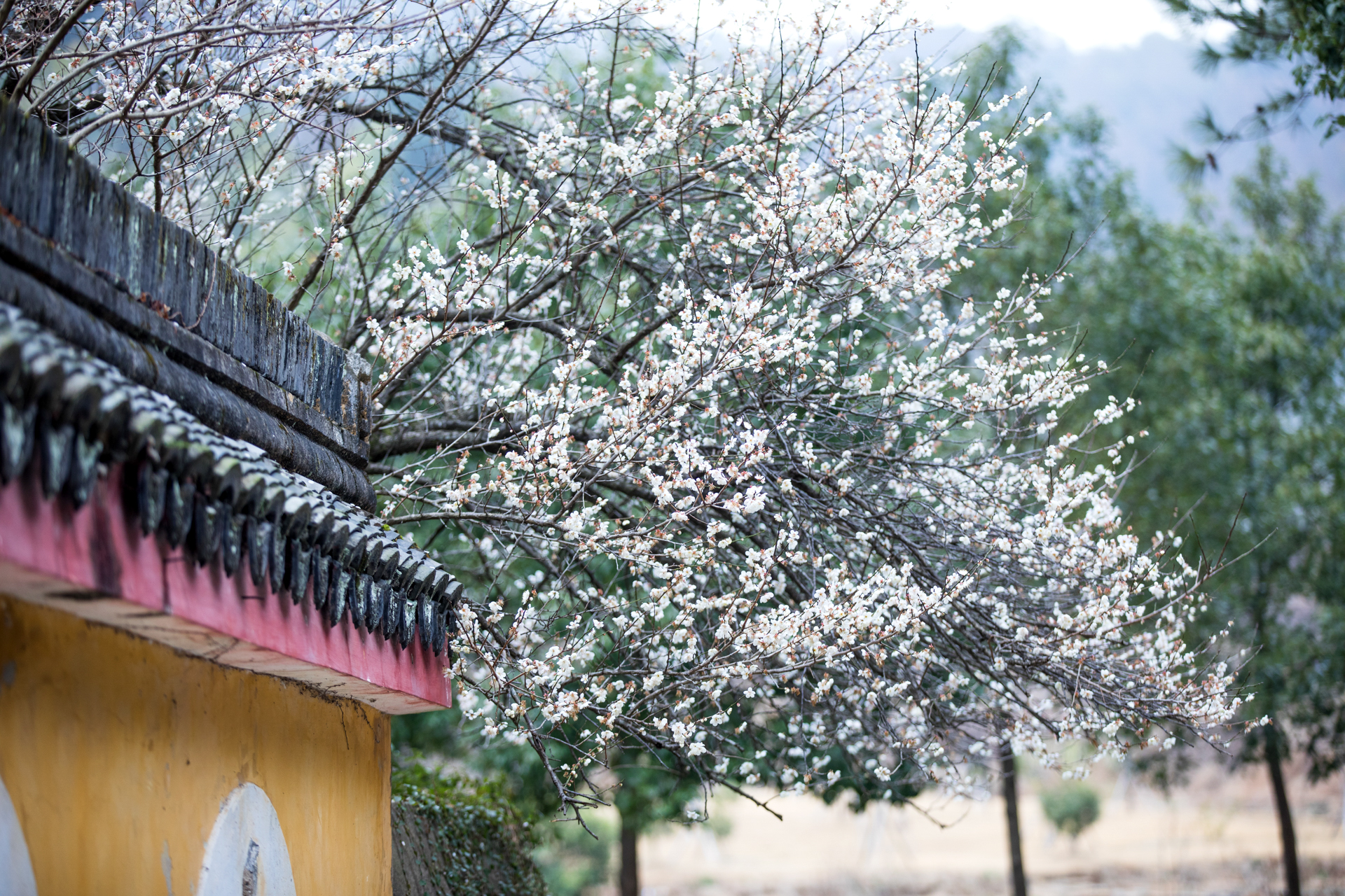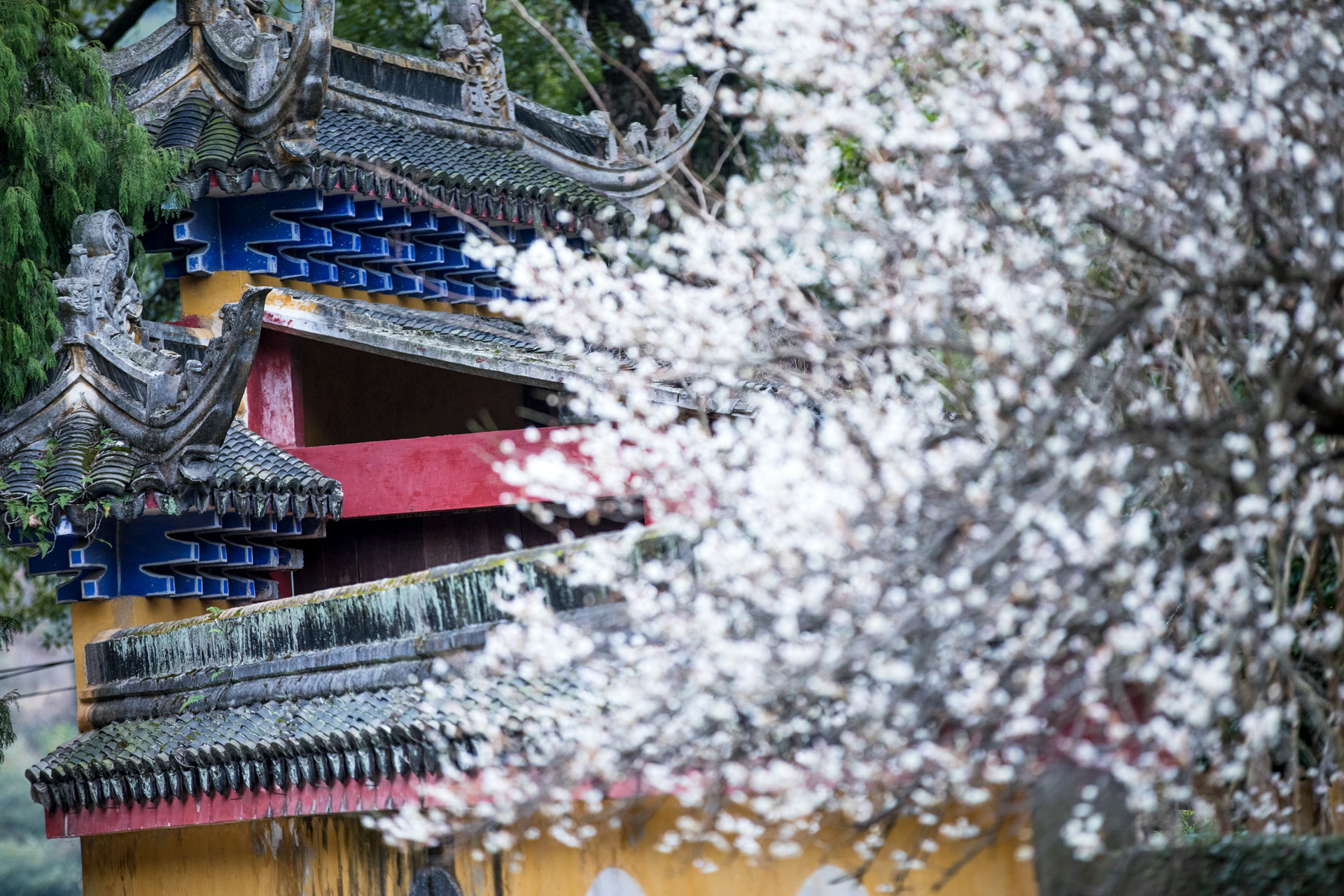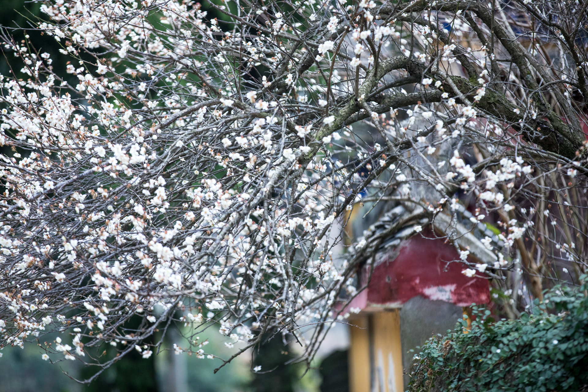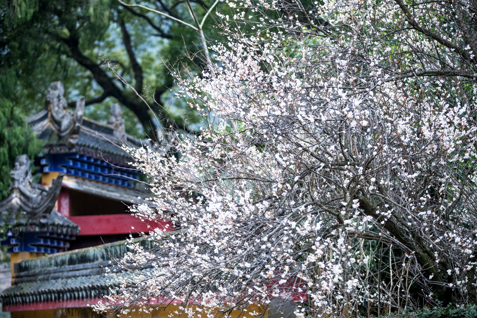 温岭妙严禅寺的白梅探出黄墙,殷勤欲递春信。花开得倦了,倚着门楼,将残未残的瓣,像被雨水浸透又风干的旧信笺,字迹模糊,余韵犹存。