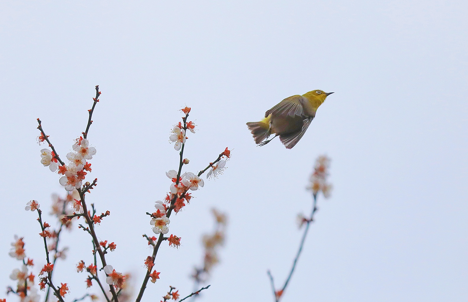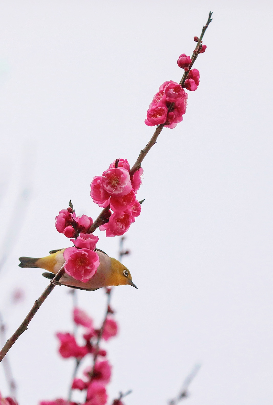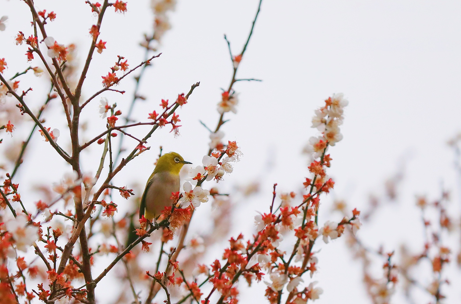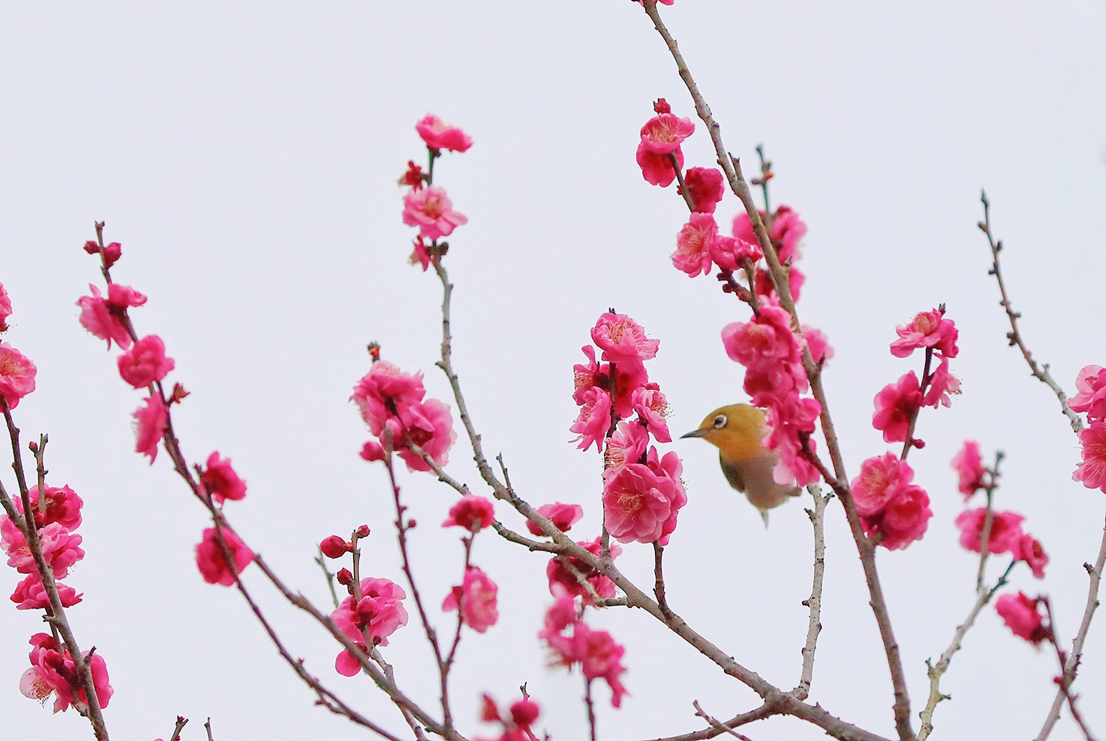 梅花枝头,一只小鸟轻栖,啁啾声里春意初萌。蓝天为幕,花#梅花盛开的季节 影摇曳,风过处暗香浮动。镜头凝住这刹那的生机与静美——原来春天,是鸟翅掠过花梢时,抖落的一缕光。#我的家乡出圈记#