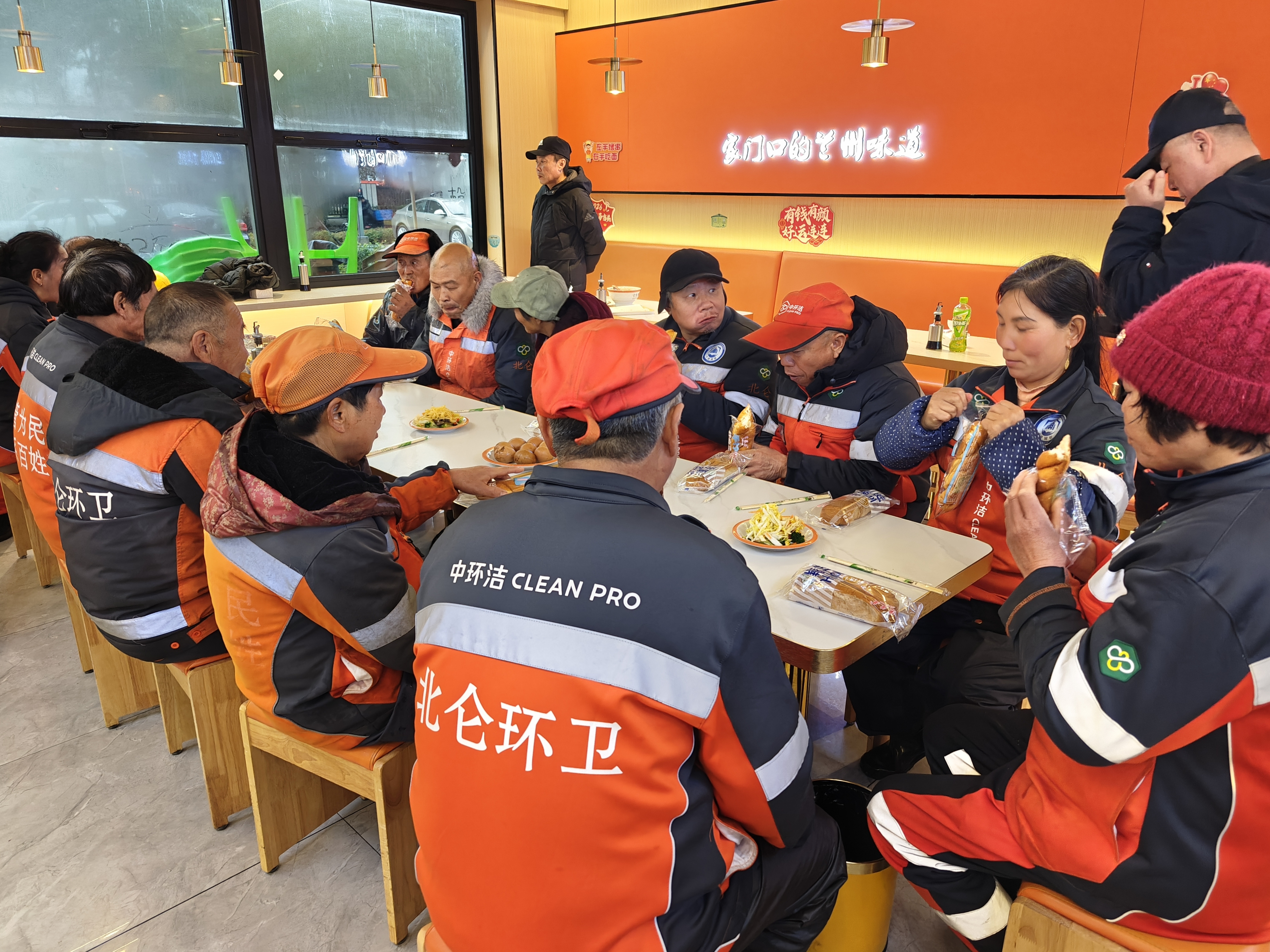 1月30日,富春社区商圈工会志愿者为外卖员小哥、环卫工人等新就业群体精心筹备了一场温馨的团圆饭,让坚守岗位的他们感受到社区工会大家庭的关怀与冬日暖意。