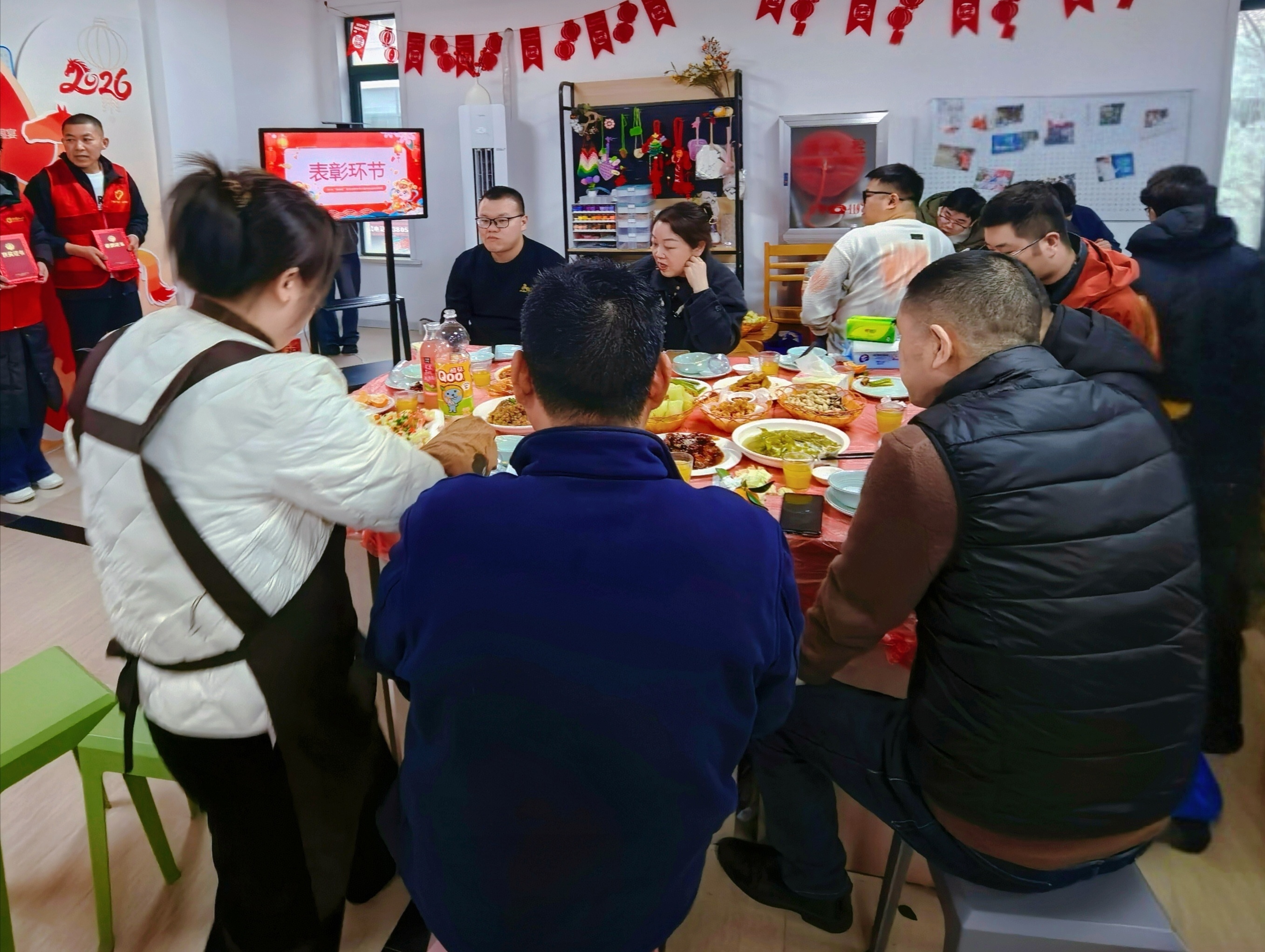 1月30日中午,春晓街道春晓湖工业社区工会联合会在辖区零工市场,为常年奔波在外的外卖员小哥等新就业群体精心筹备了一场温馨的迎新团圆宴,并且贴心地为部分无法停下工作脚步的外卖小哥准备了爱心便当,让坚守岗位的他们感受到社区工会的关怀与冬日暖意。 宴席现场暖意融融,社区工作人员提前布置场地、备齐家常菜肴,大家围坐一桌话家常、品美食,在欢声笑语中卸下奔波疲惫。社区还热情准备了丰富的活动和暖心伴手礼,既传递对新就业群体辛勤付出的肯定,也让他们在异乡感受到“家”的温暖,切实增强了归属感与幸福感。