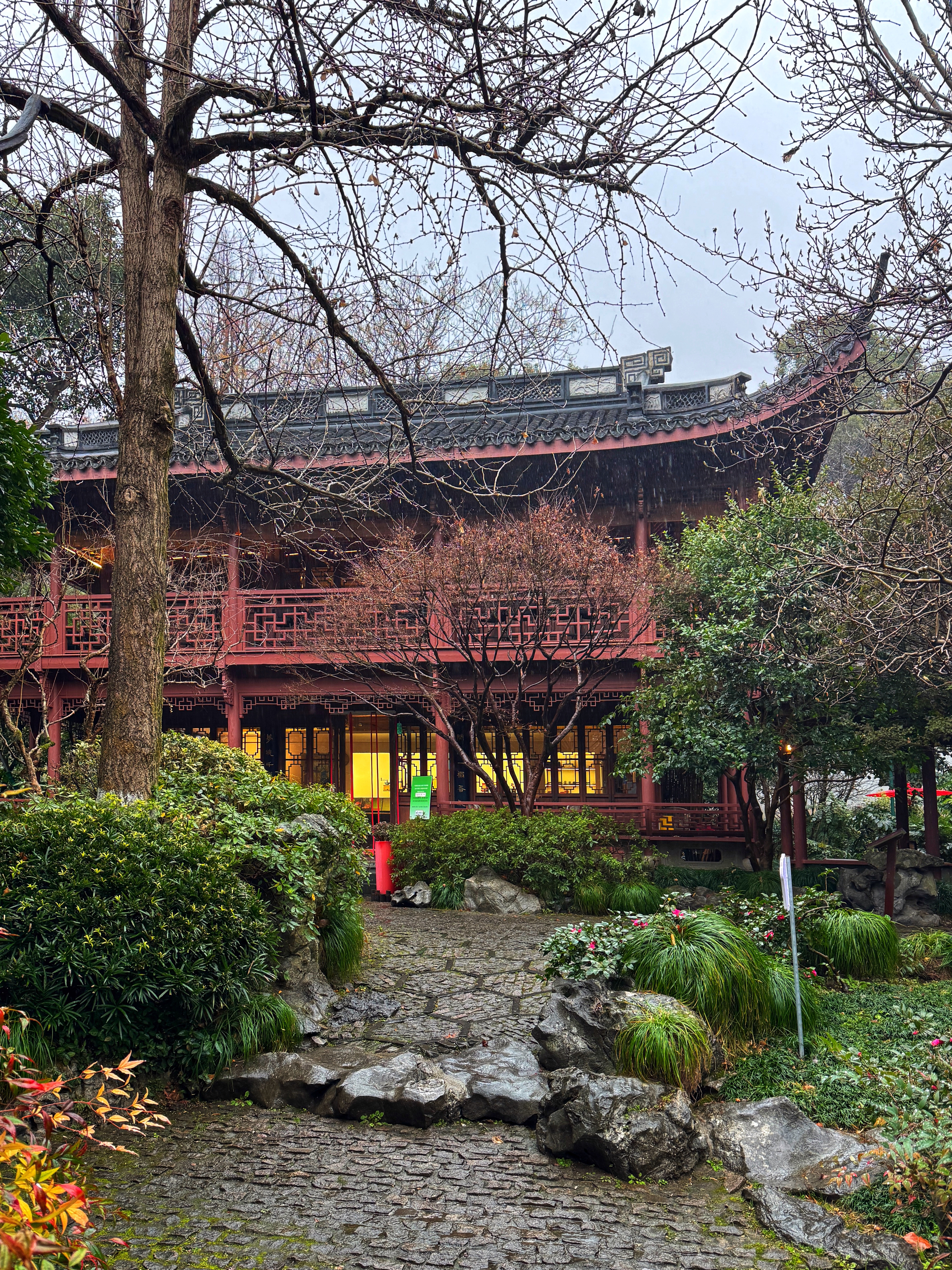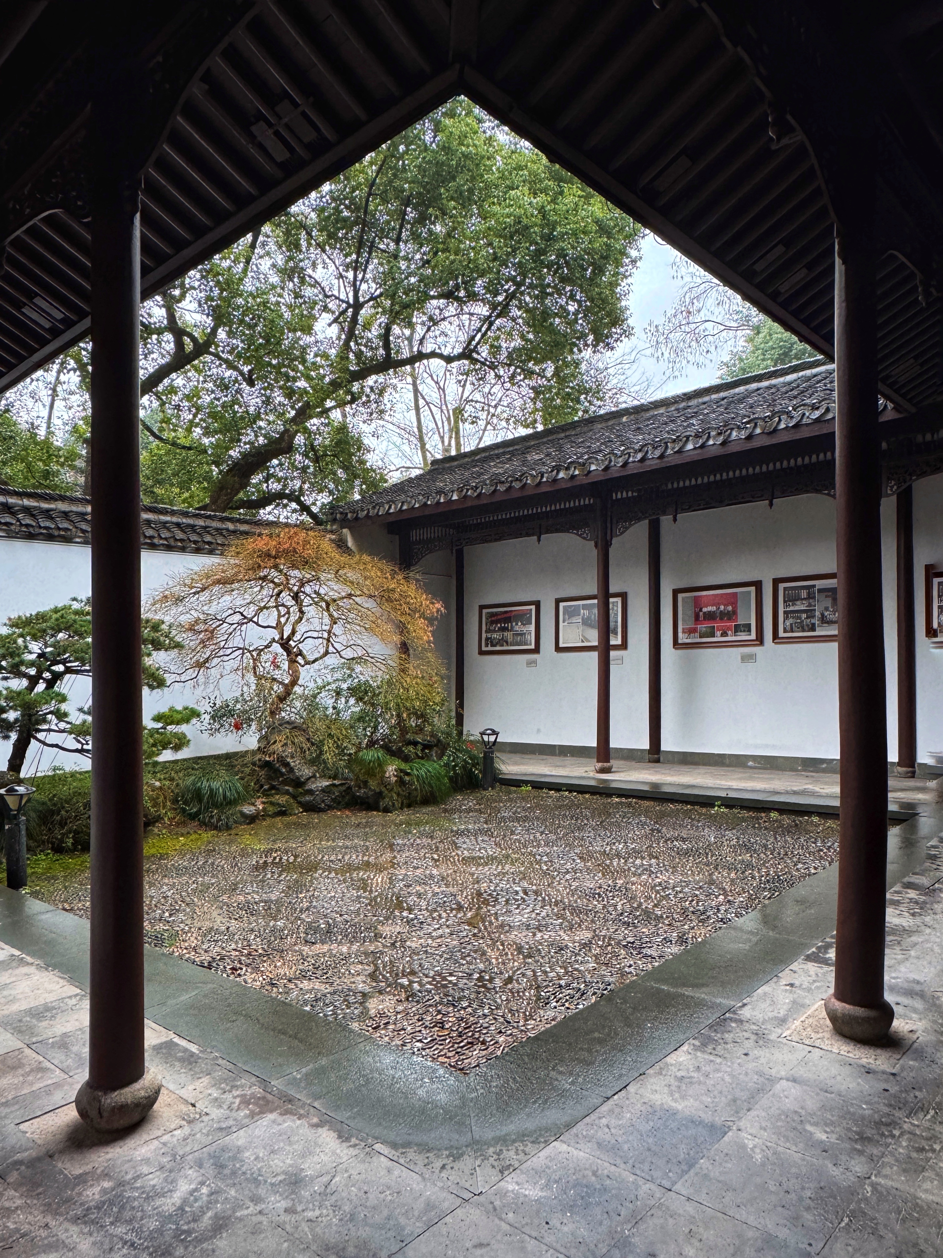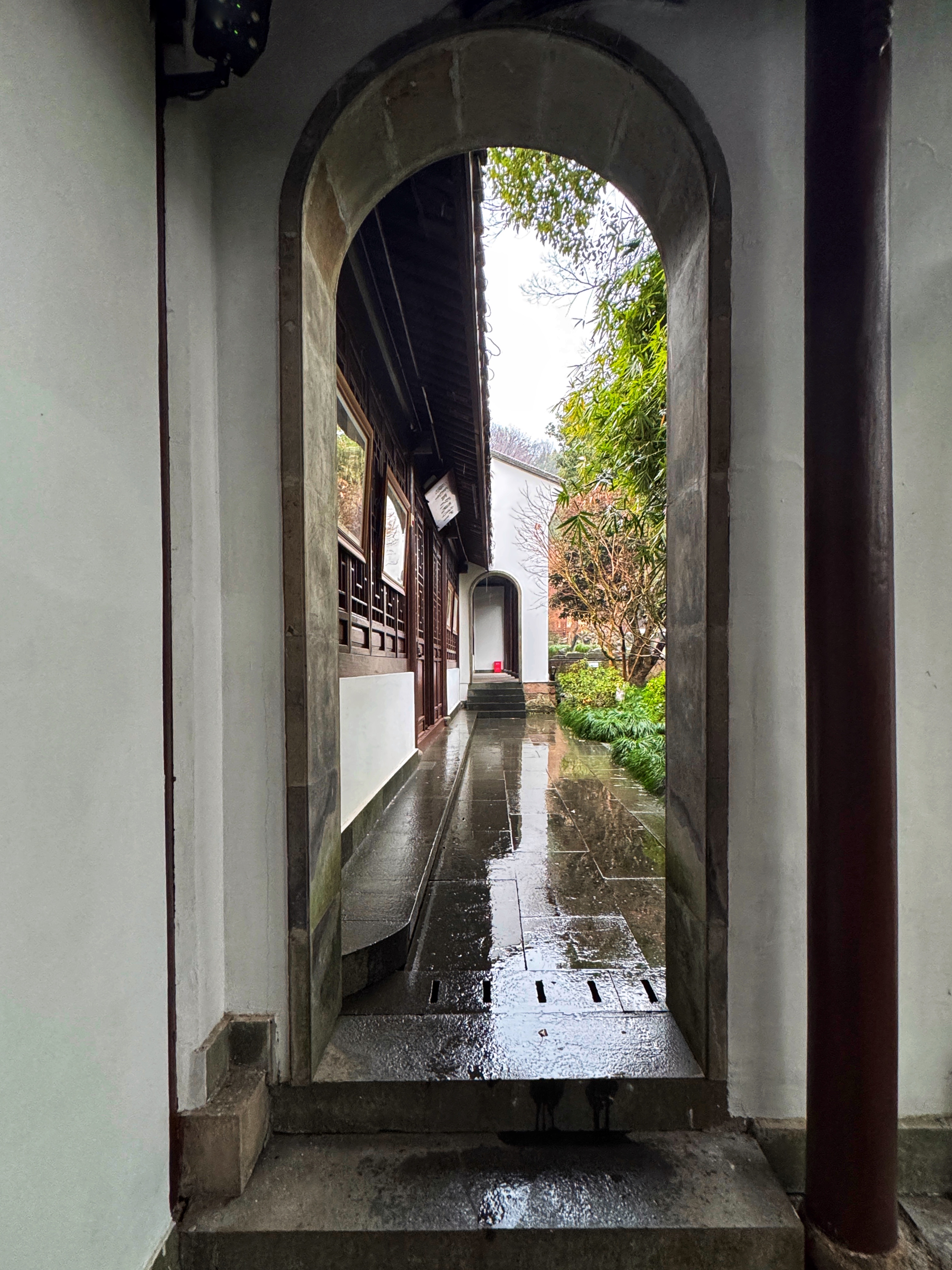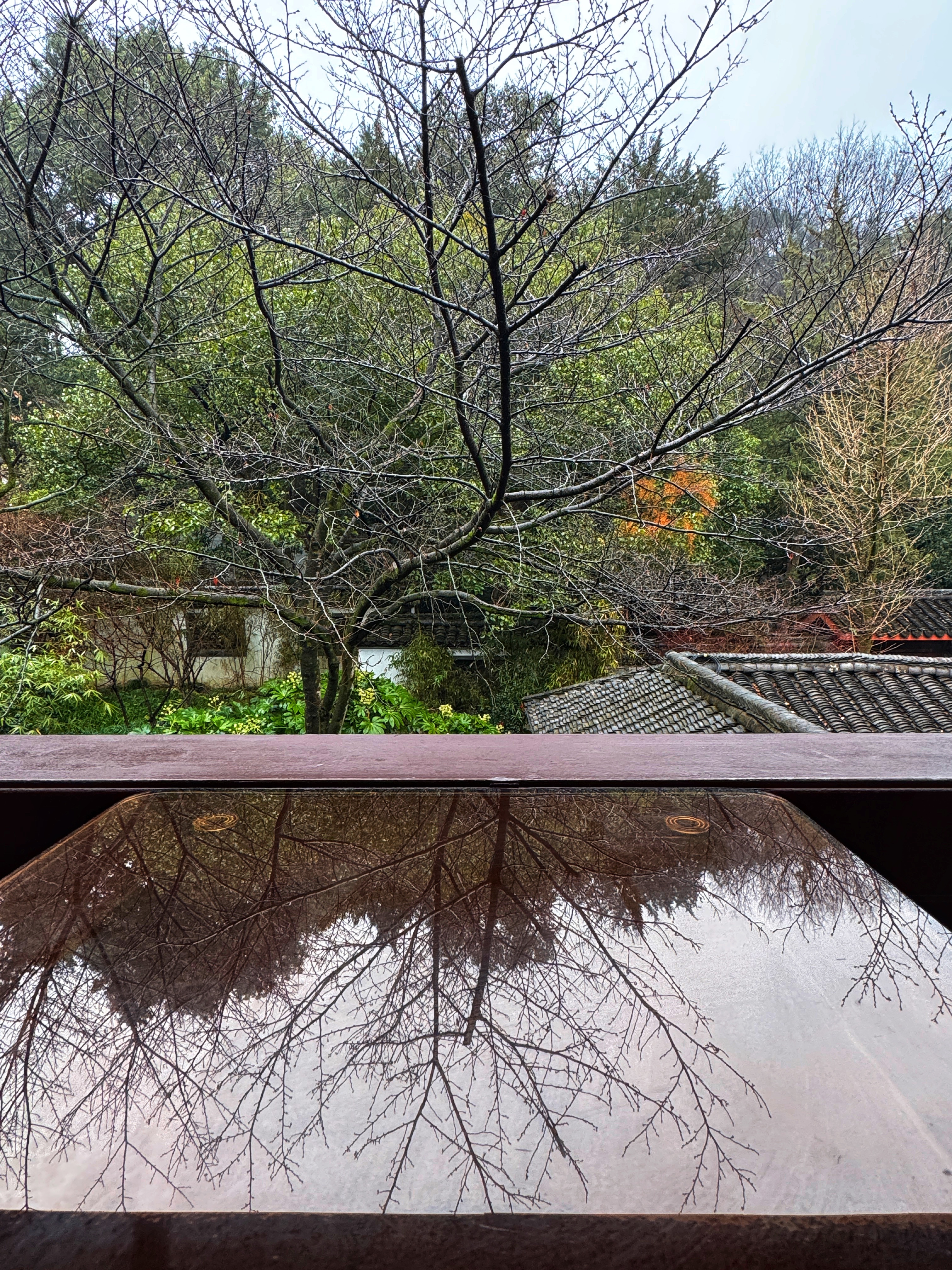 雨中漫步玛瑙寺 雨落葛岭,漫行玛瑙寺。黛瓦粉墙的清式院落间,雨珠轻敲廊柱窗棂,后仆夫泉旁、连横事迹厅前的腊梅凝着雨珠,暗香随雨丝漫开,池面碎玉点点,与檐滴、叶响揉成自然的轻曲。