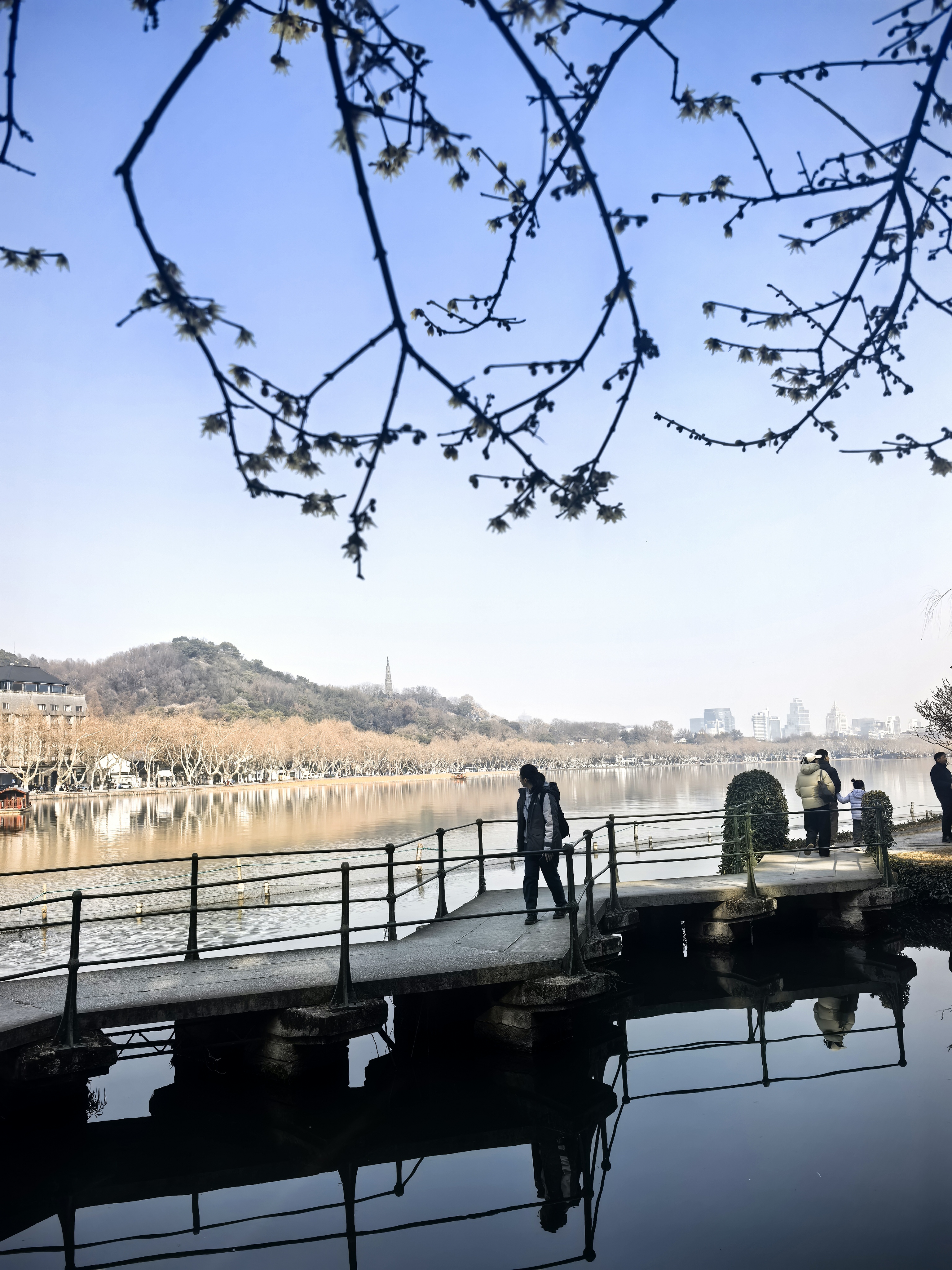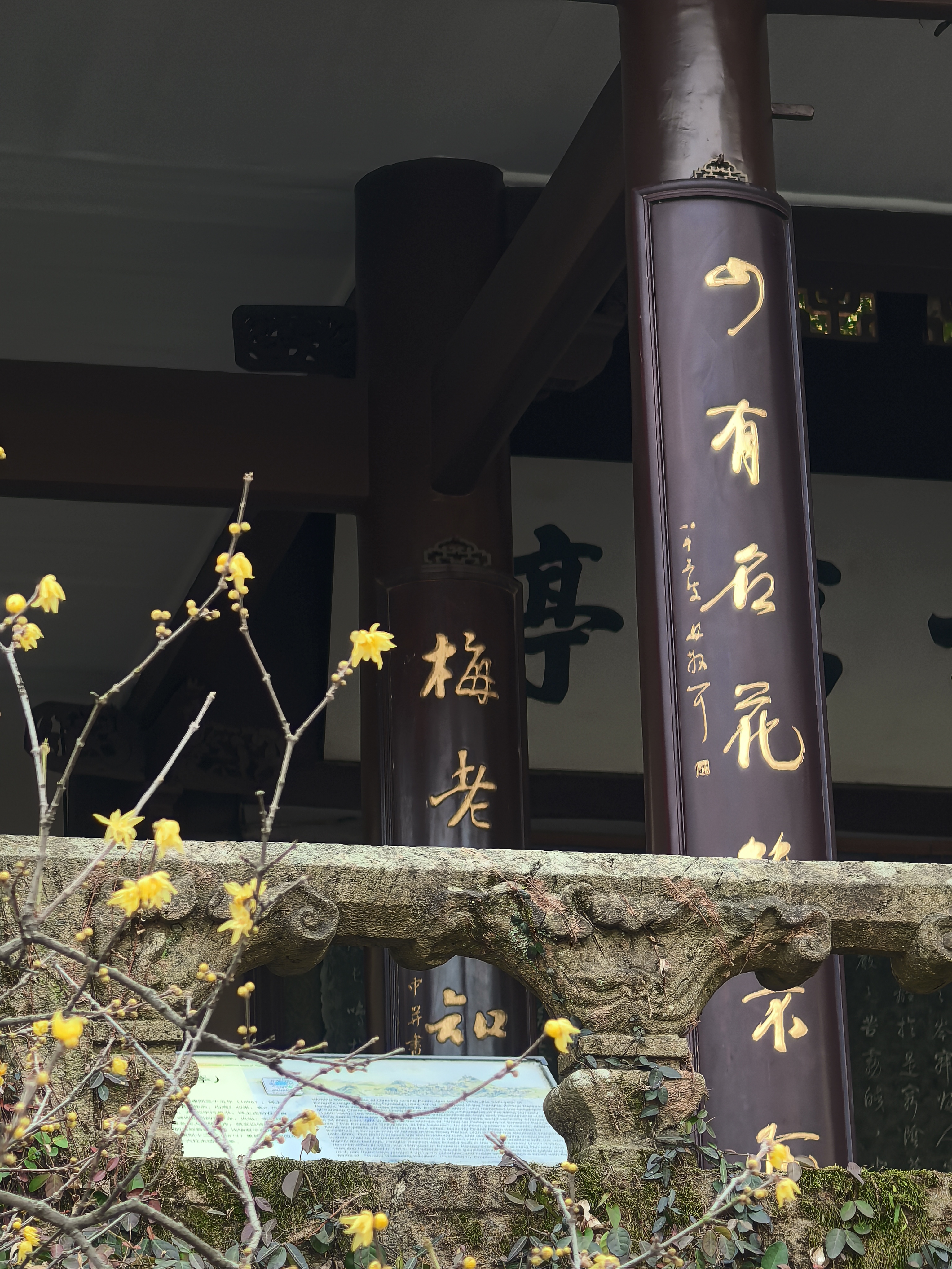 孤山放鹤亭,自北宋林逋结庐栖隐、以梅为妻以鹤为子,便成了历代文人心中清雅的精神符号。此亭历经岁月兴废,今亭虽非古构,却承续着千年诗意。 这段时间蜡梅是这里的主角。此处的蜡梅零星点缀,不似北面梅园那边枝繁花茂,倾泻而下,但数枝花瓣与亭台、湖光相映,倒也有些清趣。镜头里定格的不止是花影,更是林逋笔下“疏影横斜水清浅”的古意。 昔年林逋植梅养鹤,是隐逸的清寂;而今人于梅下流连,是喧嚣中打捞诗意的热闹。花开花落间,放鹤亭始终是时光的渡口,一头系着千年前的疏淡烟霞,一头系着今时的熙攘人间,让每一次赏梅,都成了与历史和当下的紧密相拥。 有一文友摄友说以前差不多每天都在这亭子下小栖。今儿经过,如见其人。