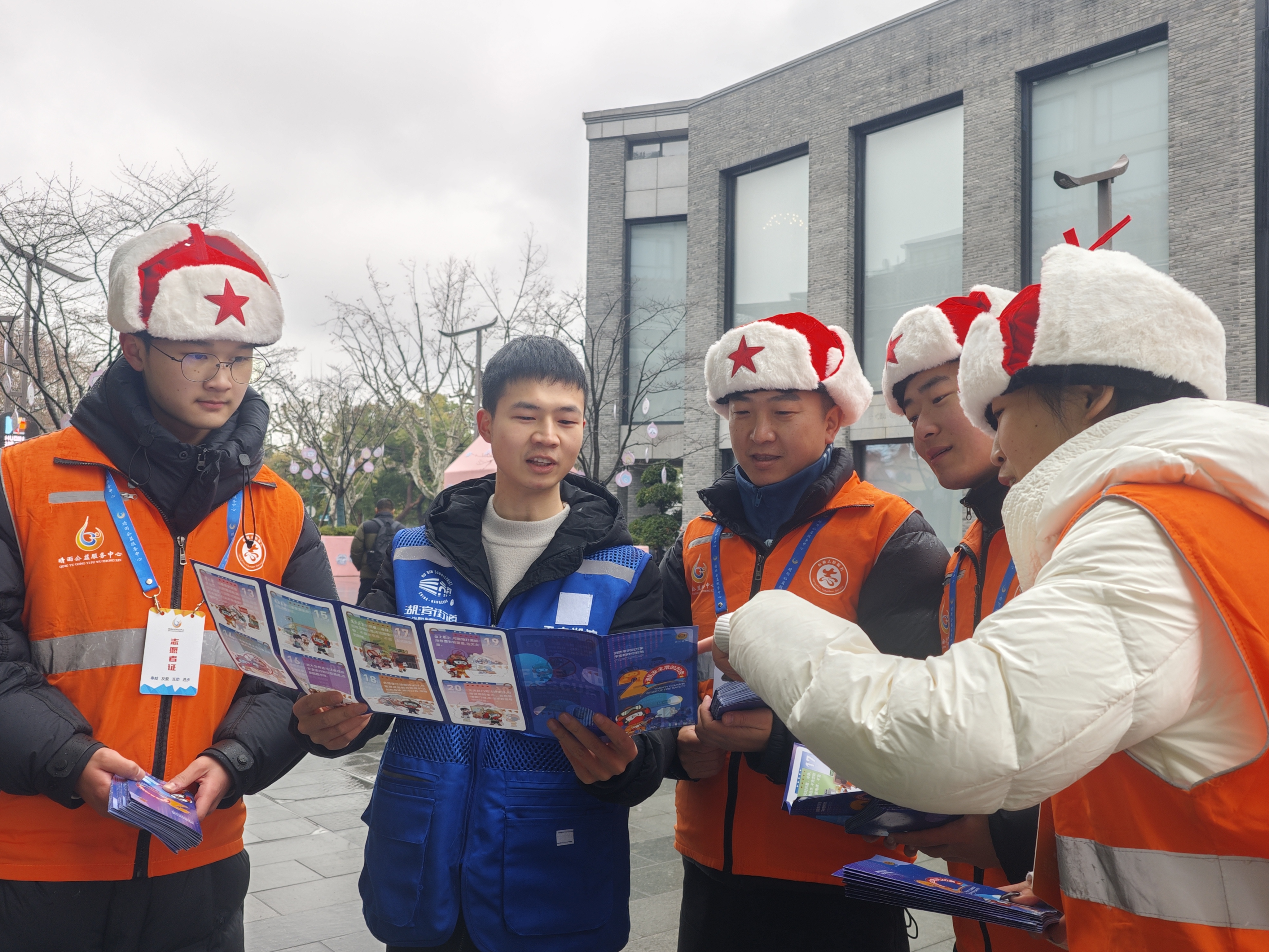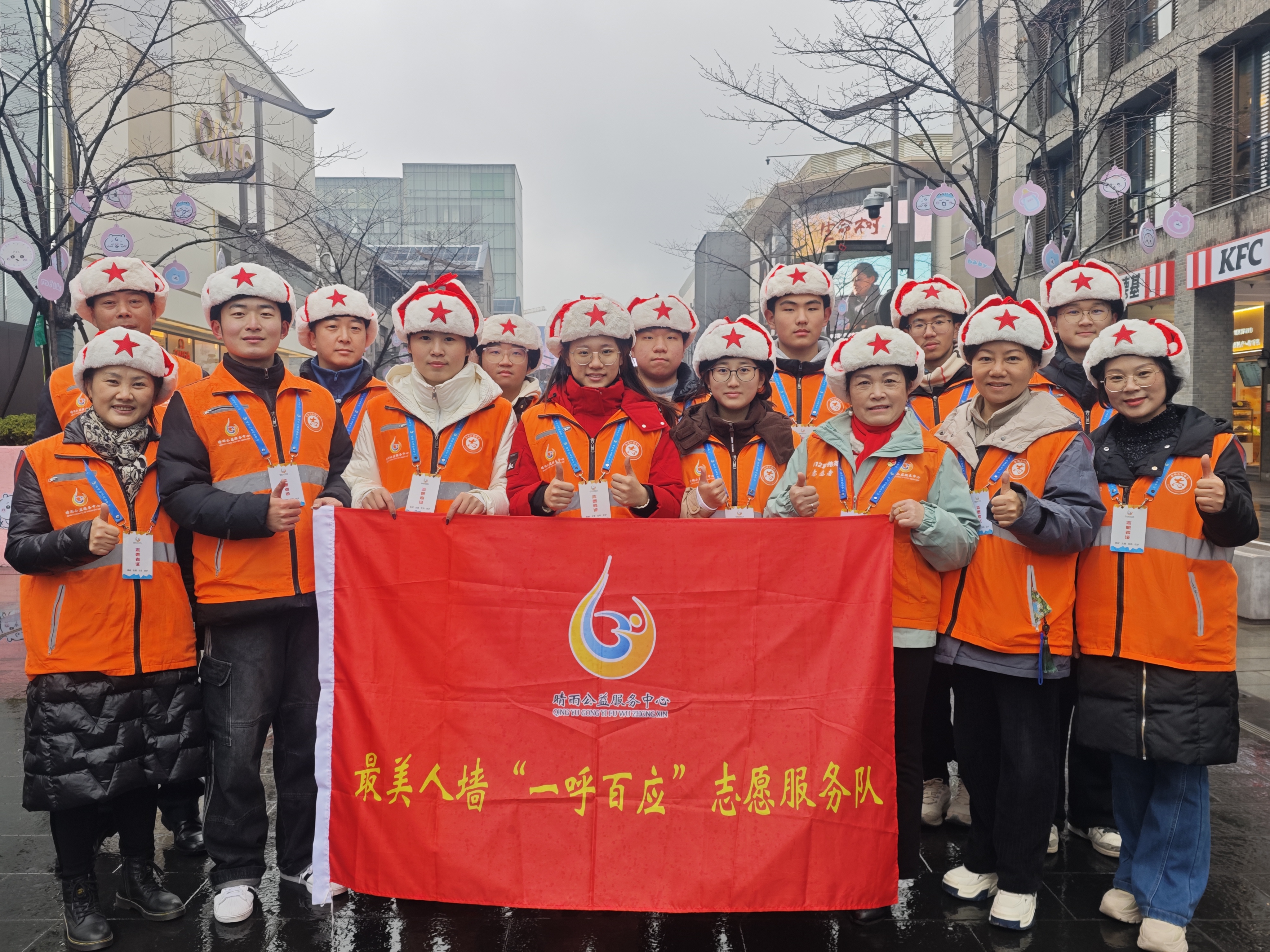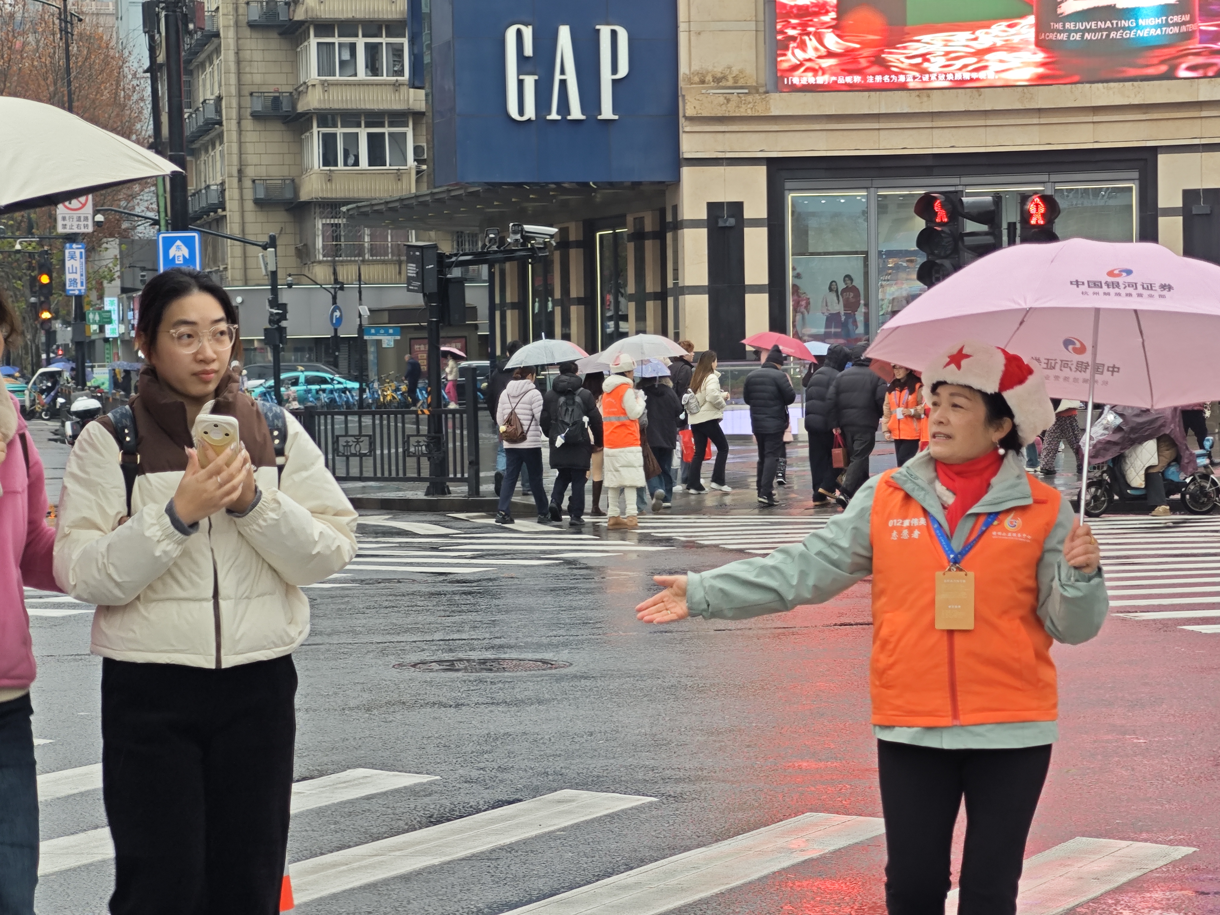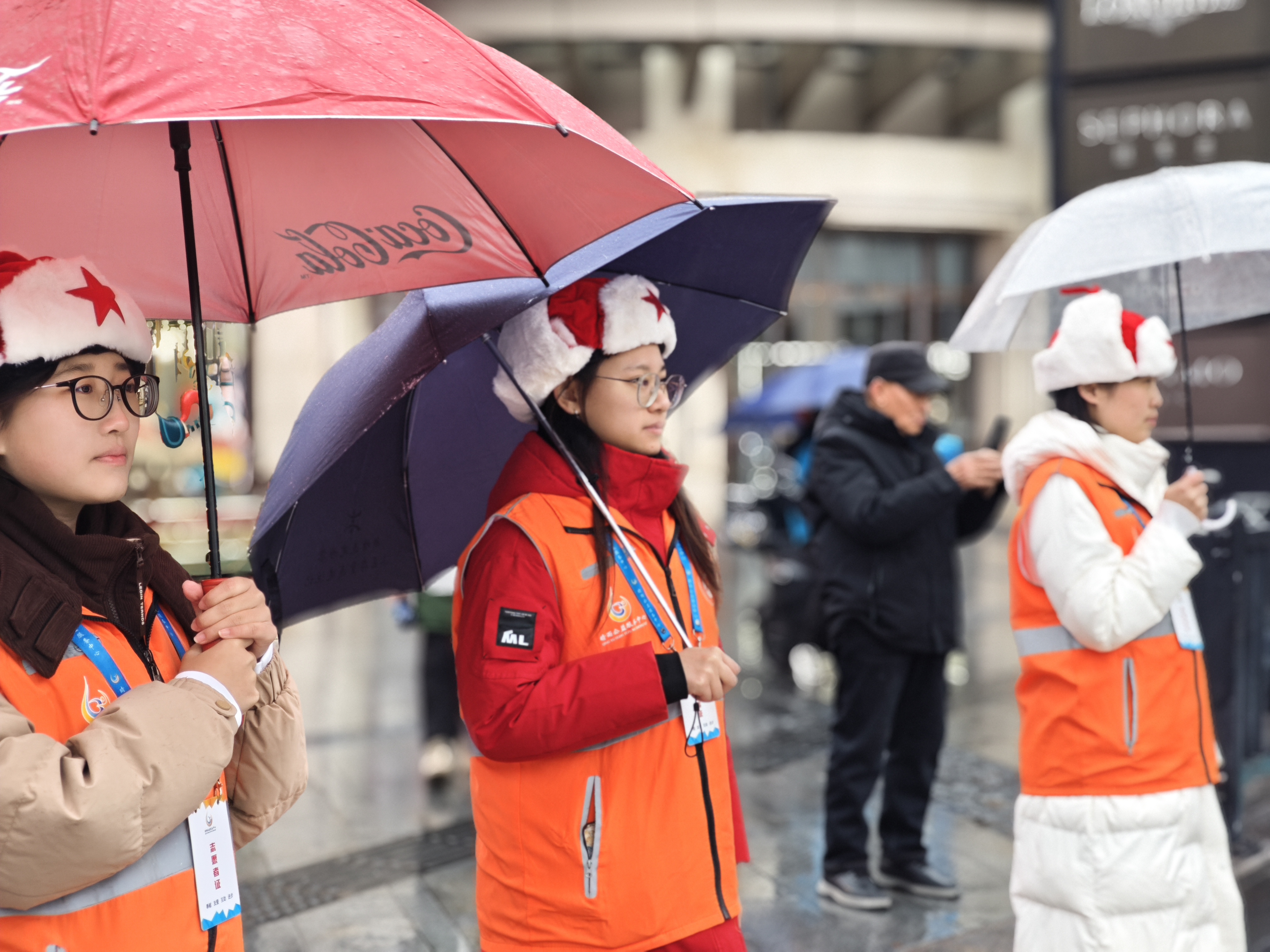 橙衣执伞,雨中筑起最美人墙;西湖畔,志愿红点亮文明出行画卷。