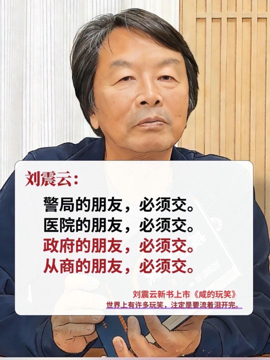 《咸的玩笑》是潮新闻春风月榜2026年1月推荐的好书之一,其是刘震云在2025年底推出的长篇小说,是其“延津宇宙”的最新篇章。这部作品通过主人公杜太白跌宕起伏的命运,以“含泪的哲学”诠释了普通人如何笑对生活的荒诞与艰辛。 📖 核心内容:一个普通人的三重“玩笑” 小说讲述了中学教师杜太白在中年时期,接连遭遇三次突如其来的命运转折: · 第一次转折:因一场被误解的“耍流氓”指控,他丢了教职,沦为小城的“过街老鼠”。 · 第二次转折:为谋生,他成为穿梭于红白喜事的司仪,连接生死悲欢。 · 第三次转折:最后连这份工作也难以为继,他流落街头,成为一名小贩。 这三次“玩笑”并非简单的厄运,刘震云借此揭示了一个朴素的生活真相:“世上的事情,是突然发生的”。杜太白的人生轨迹被彻底改变,从一个人变成另一个人,又变成第三个人。 💡 核心主题与思想深度 1. “咸”的双重况味:“咸”既是眼泪与汗水的味道,象征生活的苦涩与重压;也指海水蒸发后结晶出的“盐”,象征生命在压力下淬炼出的韧性、尊严与独特价值。小说结尾,杜太白尝到自己眼泪的咸味,正是对这种生命况味的点题。 2. “异彩”:平凡灵魂的光泽:小说着力挖掘被生活掩埋的“异彩”。 · 裁缝老殷执着于思考秦始皇的活法与死法,想去西安看兵马俑。 · 卖糖葫芦的老辛热衷打探别人隐私,却自诩“先天下之忧而忧”。 · 杜太白给儿女起名“巴黎”、“纽约”、“伦敦”,将自己去不了的远方寄托在名字里。这些“异彩”是普通人对抗生活同质化、守护内心世界的精神火种。 3. “活扣”与“死扣”的隐喻:当杜太白陷入困境时,围观者的冷漠与指责给他的生活系上难以解脱的“死扣”;而真正的善意,是为他人留下能够喘息和解开的“活扣”。这呼吁了在人际交往中多一份理解与宽容。 4. 孤独的现代回声:小说延续了刘震云对“中国式孤独”的探讨,但更侧重于现代社会中人与人之间的“不被理解”。杜太白在遭遇网络暴力时的辩白无人倾听,展现了数字时代个体在众声喧哗中的孤立无援。 ✍️ 艺术特色与叙事创新 · 结构游戏:“题外是正题,正题是题外” 全书分为 “正文一—题外话(三十三章)—正文二” 三部分。开篇“正文一”讲述智明和尚的佛门往事,主体“题外话”才是杜太白的俗世人生,最后的“正文二”又回到智明和尚女儿在泰安开的小饭馆。这种结构打破了线性因果叙事,体现了刘震云所说的“生活中充满血脉相连的暗流”。 · “暖幽默”的风格演进 相较于早期作品中冷峻的讽刺,刘震云在本书中展现出一种更具包容与疗愈感的 “暖幽默” 。这种幽默并非消解苦难,而是以一种带着体温的共情,抚过生活的瘀青,让读者在会心一笑中释放压力,获得慰藉。 · “延津宇宙”的纵深拓展 小说场景仍在其文学故乡“延津”。通过对羊肉烩面、芝麻烧饼等日常饮食,以及婚丧嫁娶等民俗的细致描写,构建了一个高度自洽的叙事场域。同时,这片土地的精神边界又是开放的,延津人的悲欢能与更广阔世界中人们的孤独困境产生共鸣。 📚 综合评价与文学价值 《咸的玩笑》标志着刘震云创作的一次温情转向。他从一个冷静的社会剖析者,更多地转向为平凡灵魂的倾听者与共情者。在精准呈现生活咸涩的同时,他更致力于勘探并照亮普通人精神矿层中那些“自带微光的矿石”。 这部作品的文学价值在于,它以最质朴、憨厚的语言,完成了对当代中国普通人精神图谱一次深切的描绘与确证。它告诉我们,生活或许是咸的,但认真活过、在困顿中依然守护内心“异彩”的生命,终能咂摸出属于自己的回甘。 如果大家对刘震云的“延津宇宙”感兴趣,或者想了解小说中更多充满“异彩”的配角故事(比如那位自比第欧根尼的冥想馆主申时行),我们可以继续深入探讨哦~