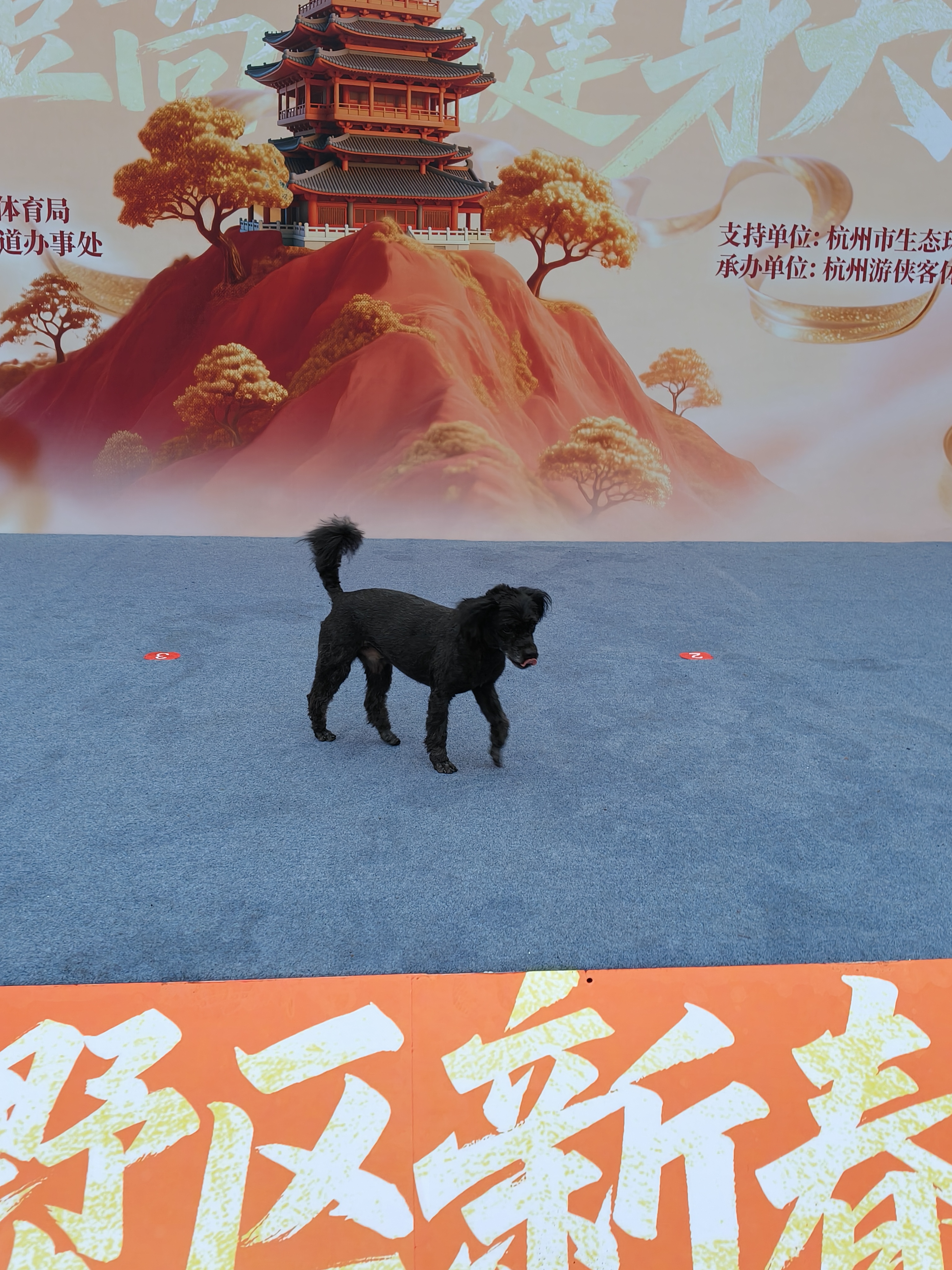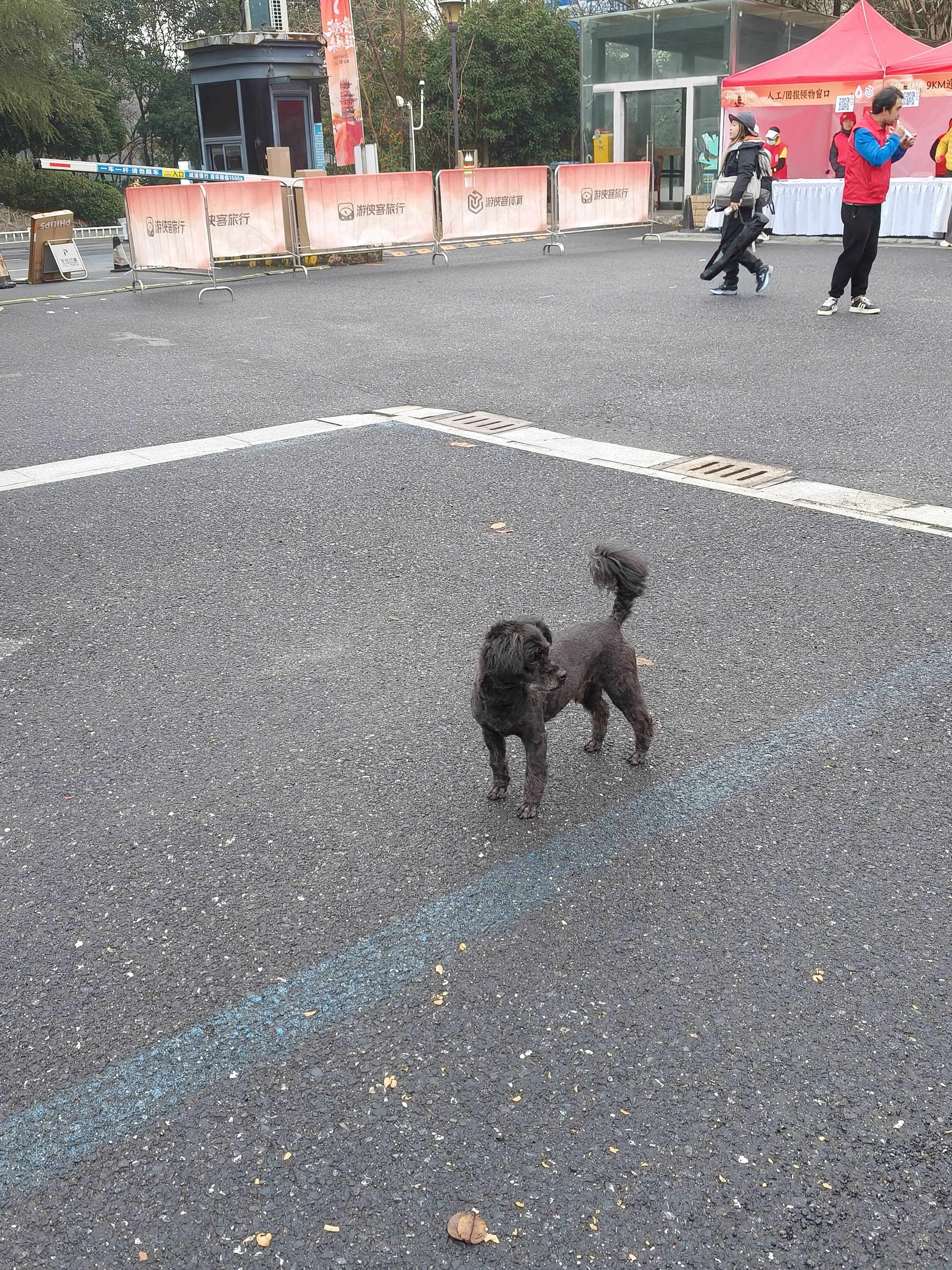 跟着主人来虎山公园跑牛的狗,主人说它也可以跑40公里,太厉害了吧,怪不得也想上台领奖。