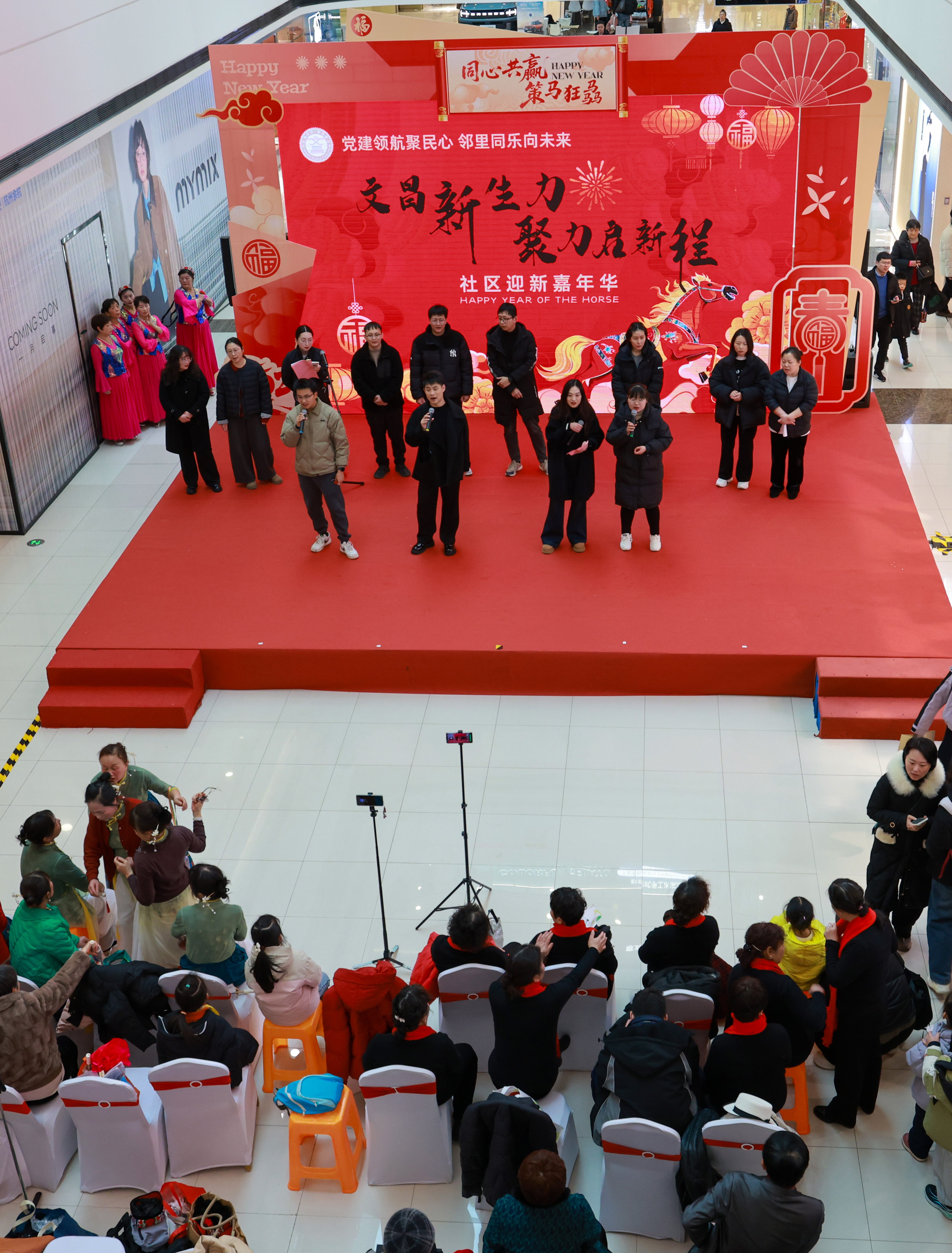 文昌社区文昌社区迎新嘉年华,红灯笼高挂,福字展板前孩子踮脚摸“福”;腰鼓咚咚响,小手敲出新年节奏;书法台墨香四溢,春联刚写好就被抢走;亲子编绳、踢毽子笑作一团~马年味儿,就藏在这热腾腾的烟火气里!