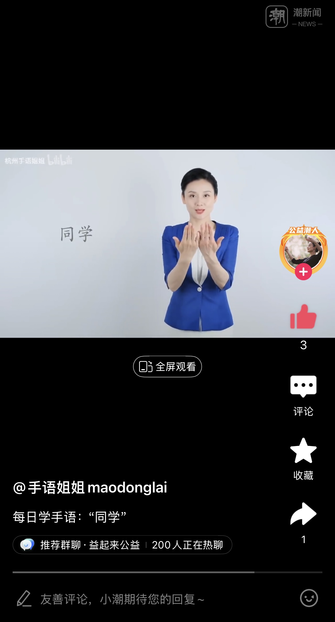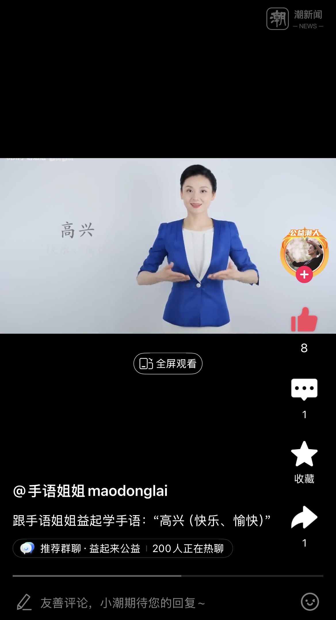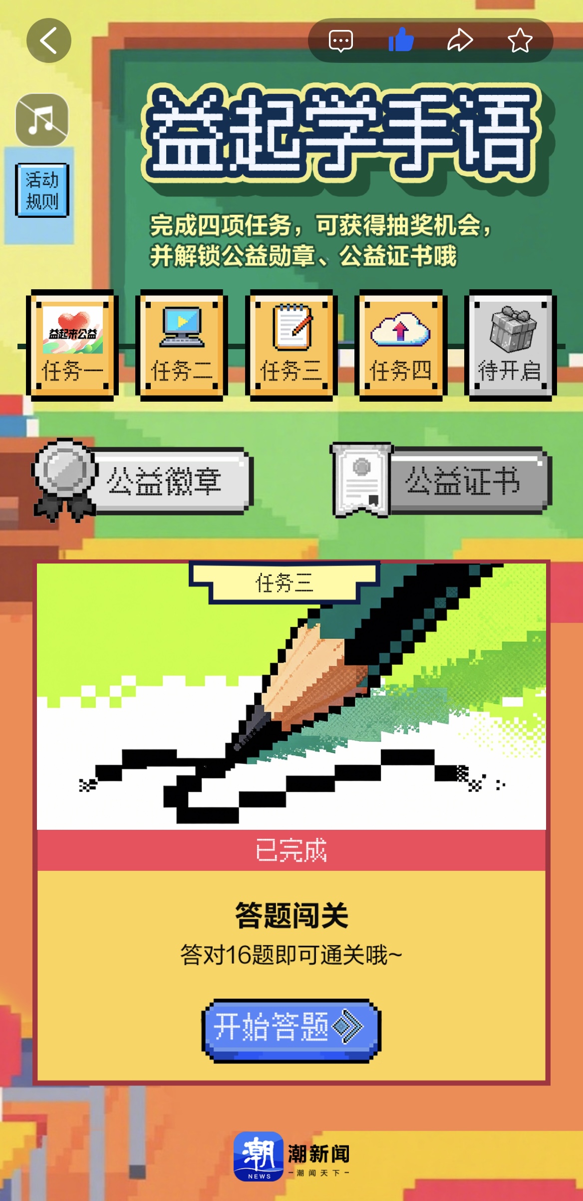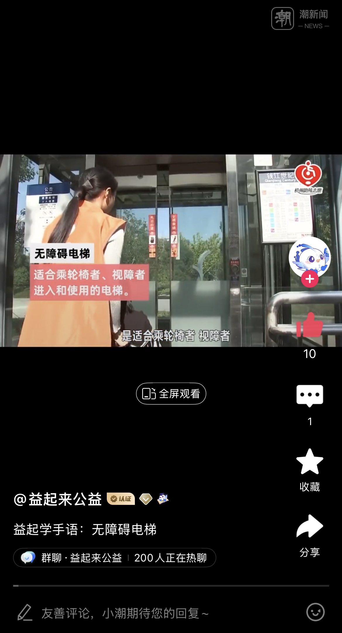 参加了潮新闻“益起来公益”圈子的活动,学习到了许多公益知识,观看了视频讲解,参加了答题,受益匪浅,希望以后可以运用这些知识更好地帮助和关怀身边有需要的人们~ 关于手语的知识 1. 语言地位:手语是听力障碍者的自然语言,拥有独立的语法、词汇和表达体系(如中国手语CSL),并非单纯的手势化汉语。 2. 分类差异: · 各国手语不同(如美国ASL、日本JSL),中国手语也存在地域变体。 · 分为自然手语(聋人群体自发形成)和规约手语(教育系统中与口语结合的手势体系)。 3. 语言学特征: · 通过手形、方位、运动、表情等多维度传递信息。 · 空间语法:利用空间位置表示物体关系和时态。 常见手语示例(中国手语基础) 1. 日常用语: · 谢谢:握拳竖起拇指,弯曲两下 · 你好:抬手敬礼状 · 对不起:五指并拢举至额侧,如行礼 2. 核心概念: · 爱:右手捂心,向前微伸 · 帮助:双手握拳拇指竖起,交替转动 · 家庭:双手比“F”形,围成圆圈 对残障人士的协助建议 听力障碍者 1. 沟通支持: · 学习基础手语(如字母指拼) · 备好纸笔或手机打字辅助交流 · 交谈时保持面对光源,让口型清晰可见 2. 环境适应: · 公共场合提供字幕或手语翻译 · 重要通知配合视觉提示(如闪光门铃) 肢体残疾者 1. 设施支持: · 保持通道无障碍(斜坡、宽敞门距) · 物品放置于可及高度 2. 行动协助: · 未经同意勿触碰轮椅/助行器 · 询问需帮助时,按对方指示操作 日常交流注意事项 1. 通用原则: · 平等对待,避免过度怜悯或刻意回避 · 交流时直接面向本人,而非陪同者 · 耐心等待表达,不随意打断或替其说完 2. 听力障碍者: · 说话时保持正常口型,避免夸张嘴型 · 小组讨论时轮流发言,便于读唇 · 紧急情况同时使用声光警报 3. 肢体残疾者: · 谈话时保持视线平齐(如坐对话) · 不倚靠轮椅,视其为个人空间 · 服务犬工作时请勿打扰 4. 认知提示: · 使用简洁明确的句子 · 复杂信息配合图表或实物演示 延伸建议 1. 社会参与: · 活动预留无障碍席位 · 资料提供多格式版本(大字/语音/电子版) 2. 意识提升: · 了解“合理便利”概念 · 支持残疾人自主决策权 大家可以通过当地聋协或残联获取专业培训资源,实践中保持“尊重询问-倾听需求-适度协助”的原则。无障碍环境建设需要社会共同参与,我们的微小行动也能创造重要改变哦~