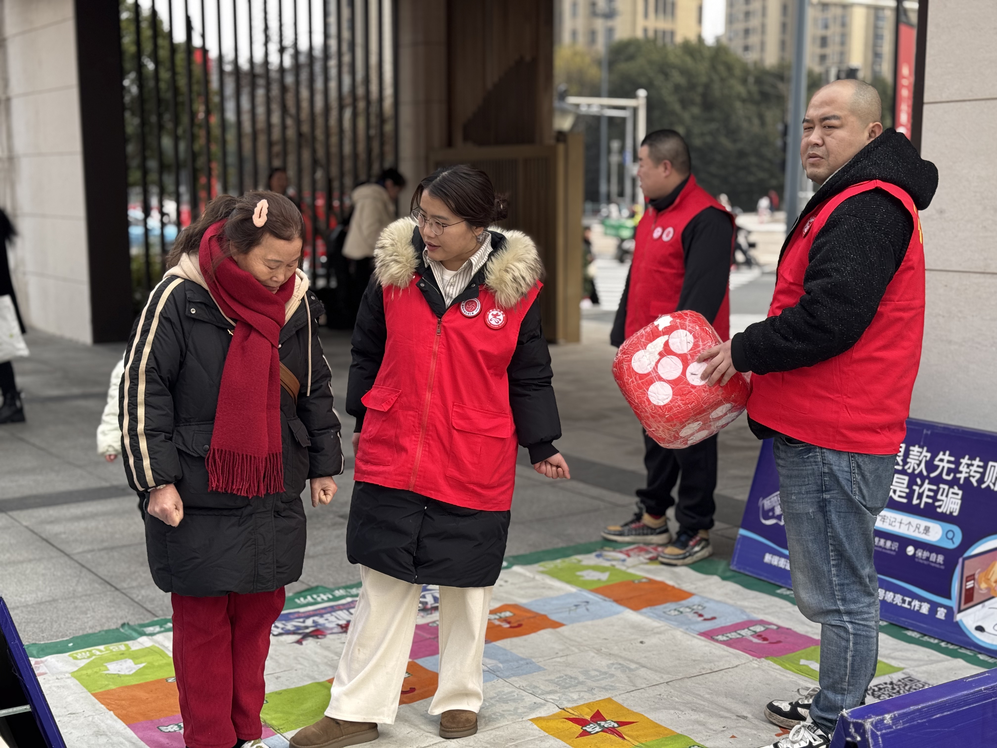 2月1日下午,红领志愿者在红领广场举行的红领集市上,开展“真人飞行棋”反诈宣传活动。#潮圈反诈365#
