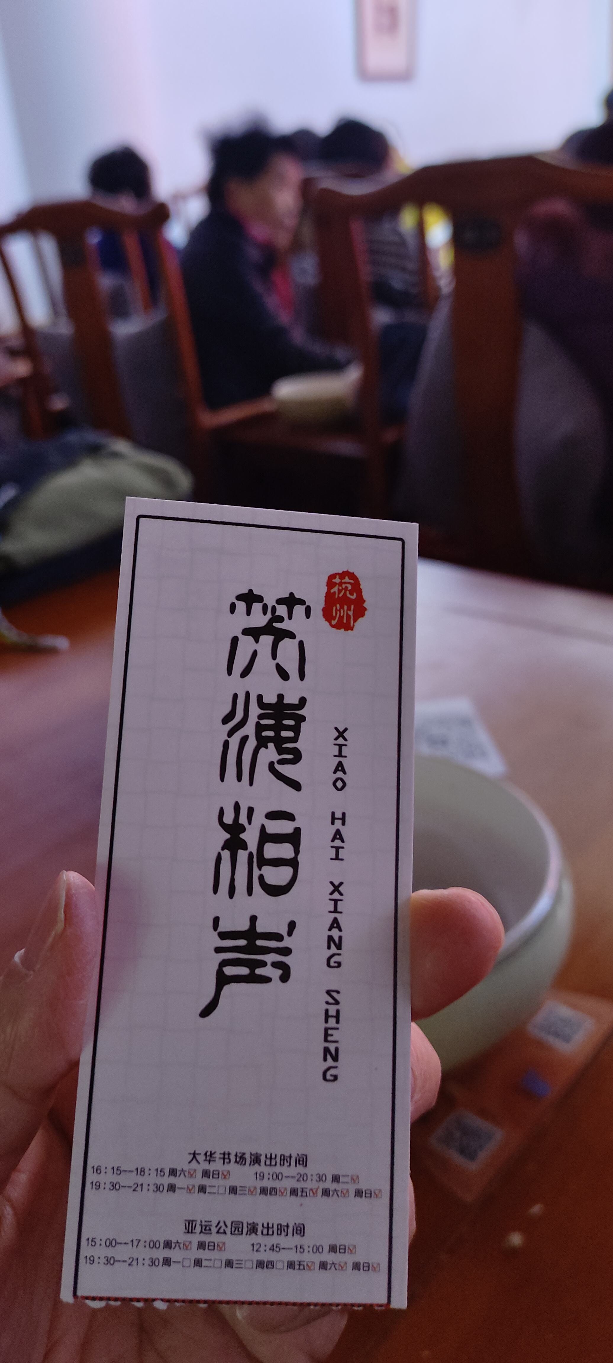 笑海相声会馆——亚运剧场好难找。高德导航也不靠谱。问了两个路人才找到。这是个古时风格的剧场,四方桌,官帽椅,点了瓜子,磕磕唠唠。唉,还是喜欢安静一点。对噪音敏感。“钱塘戏社”版越剧《胭脂》长什么样?原来是民间高手组织的。杭州民间文化藏龙卧虎啊。戏剧总是平铺,凑巧,误会,冲突,矛盾,澄清,大白天下,皆大欢喜。短短时间,九曲百回。主角自以为是,先入为主,刚愎自用。现场都没有勘察。此剧建议司法部门多看看。草菅人命现实中不少啊。剧里小流氓毛大倒长得小姐样。哈哈,错配。