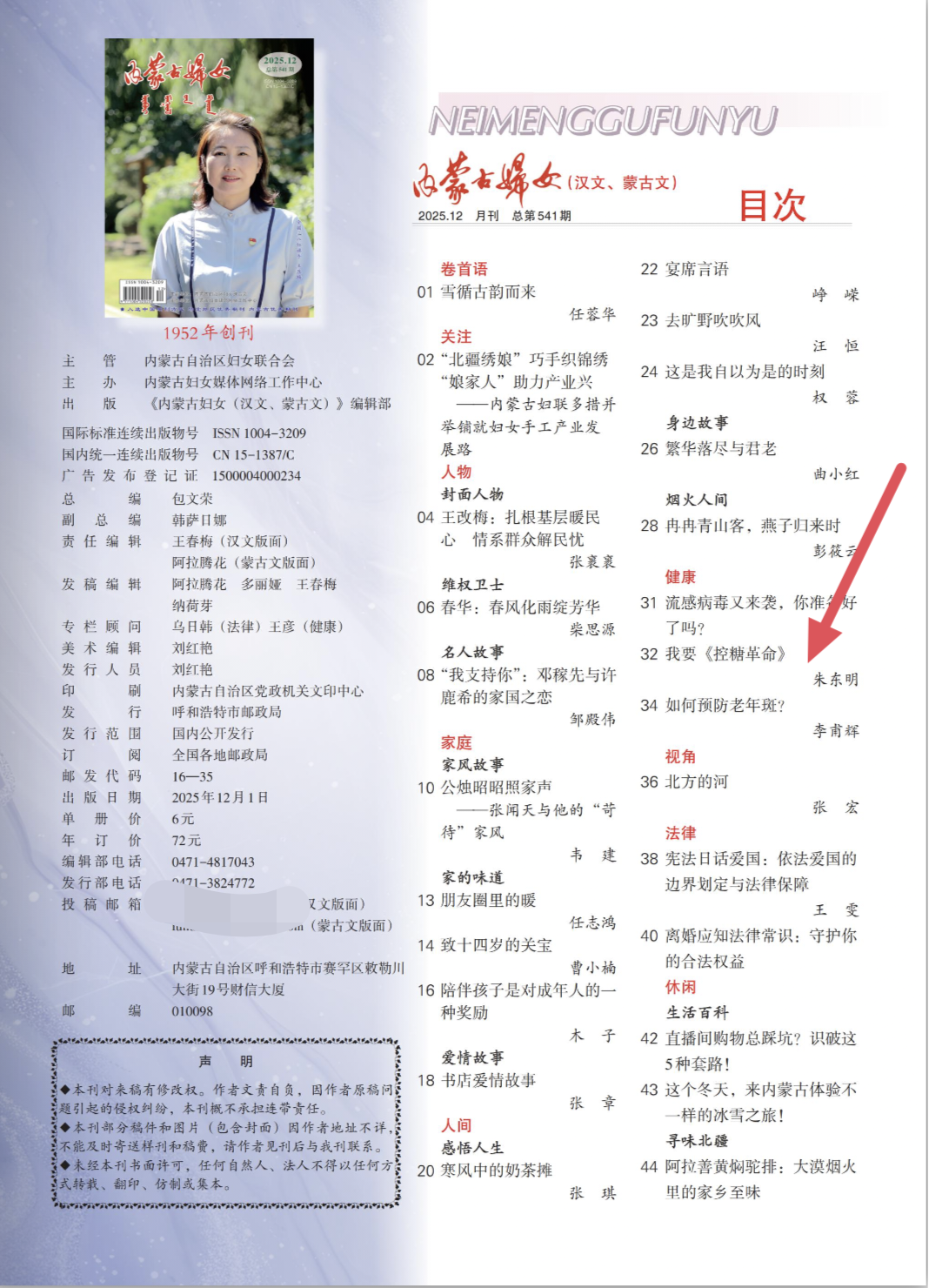 朱东明+《内蒙古妇女杂志》2025.12 我要控糖革命。 感谢!王春梅编辑老师。