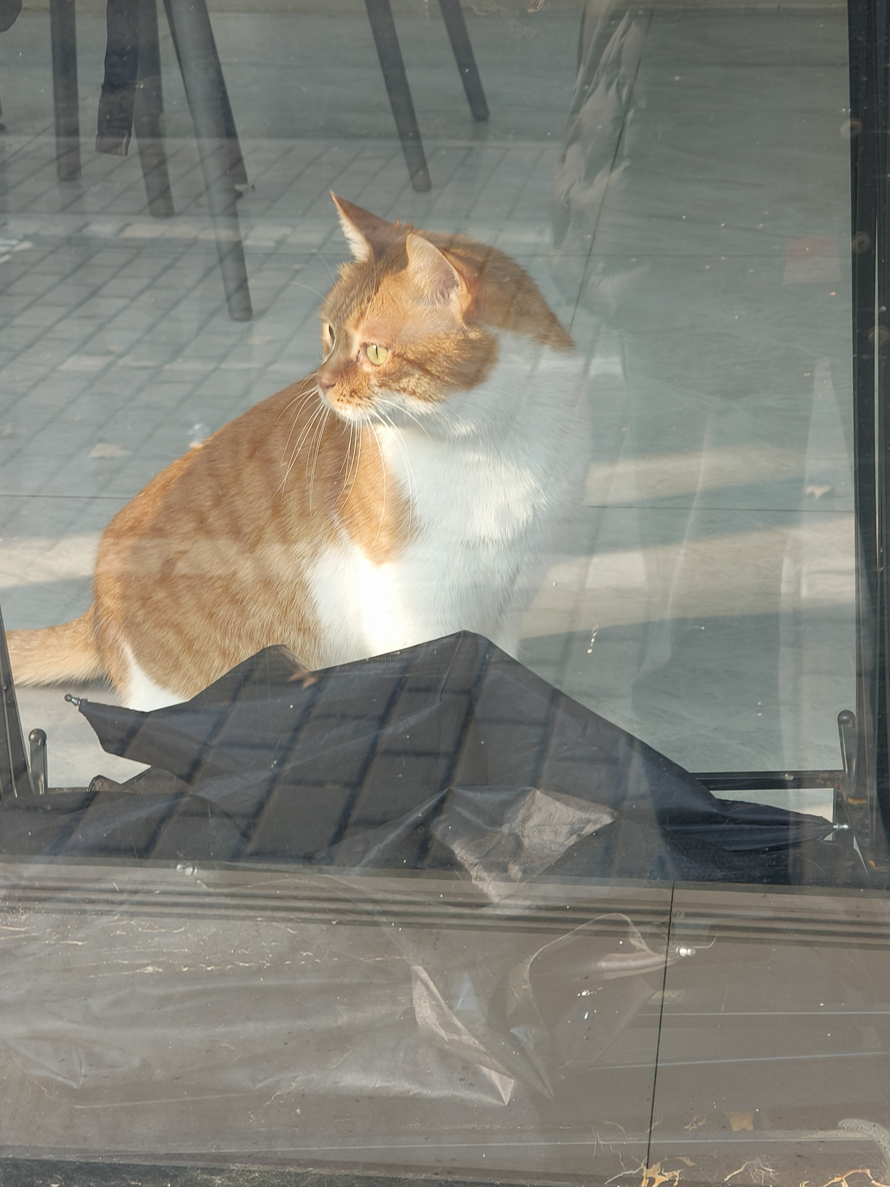 路过香积寺路上的宠物医院,一只小橘不知道在看什么东西,左看看右看看,抬头看,就是不看我,什么眼神?