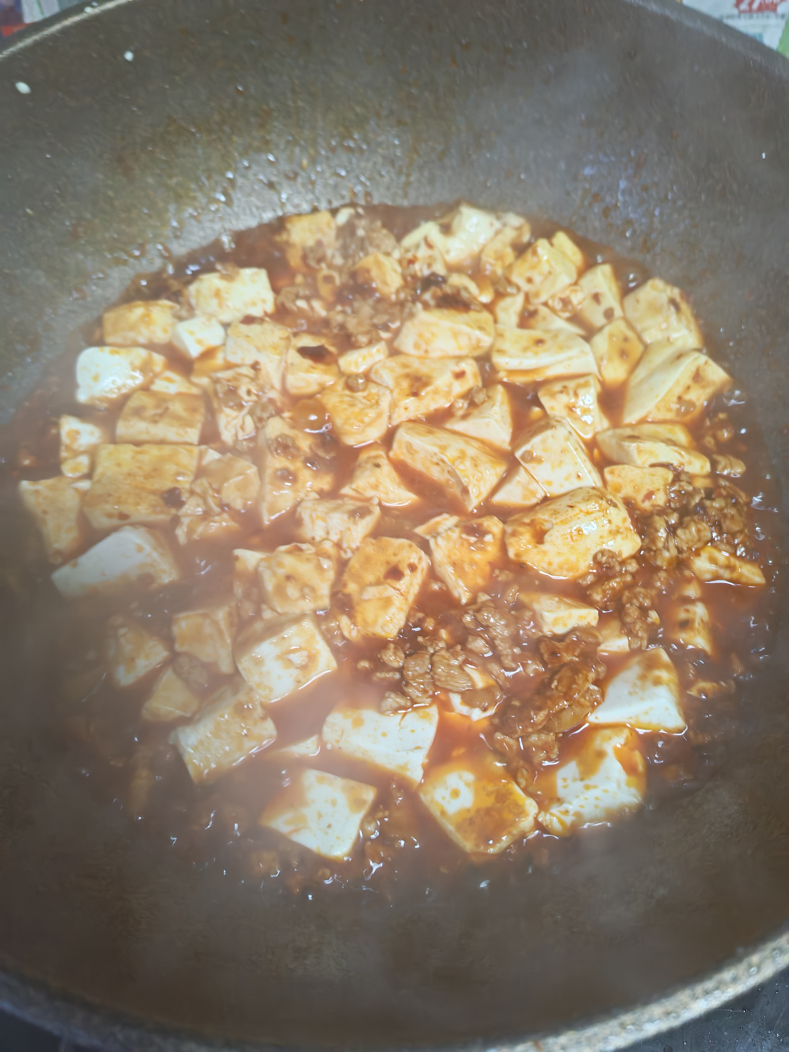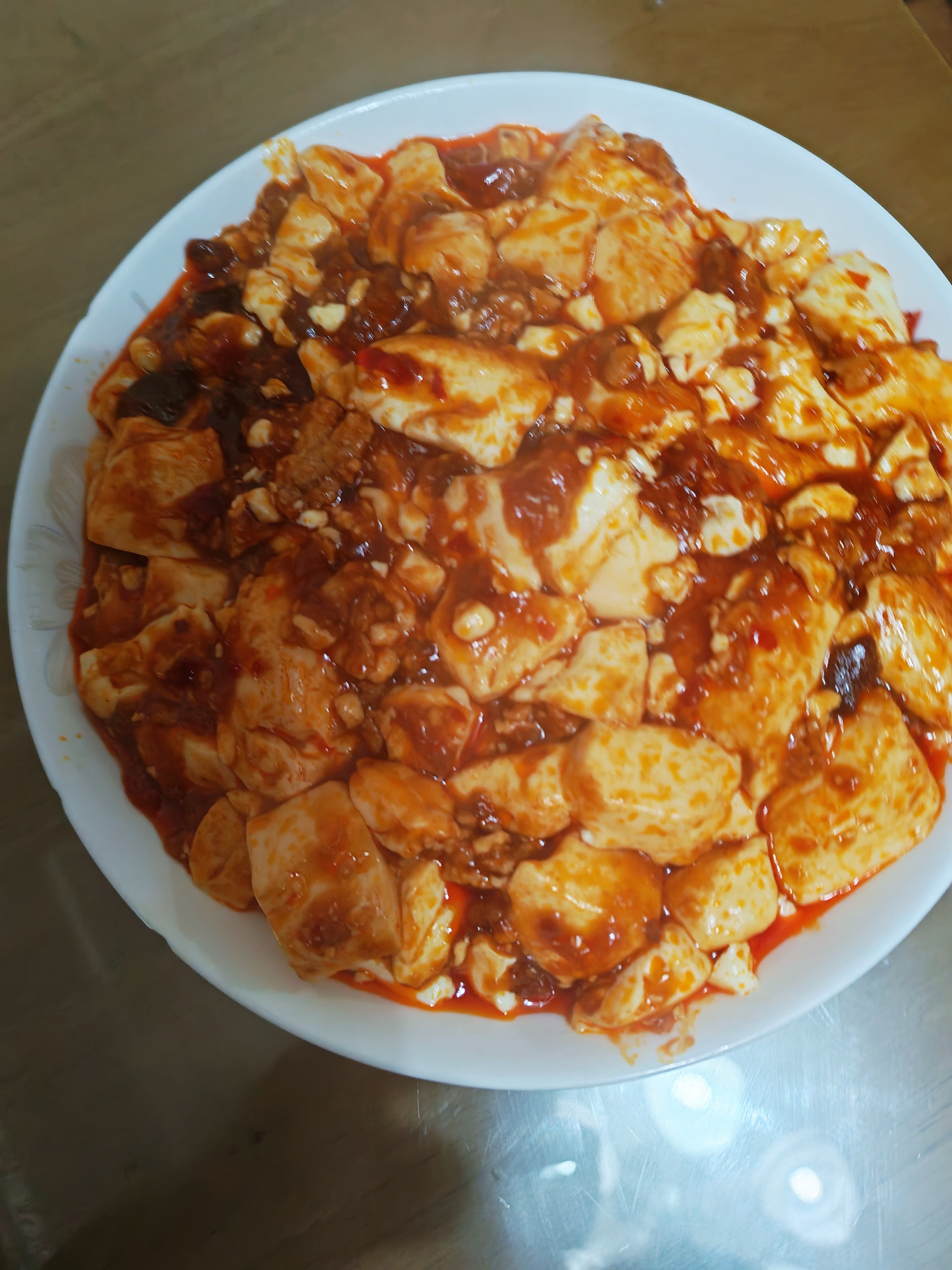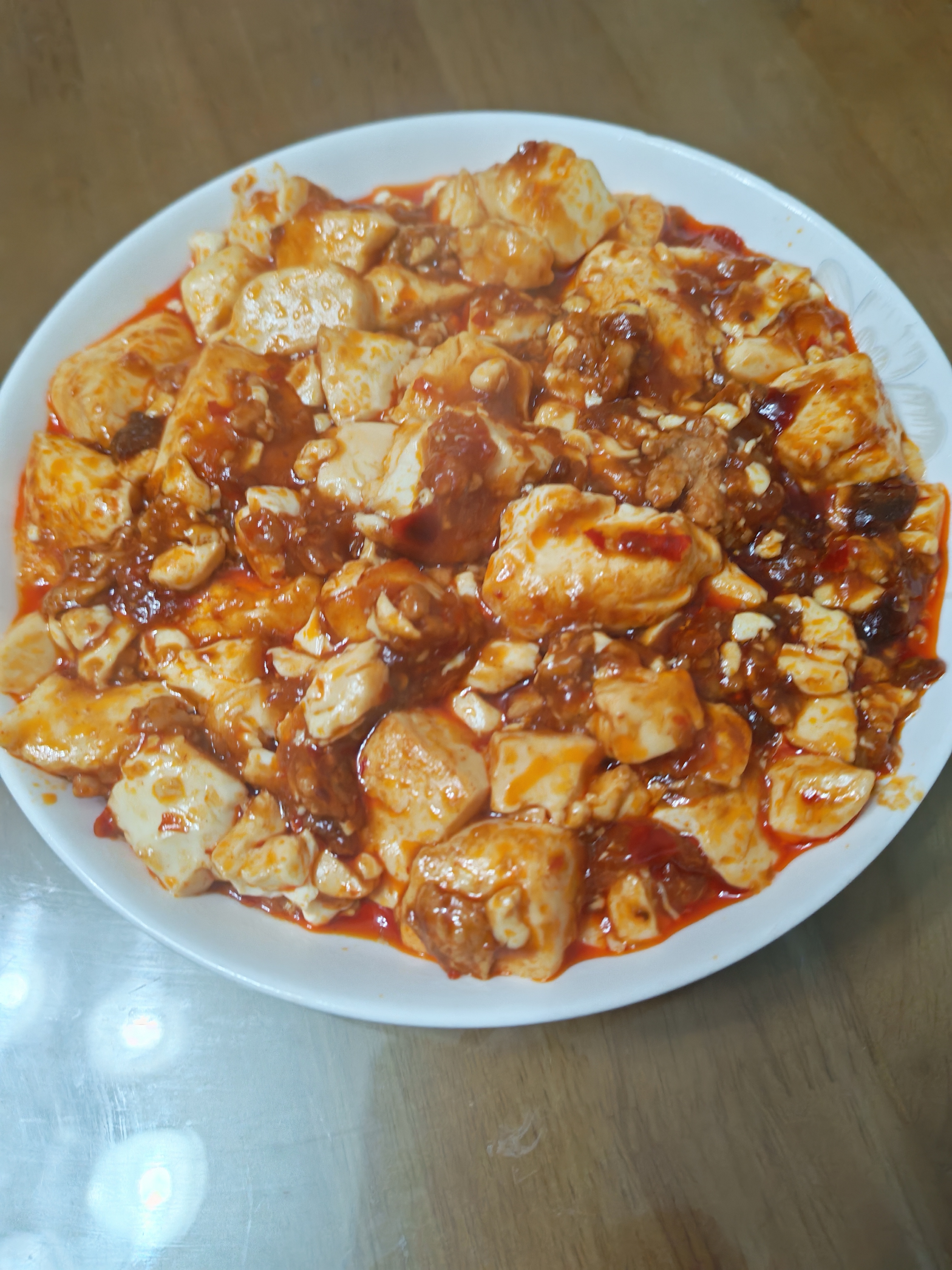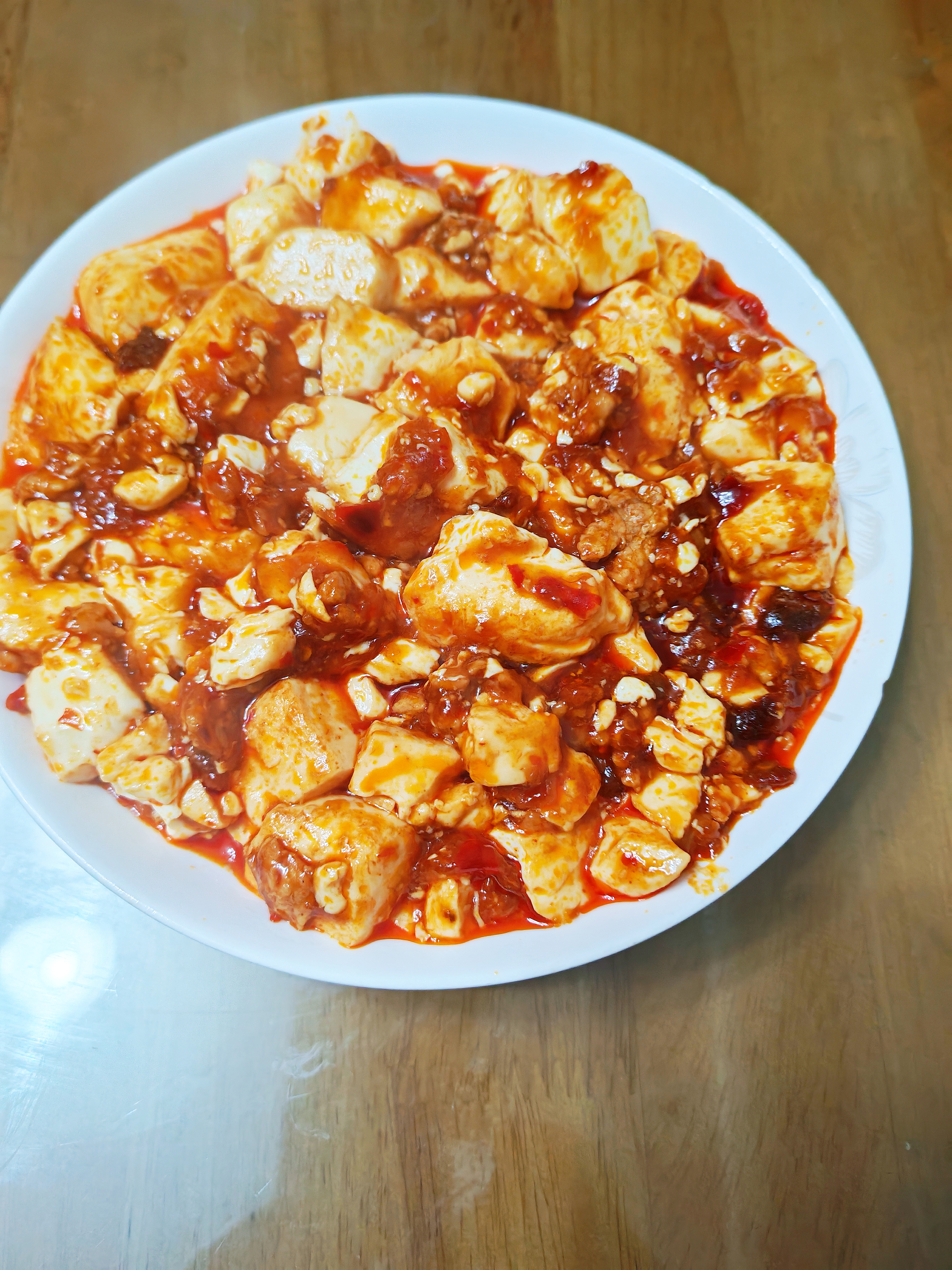 肉末豆腐 软嫩到入口即化的内脂豆腐,吸饱酱香肉末汤汁,每一口都鲜到舔盘,拌米饭直接封神! 【食材准备】 内脂豆腐1盒(约300g)、猪肉末200g、蒜末3瓣、香葱2根、郫县豆瓣酱1勺、料酒1勺、生抽1.5勺、味精少许、开水50ml、淀粉1勺+清水2勺(调水淀粉)、食用油适量、香葱油、香油数滴。 【烹饪步骤】 1. 处理食材:内脂豆腐倒扣在案板上,用刀切成2cm见方的丁;锅中烧开水,放入豆腐丁焯水1分钟(加少许盐防碎),捞出沥干水分备用;香葱洗净,一半切葱花,一半留整段备用。 2. 炒香肉末:锅中倒油烧热,放入猪肉末快速翻炒至颜色变白、颗粒分明,加入蒜末和香葱油,翻炒出香味。 3. 调味增香:加入1勺郫县豆瓣酱,小火慢慢炒出红油,沿锅边淋入料酒去腥,再倒入生抽翻炒均匀,激发酱香。 4. 焖煮入味:倒入50ml开水,大火烧开后放入焯好水的豆腐丁,轻轻推动锅底(避免搅拌导致豆腐碎裂),小火煮2分钟让豆腐吸收汤汁。 5. 勾芡收汁:加入少许味精调味,淋入水淀粉,开大火快速翻炒至汤汁浓稠,均匀裹在豆腐和肉末上。 6. 装盘出锅:将做好的肉末豆腐盛入盘中,撒上剩余的葱花,滴几滴香油提香,即可趁热享用。