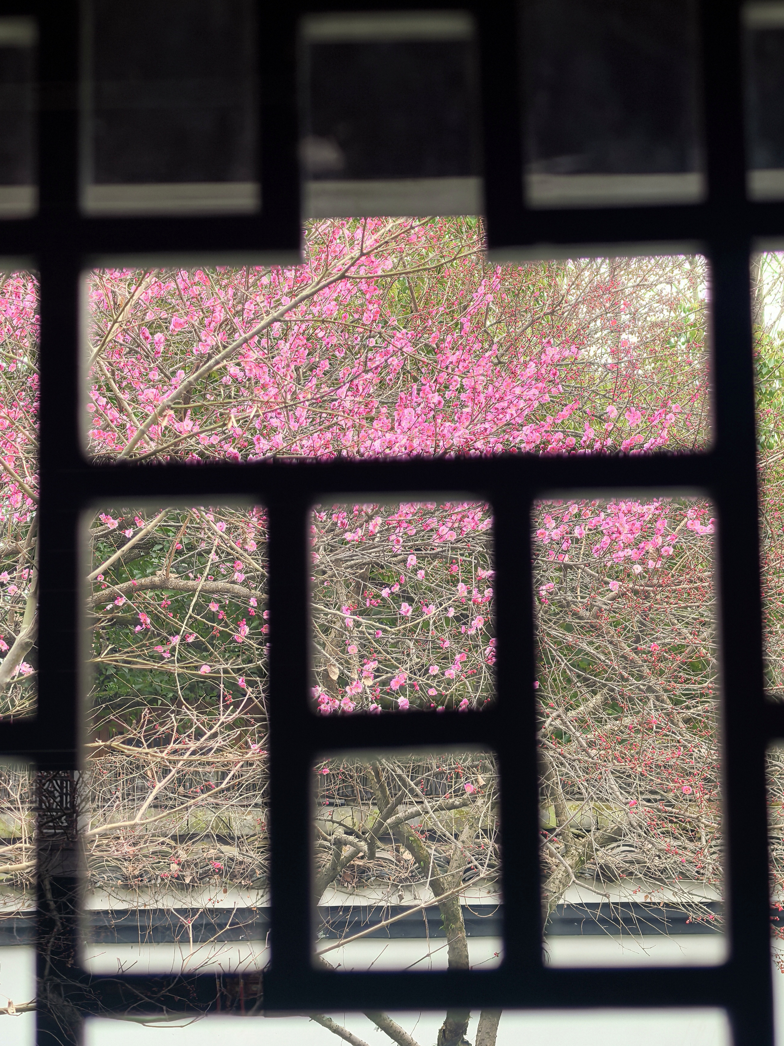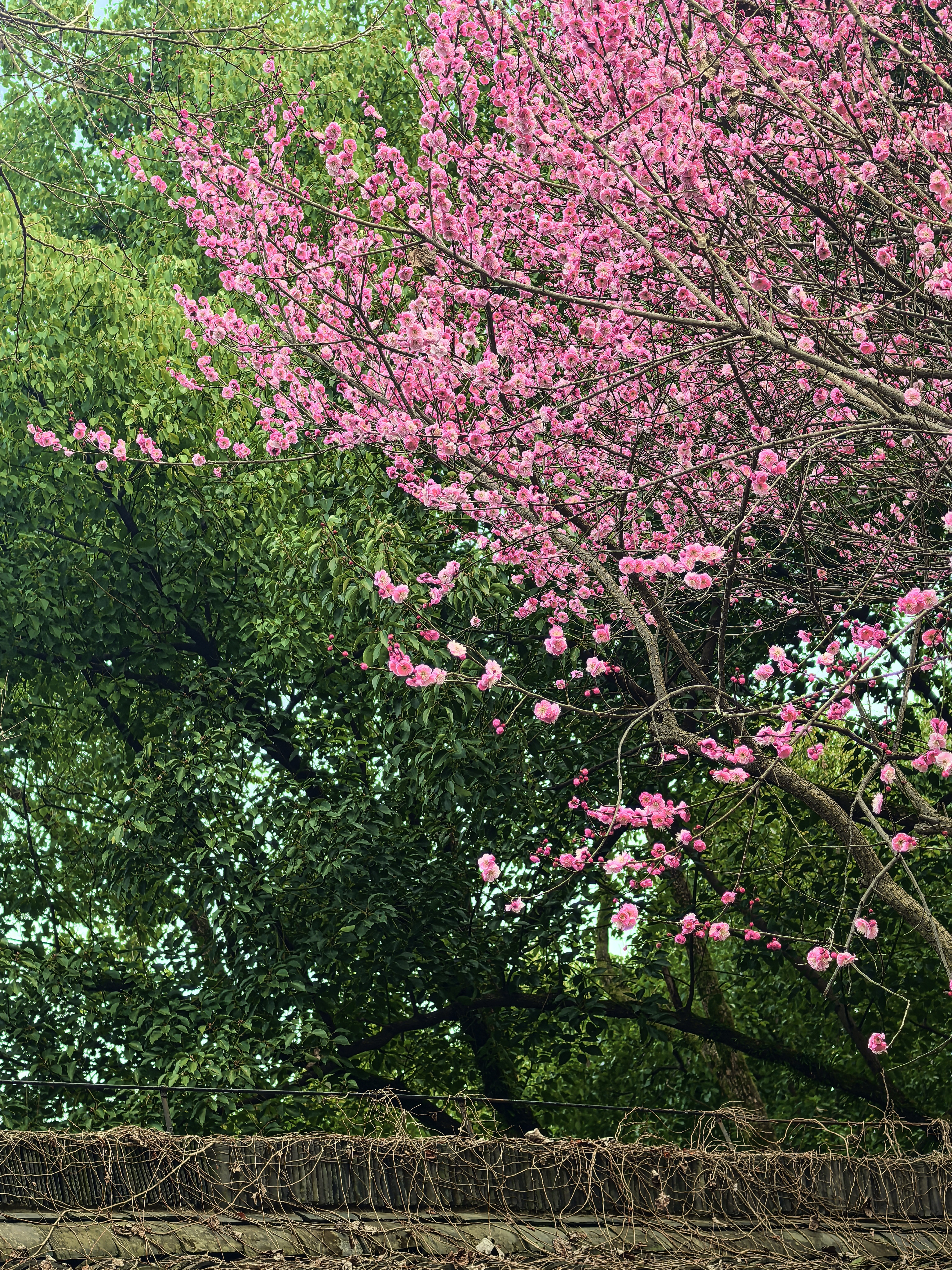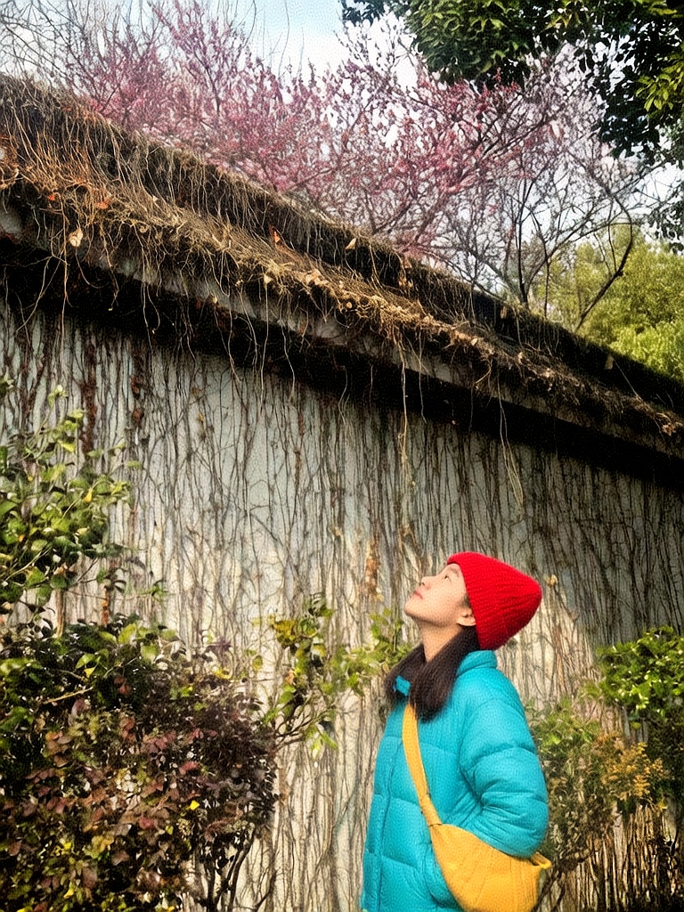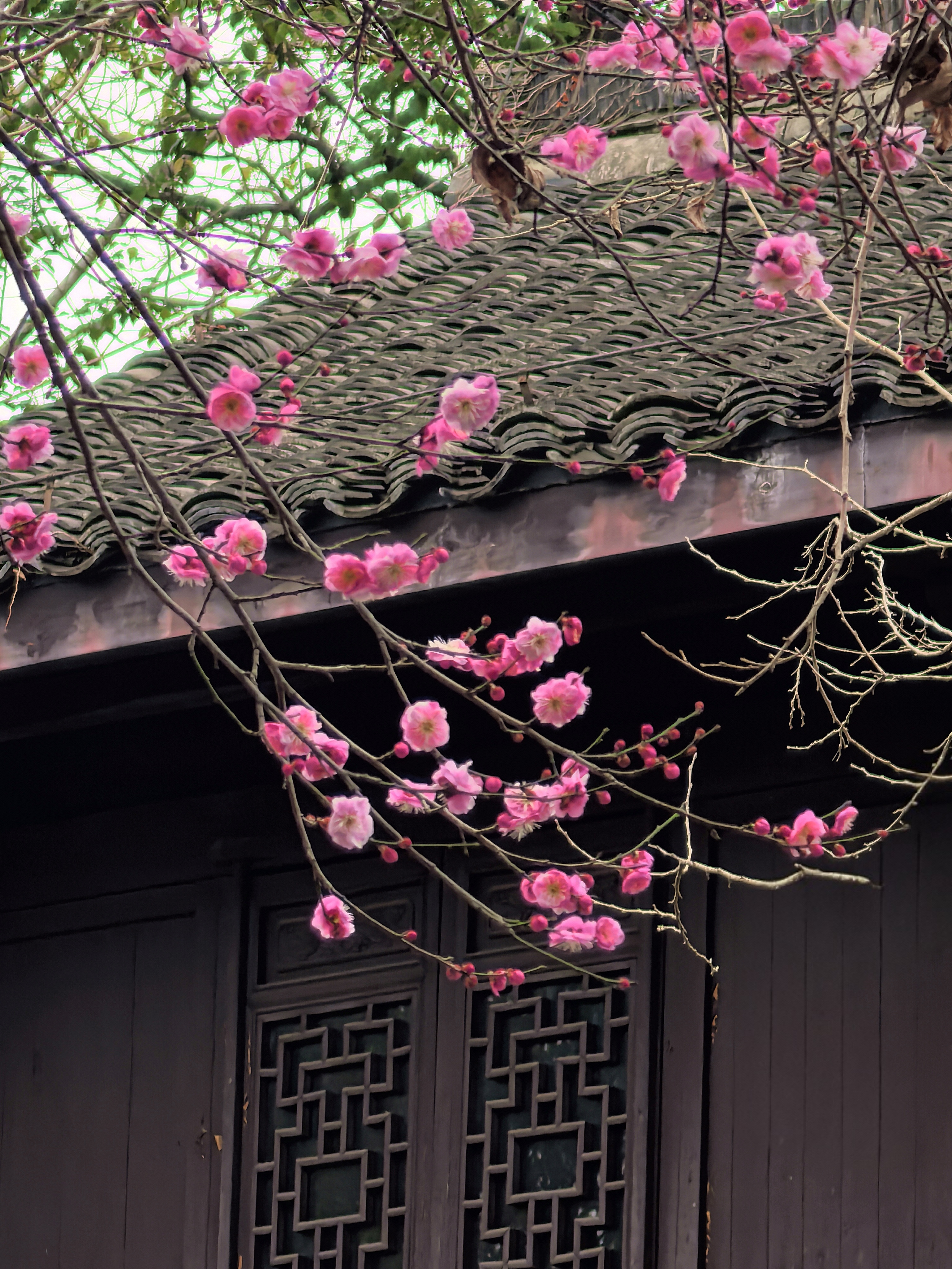 白墙黛瓦间,几株老梅斜倚爬满枯藤的墙头,粉瓣如云,暗香浮动。路人经过仰头畅望,那一种墙内开花墙外香的画面感呼之欲出。 都锦生故居的梅花,不似孤山那般尽人皆知,它只在这深宅小院里,静默地开着。虬曲的枝干,随便印在斑驳的白墙上,便是一幅天然的水墨画。 园中很静,唯闻三两声鸟鸣。游人寥寥,偶有一位老者拄被子女搀扶着而来,对着梅树凝望片刻,又悄然离去。这样清寂,倒与梅花的孤高之性十分吻合。 都锦生的雕刻就立于旁边,我特意拍了张他斜望梅花的照。想那先生当年,在此织锦作画,梅香相伴,该是何等的雅致。 眼下唯梅树年年报春,守着这方天地,不争不抢,自开自落。这般风骨,恰如主人风范,虽隐于市井,却自有风韵。杭城赏梅之二都锦生故居。