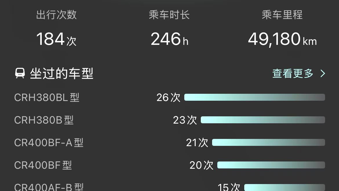 🇨🇳中国交通了不起,飞机高铁出行真方便,不仅节省了出差途中时间,而且方便了异地工作和旅行。我的一位好友G先生午后院子里喝茶闲翻(前2图),不翻不知道,一翻吓一跳。2025年他一共通过高铁和飞机出行了266次。其中高铁🚄出行184次,出行距离49180公里;飞机✈️出行82次,出行距离128132公里。什么事一累加,就是一个惊人的数字,努力奔跑的人永远在路上,勤奋耕耘的人永远不会累!