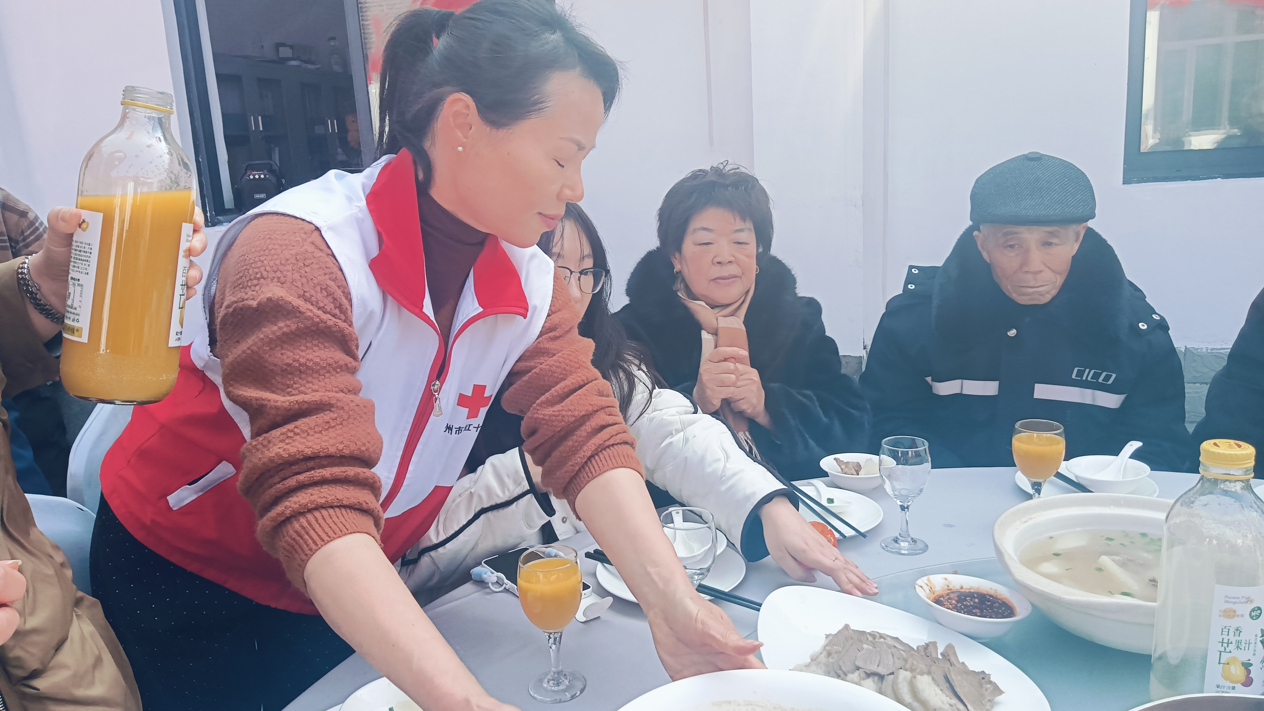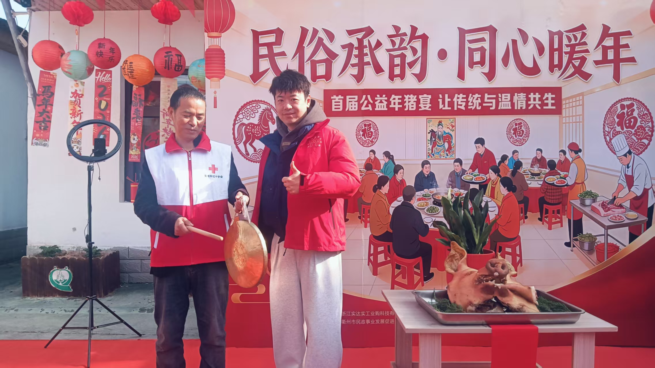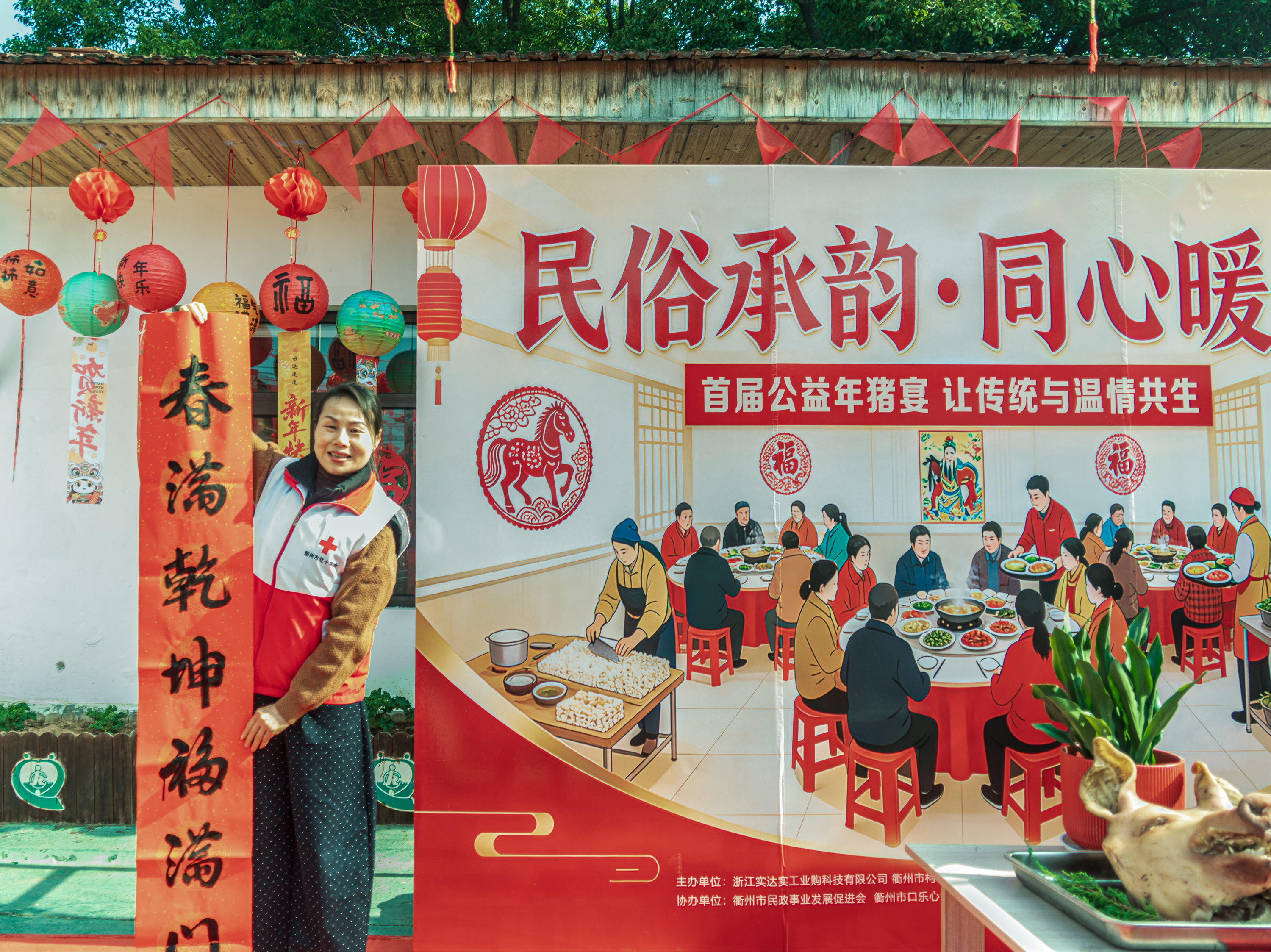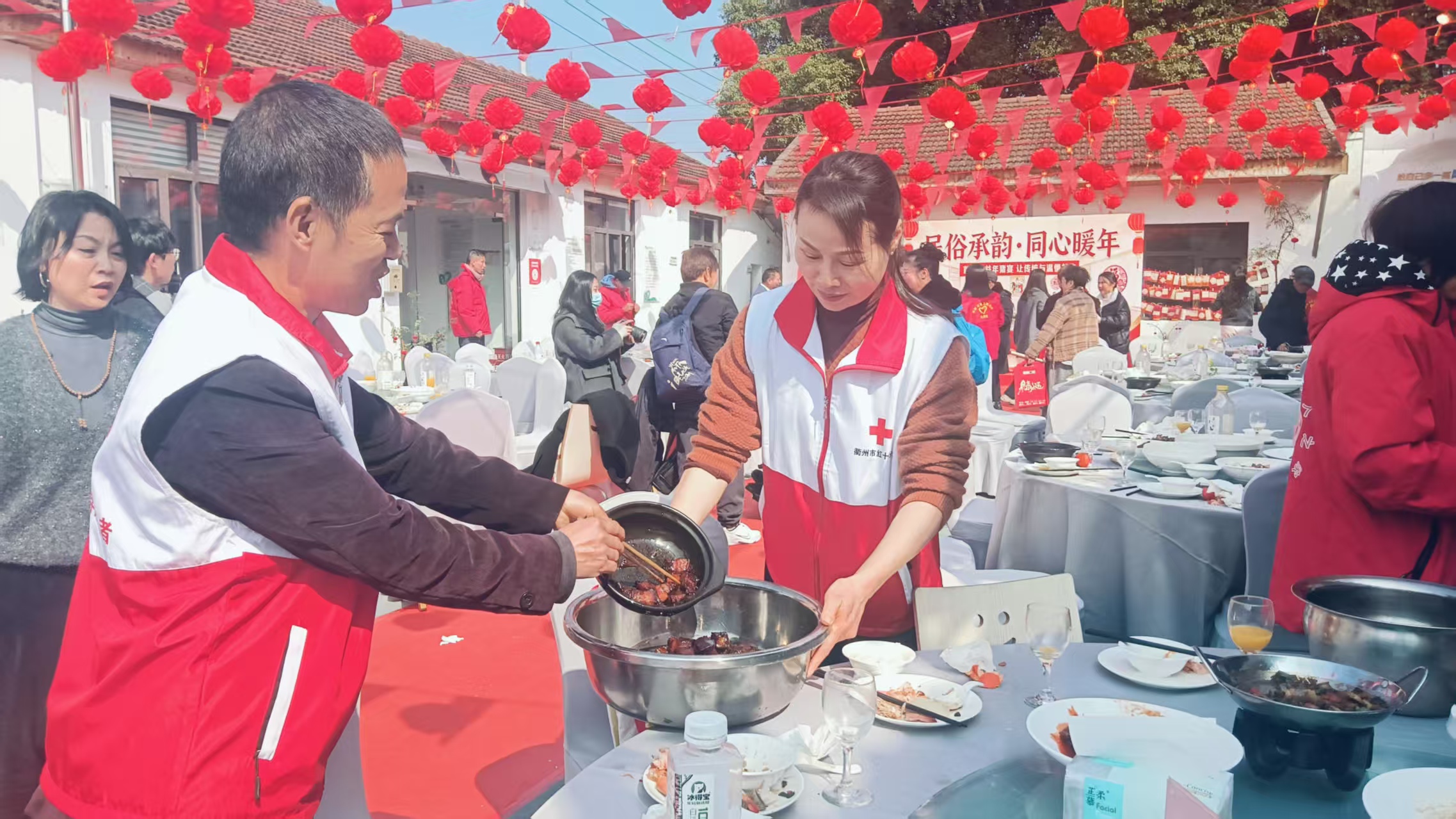 鸣锣辞旧迎新春, 志愿者红红火火, 洗菜杀鱼上饮料, 共享幸福好生活! 浙江省衢州市红十字会志愿者, 在新新街道残疾人之家, 杀猪年夜饭上来回穿棱! 奉献爱心,传递温暖!