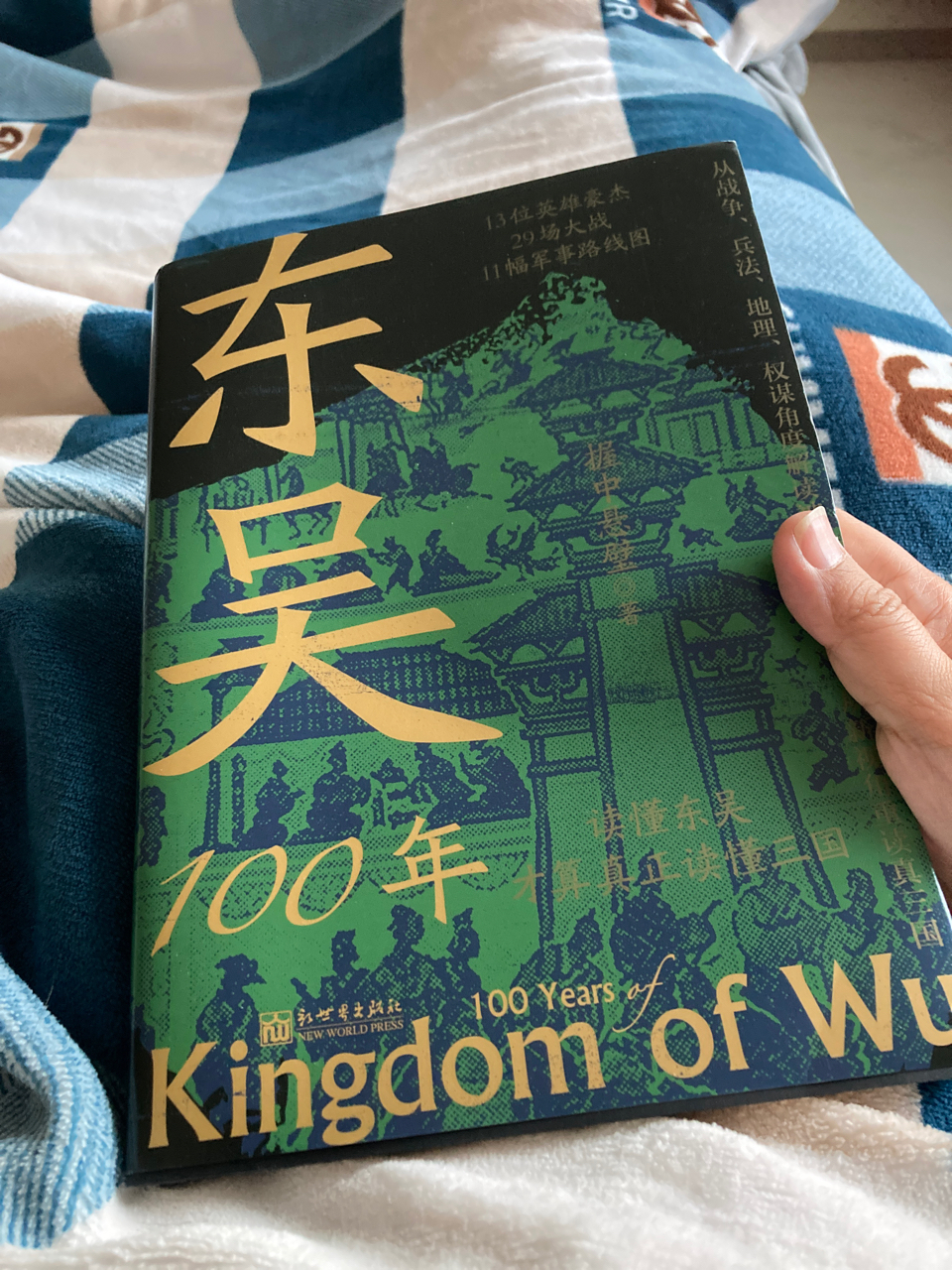新世界出版社《东吴100年》出版,结缘于作者,得一本拜读。绿色封面映衬古代建筑与人物剪影。书中详述三国时期东吴王国百年兴衰,涵盖战争、兵法、地理及权谋,辅以十一幅军事路线图,展现英雄豪杰与二十九场大战之壮阔画卷。这本书为三国史知识贫乏的我,弥补了知识盲区。
