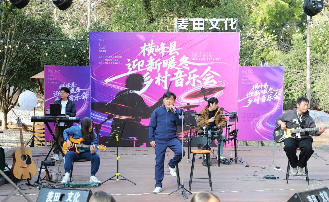 2月3日,由横峰县委宣传部、县文广旅局主办,县文旅发展中心承办的迎新暖冬乡村音乐会在横峰县吴家新村听雨村咖温情开唱,近百名市民齐聚一堂,共赴这场音乐盛宴。活动丰富了群众精神文化生活,营造了温馨祥和的暖冬氛围与浓厚年味。 活动现场,乐队主唱、吉他手、贝斯手、键盘手与鼓手默契配合,《晴天》《泪桥》《漂洋过海来看你》《搁浅》《等你下课》等歌曲接连唱响。舒缓的旋律、细腻的演唱,让现场观众沉浸其中,经典曲目响起时,不少观众纷纷拿出手机拍照记录,台上台下互动频频,氛围热烈。