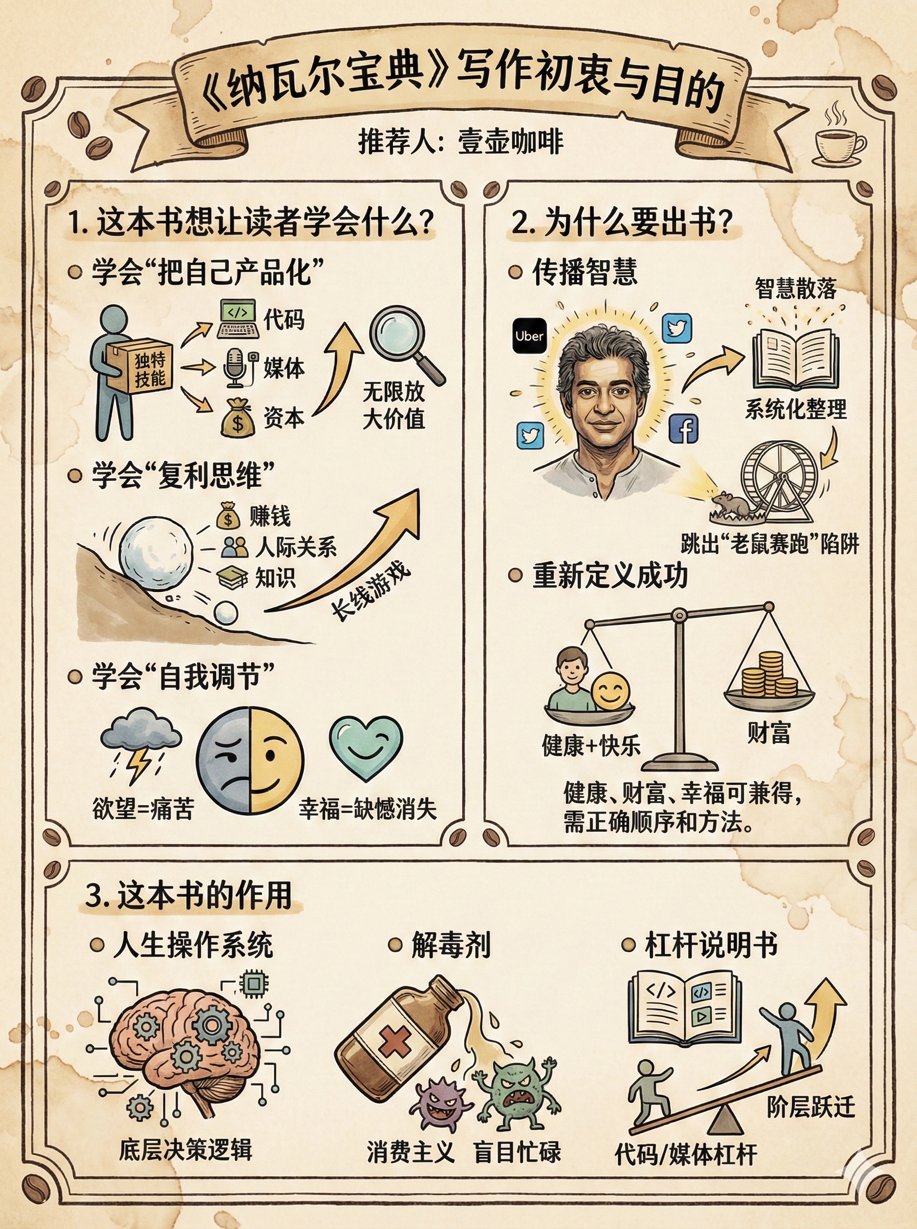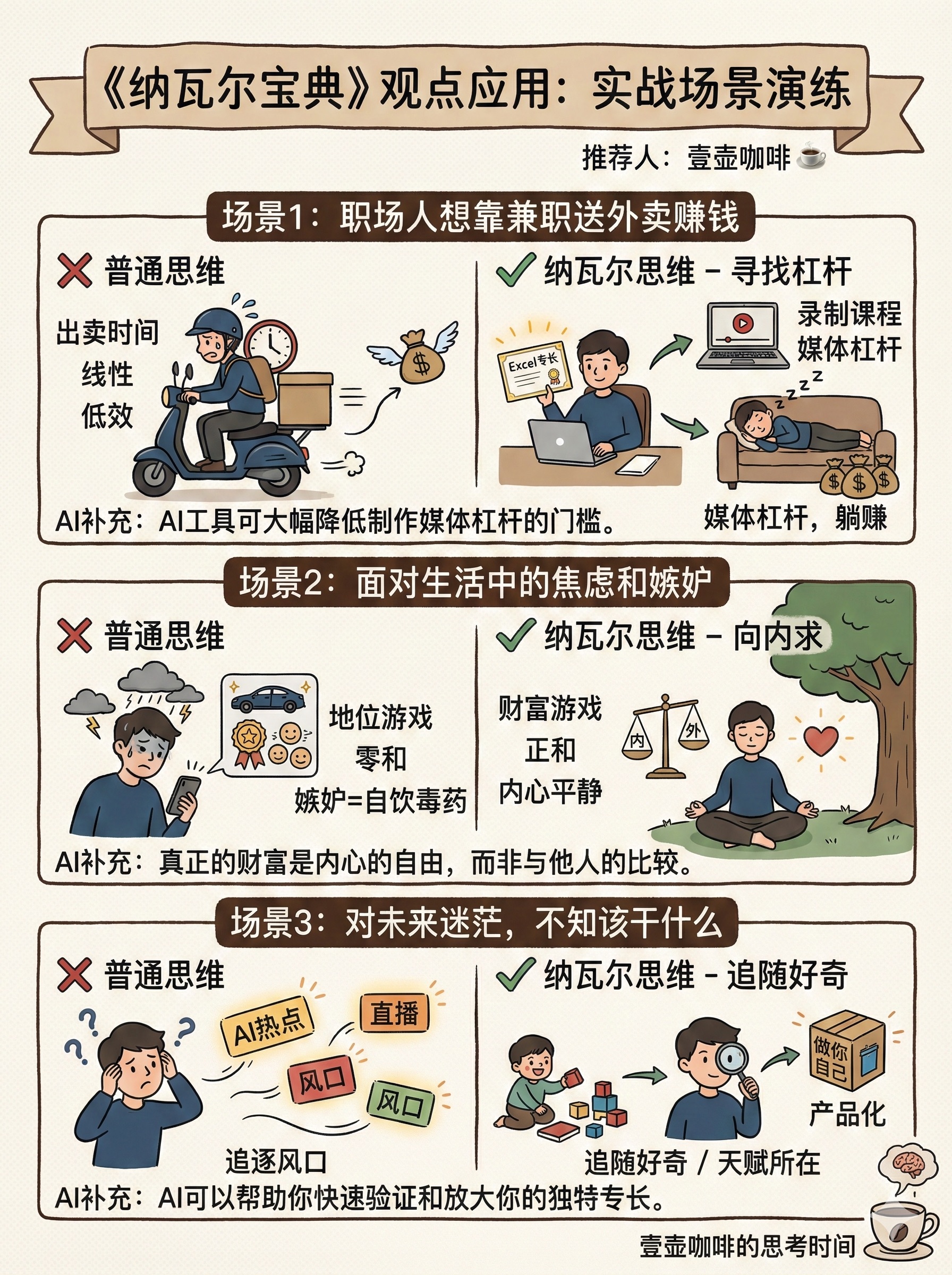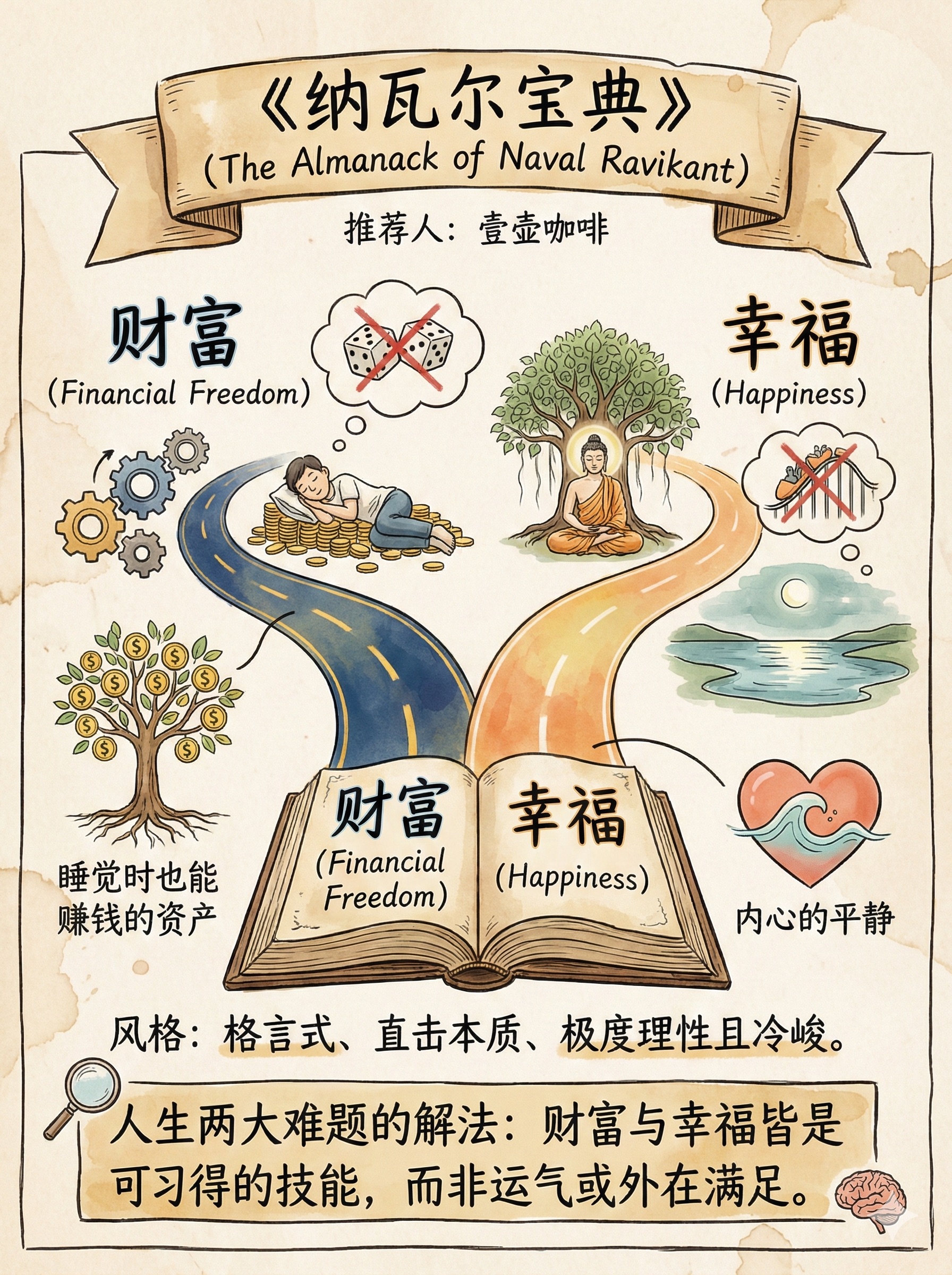 为什么你每天累死累活,依然存不下钱? 硅谷投资大神纳瓦尔在《纳瓦尔宝典》里一针见血地指出:👉 “依靠出租时间是永远无法致富的。” 读完这本书,我的搞钱逻辑被彻底重塑了!它不是教你如何省钱,而是教你如何把自己产品化。🔥 纳瓦尔的财富4大定律: 1️⃣ 寻找“专长”(Specific Knowledge):做那些“对你来说像玩一样,但对别人来说像工作”的事情。那是你的天赋,别人学不来。 2️⃣ 利用“杠杆”(Leverage): • 劳动力杠杆:让人为你工作(太累,不推荐)。 • 资本杠杆:用钱生钱(门槛高)。 • 复制边际成本为零的产品:代码和媒体(普通人翻身的最佳路径!👉写文章、做视频、开发软件)。 3️⃣ 复利思维:生活中的所有回报,无论是财富、关系还是知识,都来自复利。 4️⃣ 把自己产品化:"Productize Yourself." —— 找到你最擅长的事,然后用杠杆把它无限放大。 💡 这本书给了所有打工人重重的一锤: 赚钱不是为了无休止地工作,而是为了赢得自由。 如果你还在用时间换钱,建议立刻去读这本书!