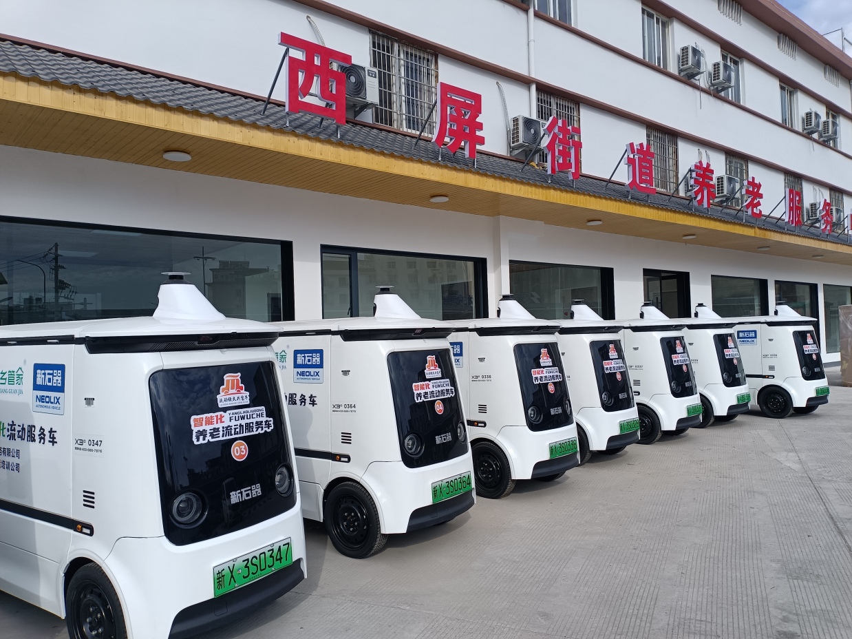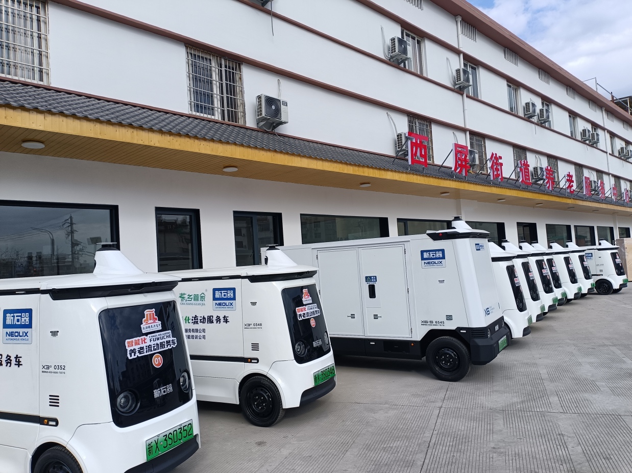 松阳老人配餐,智能车定点定时送达,是县城的又一道风景线。
