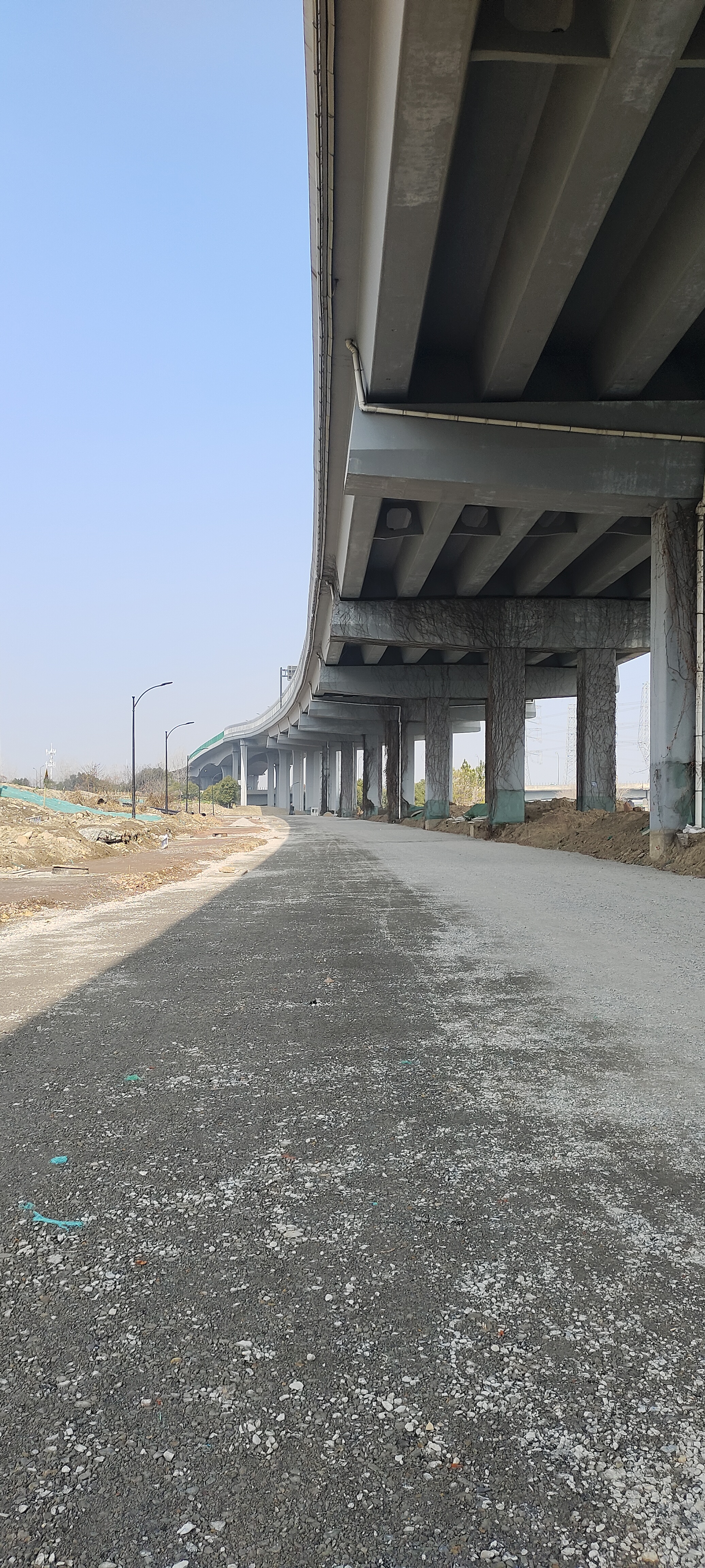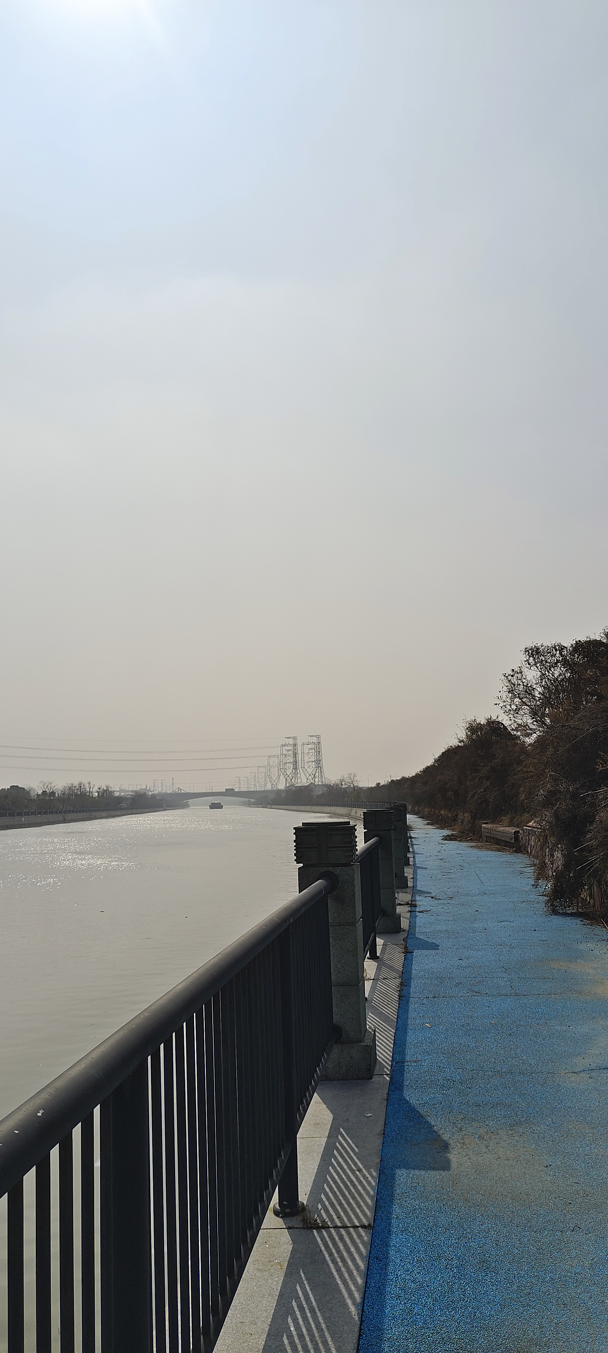 #去翁梅看房子。回来骑小红车去乔司,溜溜新运河。为货船开的新运河明显没有船啊。古运河倒船流不息。什么原因?路上遇古海塘,碰绿道南墙,闯施工通道,不幸堵在里面了。四处遥望,不停骑行,终于看到有人正在走的“路”,提上自行车,赶紧也爬出来。一看,原来到乔司南站了。