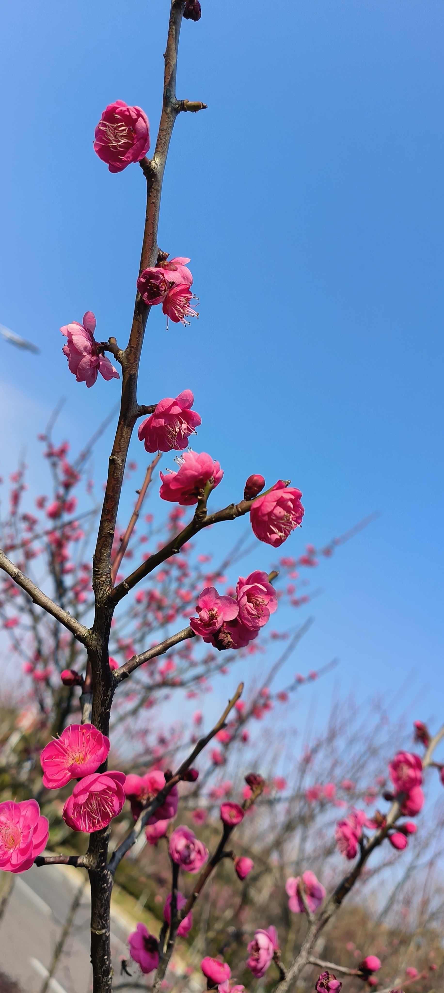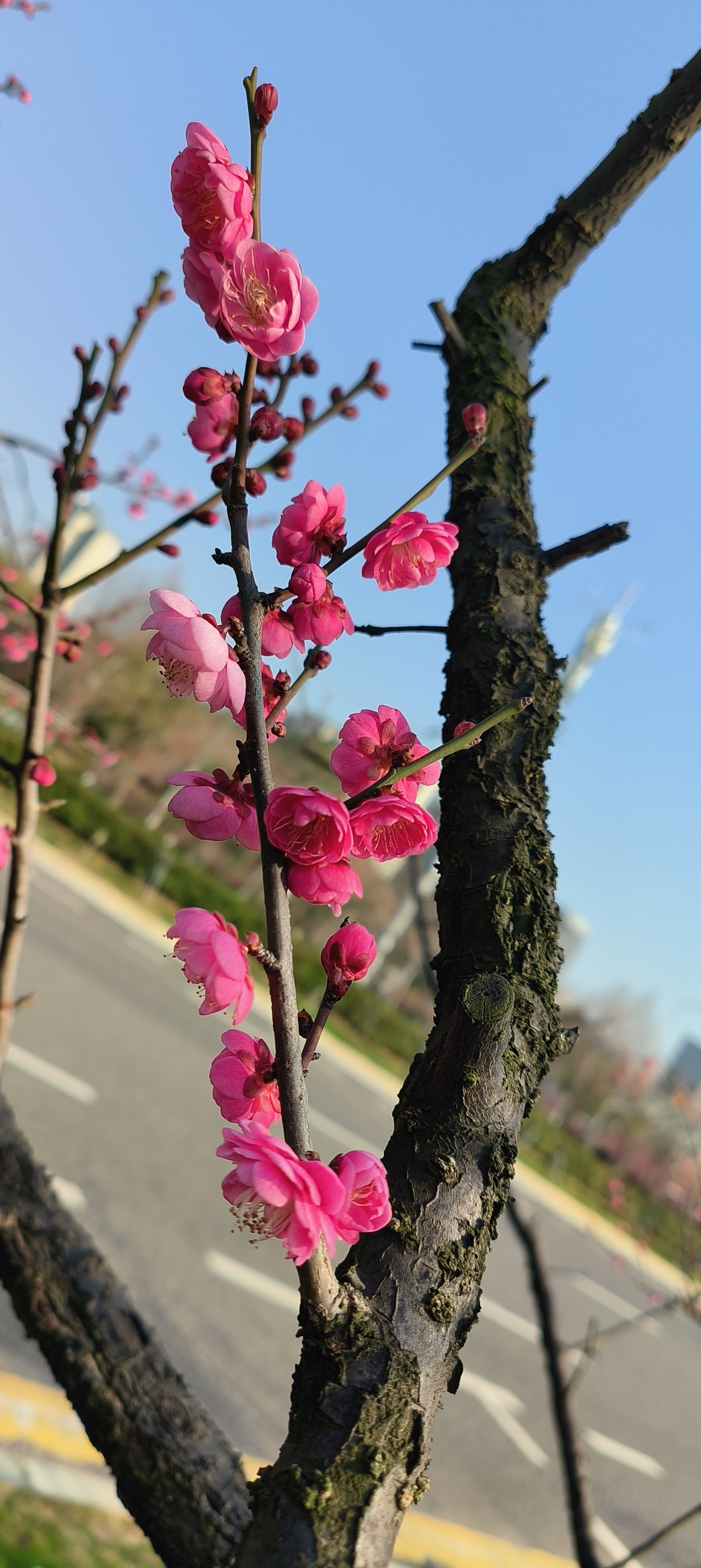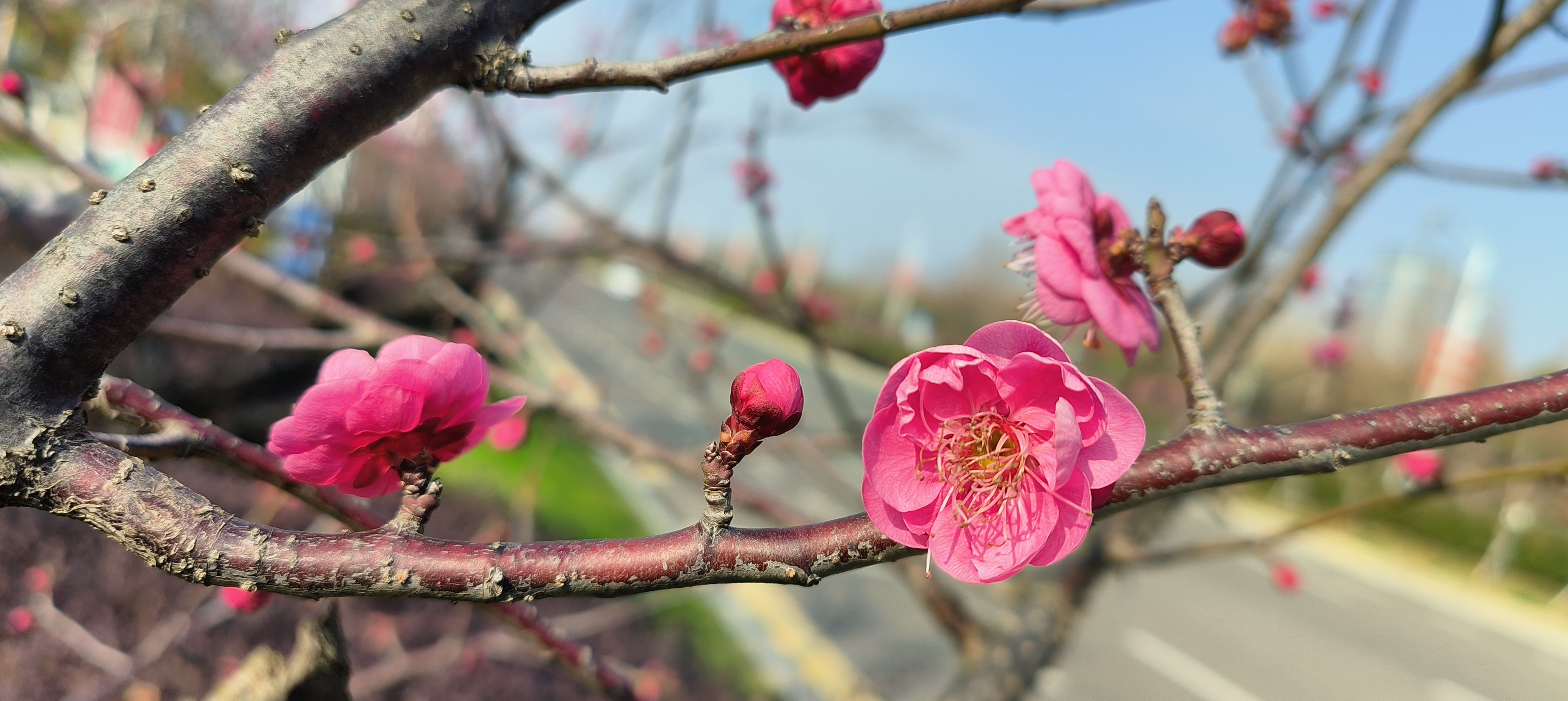 立春日至,寒尽春归。2026年2月4日,江西省抚州市三翁花园东门口,玉茗大道两旁枝头梅花傲然绽放,嫣红点点,为寒冬画上圆满句点。道路两旁梅香沁脾,生机盎然。市民踏春赏梅,共赴这场春日之约,处处皆是新春盛景,行人陶醉其中,给城市增添了一道美丽景色。