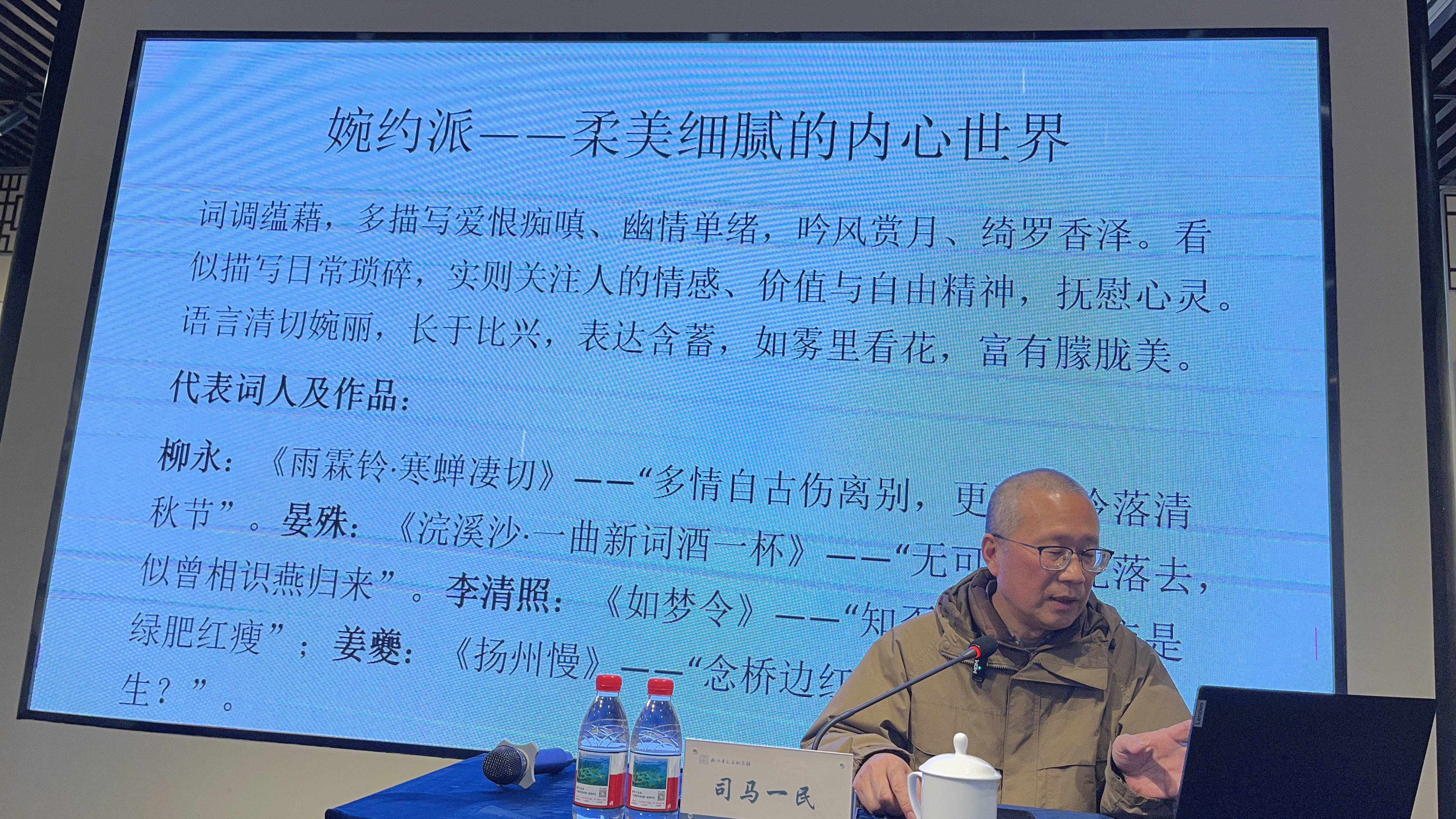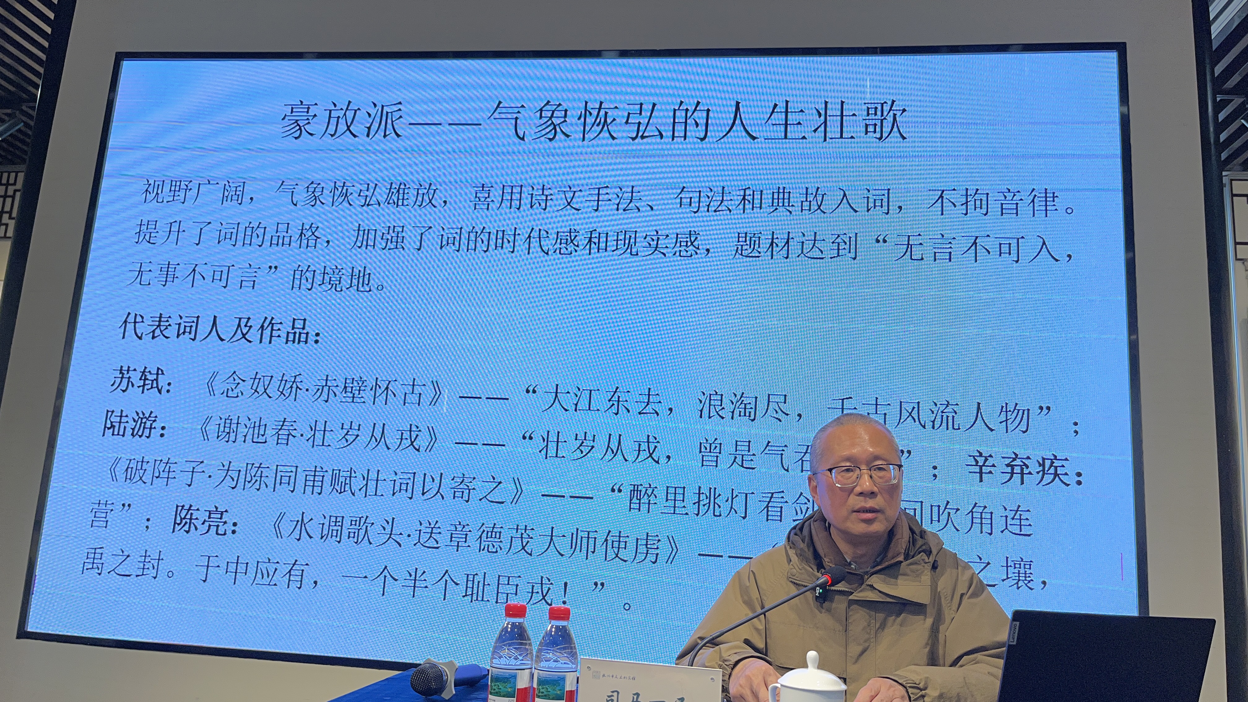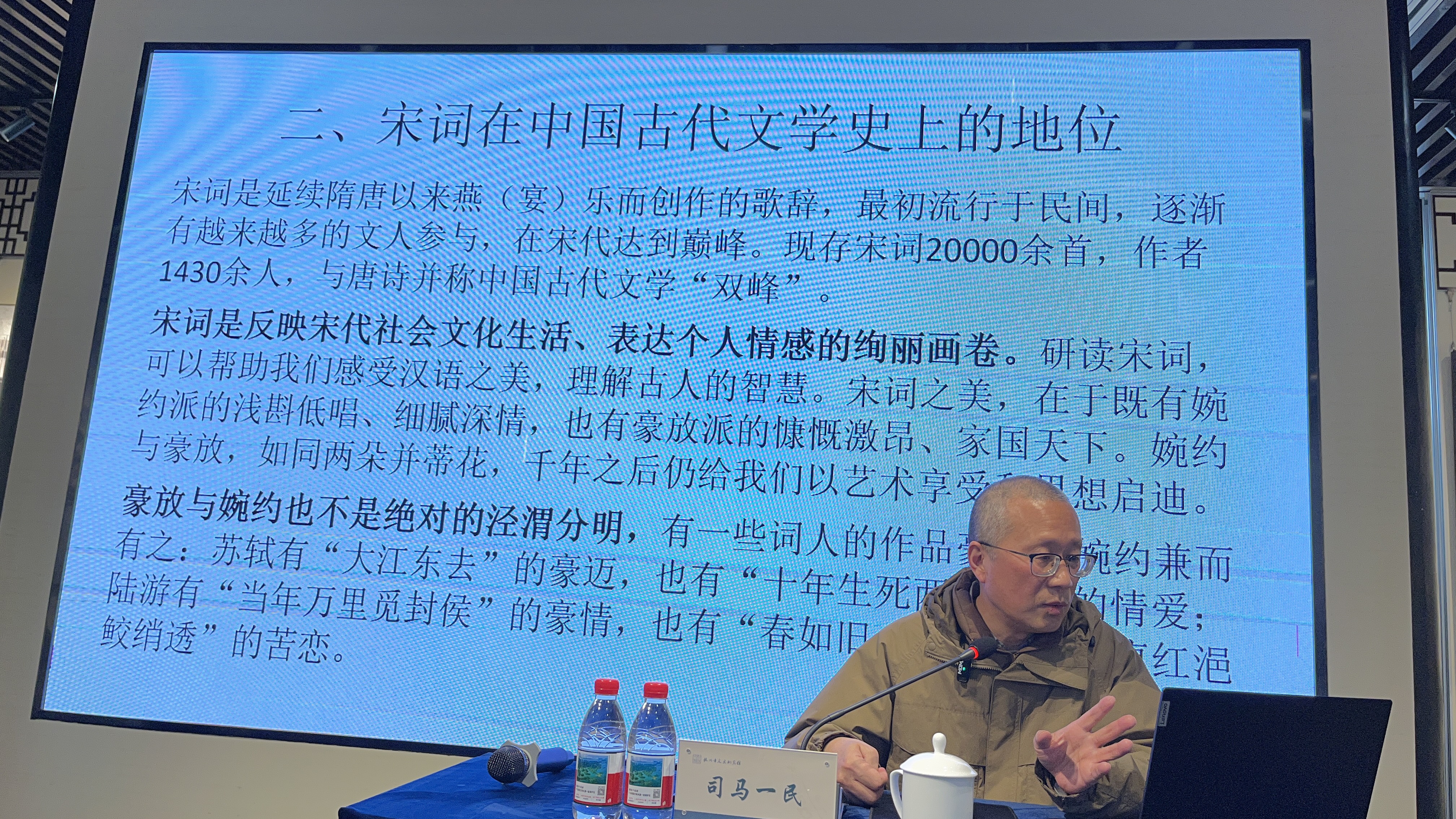 周三下午,前往市中心的杭州文史馆聆听司马一民老师的讲座《宋词的豪放与婉约》。在纷繁的生活中,偶尔静下来读一读宋词,领略大家们的豪放与婉约,也是非常有意义的事。