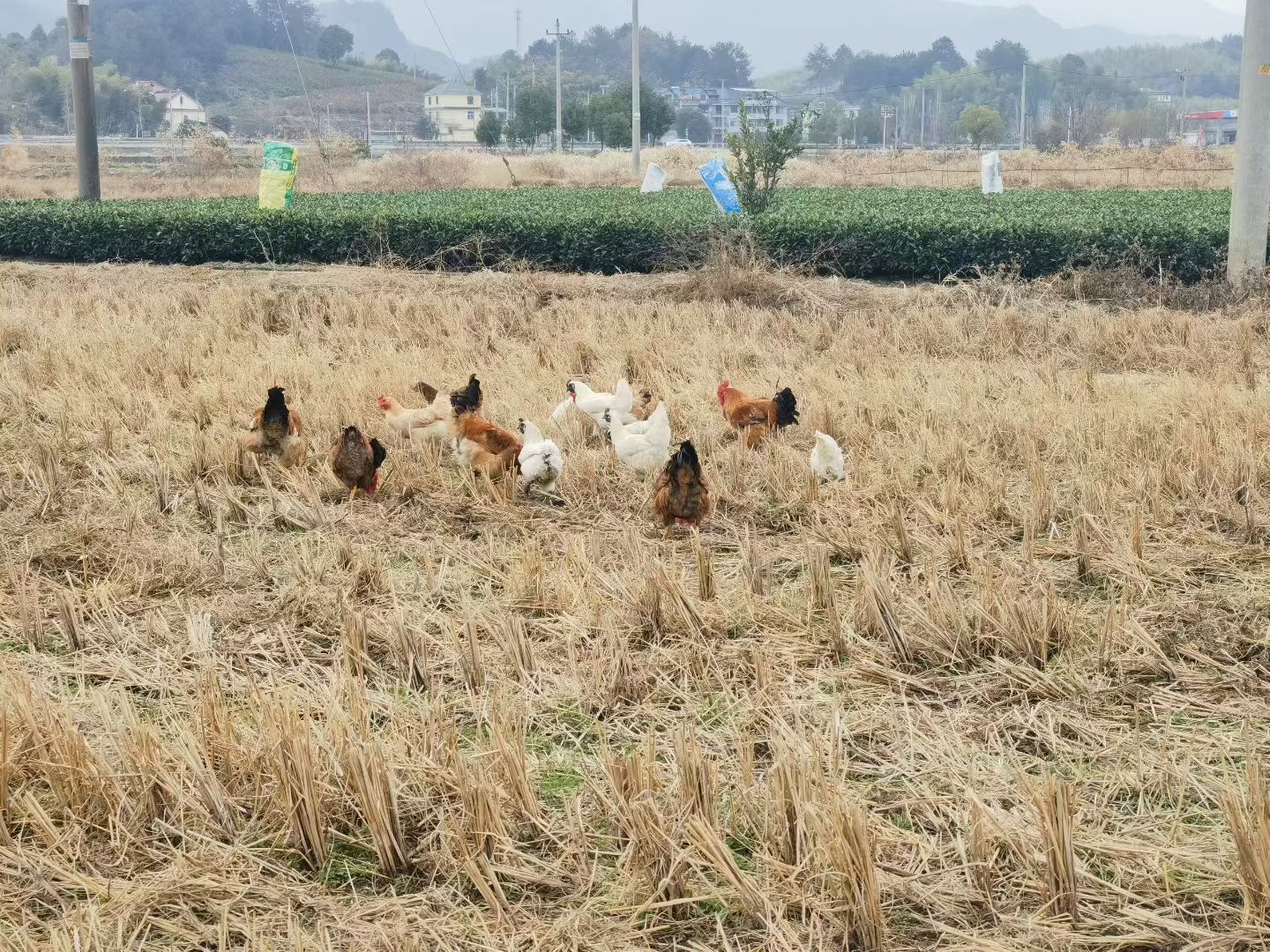看那群土鸡在收割了的稻田里欢快地啄米,自由自在的模样真治愈~
