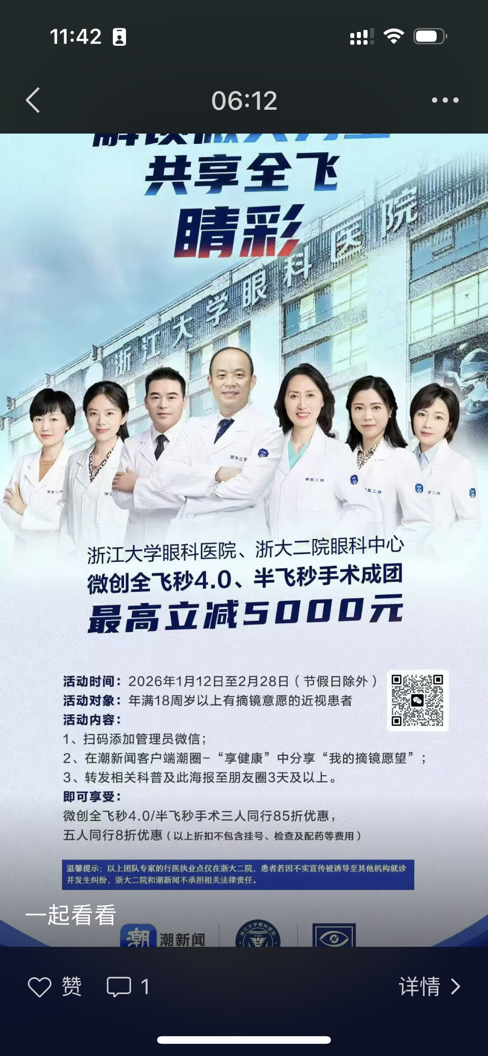 近视有10年了,每天早上醒来都要到处找眼镜,真的很不方便,然后我决定去做摘镜手术,浙大二院的整个检查流程也已经过了,期待我全飞秒做好之后重新看到世界。