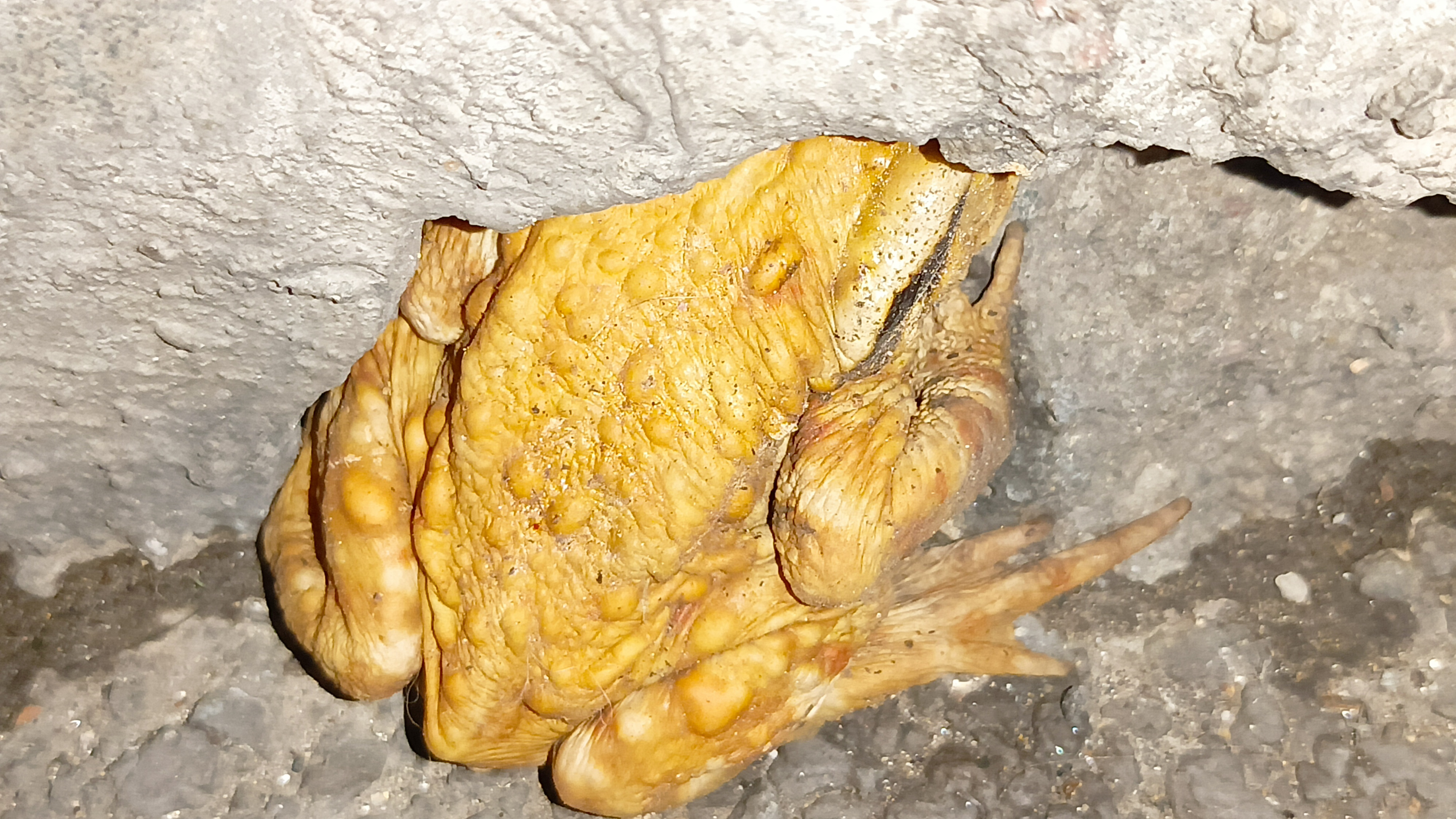 我这是遇见了金蟾?它在过马路,我一路护送它,直到陪它过了马路,走上人行道,见它钻到洞口,才离开,希望它安好!