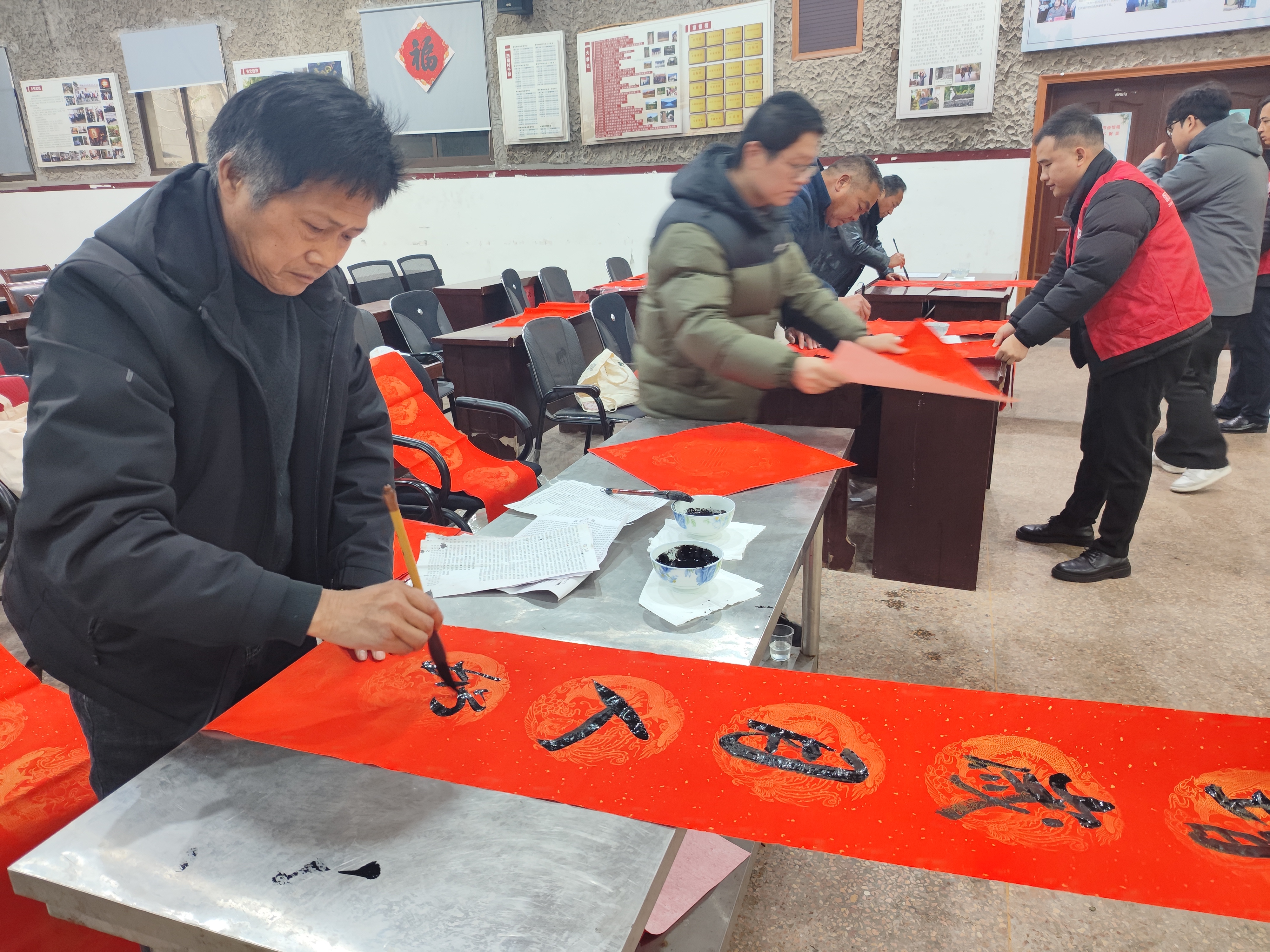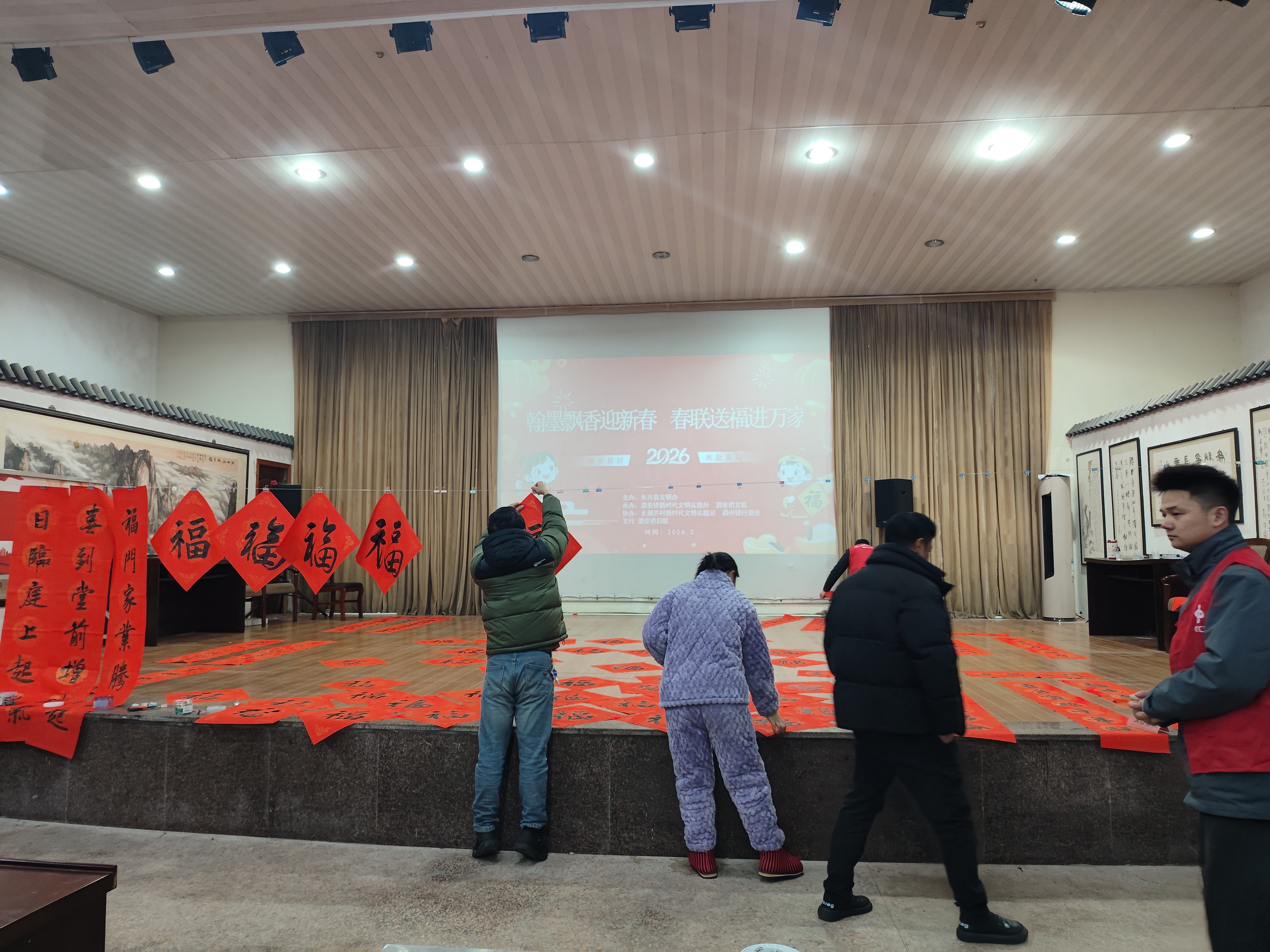 为弘扬中华传统文化,营造喜庆祥和的新春氛围,泗安镇长潮岕村在文化礼堂将举办“翰墨飘香迎新春 春联送福进万家”活动。 活动特邀请本地书法爱好者现场挥毫,为村民免费书写春联、福字。村民可自选吉祥联语,也可定制个性化春联。同时设置春联展示区,供大家欣赏经典联作、学习书写技巧。 此次活动将笔墨温情与节日祝福相融,既丰富了村民文化生活,又传递邻里温情。广大村民踊跃参与,领取新春好彩头!