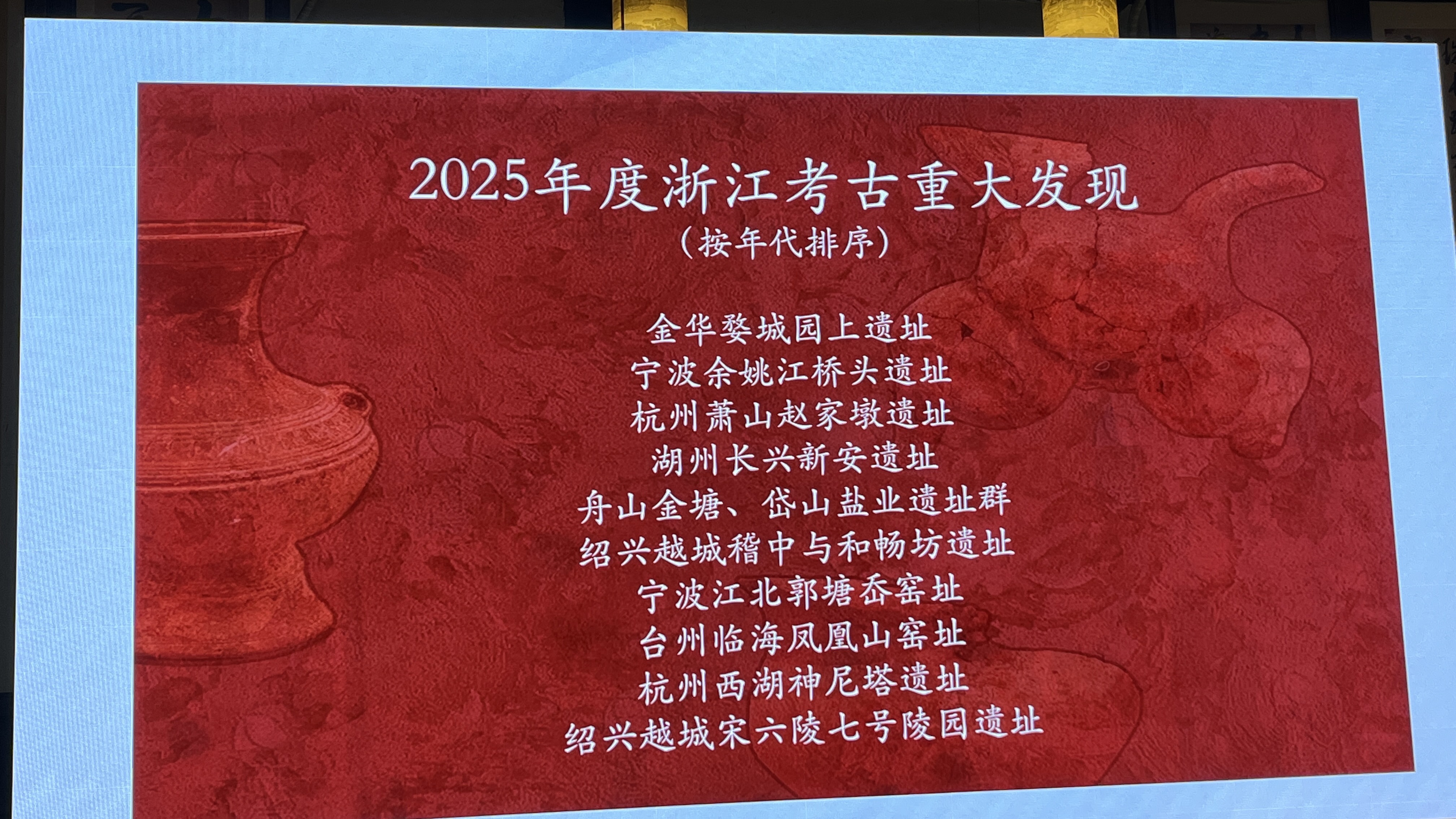 周六上午,前往浙江博物馆孤山馆聆听浙江考古学会郑建华理事长讲述2025年度浙江考古新发现。这是浙博孤山馆近期推出的展览《浙里寻珍——2025年度考古成果展》的配套讲座,也是为我们观展开启了新思路,获益匪浅。