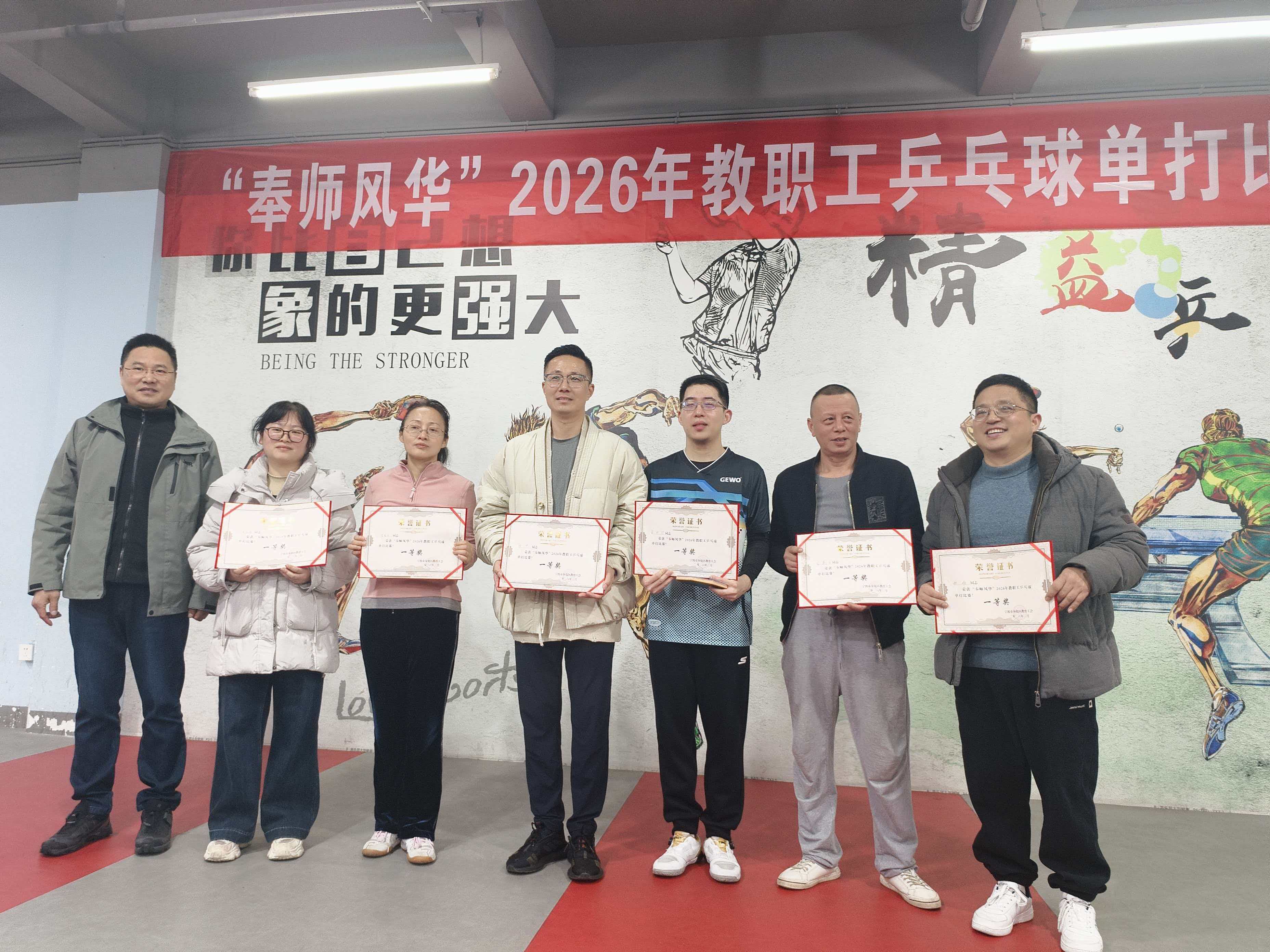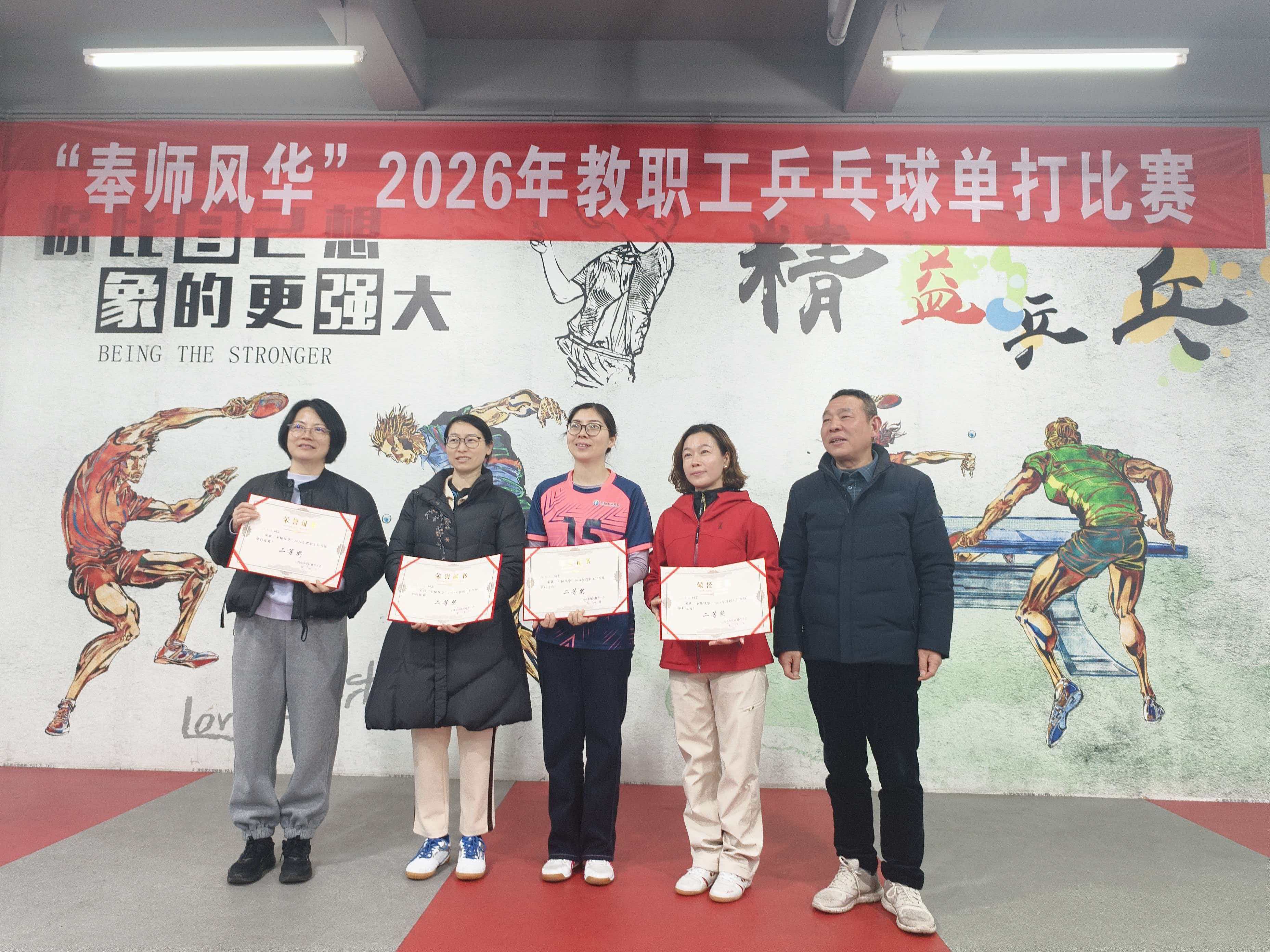 "乒"出友谊 "乒"出精彩 "乒"出快乐 奉化区"奉师风华"2026年教职工乒乓球单打比赛圆满落幕 马宜奋胡钢 为丰富教职员工的业余文化生活,增强教师之间的交流与互动,进一步推动乒乓球运动在教育系统的普及与发展,2月7日上午,由奉化区教育工会主办、奉化区精益飞诺乒乓球馆承办的"奉师风华"2026年奉化区教职工乒乓球男女单打比赛在奉化精益飞诺乒乓球馆隆重举行。来自全区各学校的近百名运动员和领队齐聚一堂,以球会友,共享运动快乐。 本次比赛严格执行国家体育总局最新审定的《乒乓球竞赛规则》,采用小组赛与淘汰赛相结合的赛制。小组赛阶段采用循环赛制,淘汰赛阶段则采用单败淘汰制,比赛采用3局2胜、每局11分制。科学的赛制设计既保证了比赛的公平公正,也为选手们提供了充分展示技艺的舞台。 比赛现场气氛热烈,精彩纷呈。参赛选手们精神饱满、斗志昂扬,小小的银球在球台上来回穿梭,划出一道道优美的弧线。选手们灵活移动脚步,巧妙控制落点,每一分都拼尽全力。每一次精彩的扣杀、每一次巧妙的削球,都赢得了现场观众的阵阵掌声与欢呼声。赛场内外,欢声笑语不断,充分展现了奉化区教育系统教职员工积极向上的精神风貌。 经过紧张激烈的角逐,男女单打各组别的冠、亚、季军相继产生。男子单打应盛龙,宣亦可,杨雄为前三名,女子单打董春芳,毛敏君,翁彩波为前三名,区教育工会,乒乓球协会等相关负责人为获奖选手颁发了荣誉证书和奖品,对他们在比赛中的出色表现给予了充分肯定。赛后,选手们相互交流经验,分享打球乐趣,在切磋球技中增进了友谊,在欢声笑语中拉近了距离。 本次"奉师风华"教职工乒乓球比赛的成功举办,不仅为全区教职员工搭建了一个展示风采、交流互动的平台,更有力地推动了乒乓球运动在教育系统的普及与发展。参赛教师们纷纷表示,将把赛场上拼搏进取的精神带到教育教学工作中去,以更加饱满的热情和健康的体魄投身教育事业,为奉化教育高质量发展贡献力量。