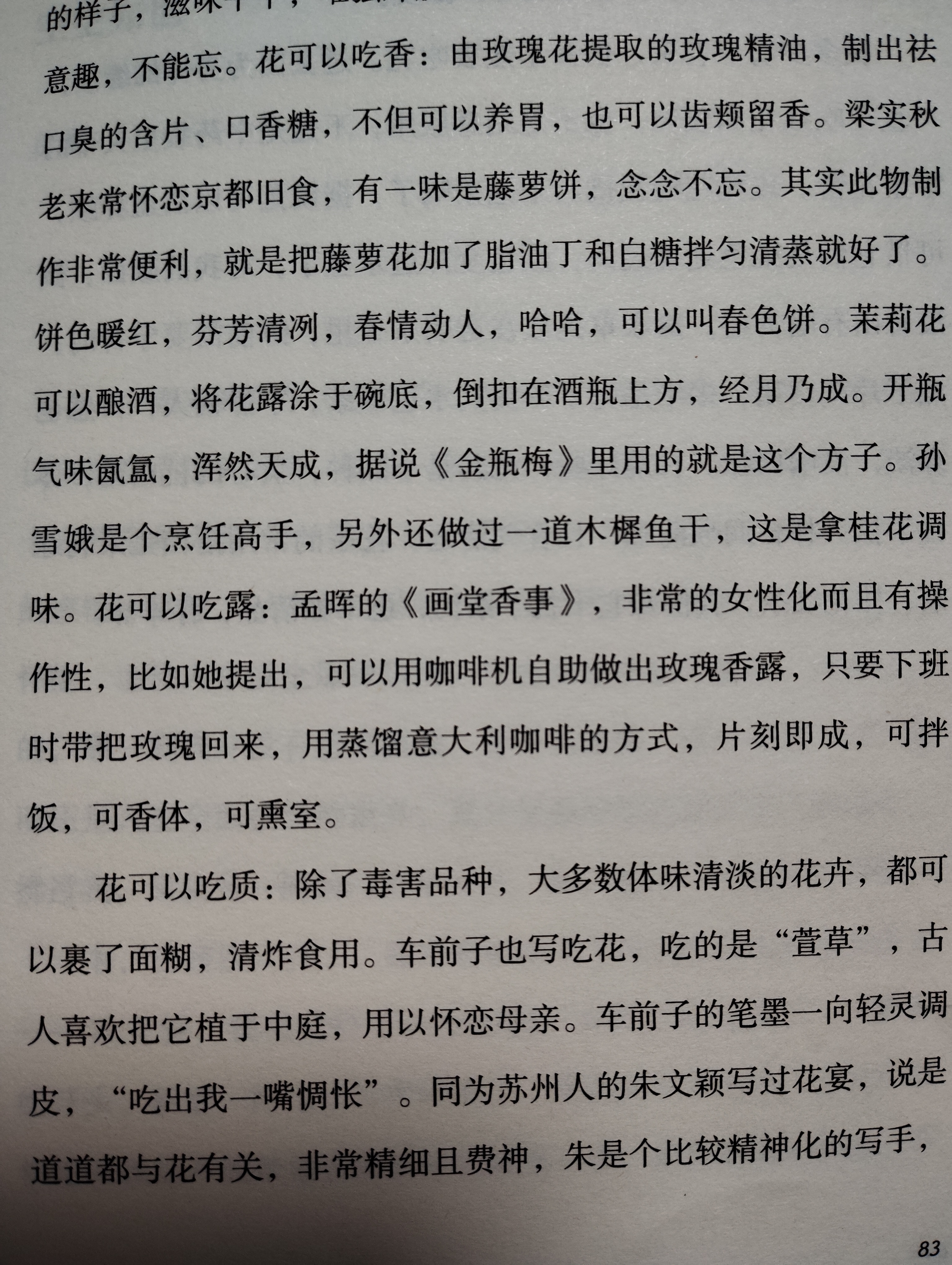 今天看到黎戈的《吃花》,谈到孟晖的《画堂香事》里有一则做玫瑰花露的制作方法——抓一把玫瑰花,放入意式咖啡机里,便能萃取玫瑰花露。——我听了很受启发,以前用小锅熬煮过,一大碗熬成一小蘸酱碗,然后倒入化妆用的喷雾瓶里,每天洗脸后喷喷,煮过的玫瑰花香带点儿烟焦味,不是很喜欢,后来直接一次性拿来洗脸了。网上说摩卡壶比意式咖啡机更好,因为意式咖啡机容易堵塞伤机子,家里有滴滤咖啡机和摩卡壶,下次拿来一试,不过,只能等玫瑰花开的季节,去那些种玫瑰花的老乡家里,拿一些有机的未经硫磺薰过的天然晒制的玫瑰花干才好。