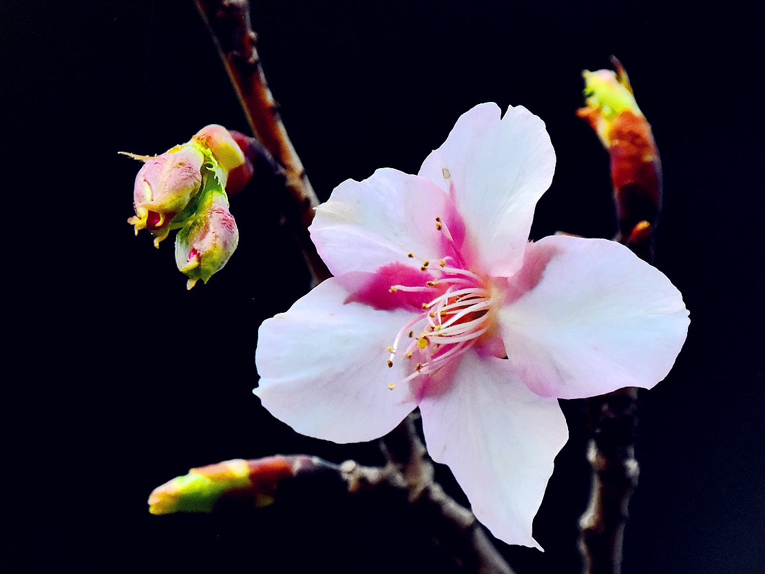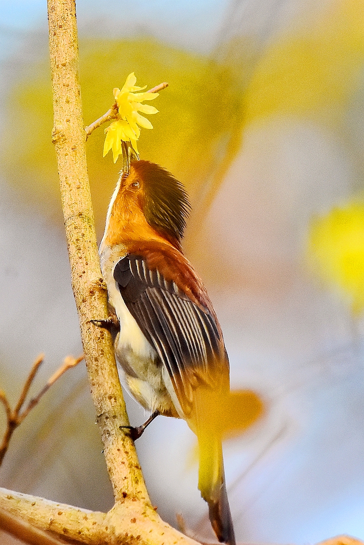 雨后天晴赏花鸟——雨夹雪后,终于天晴了。一早到植物园,又有一种樱花开了,好美;鸟儿也喜欢暖暖的冬日,纷纷露脸了,有橙腹叶鹎、栗背短脚鹎、棕头鸦雀、绣眼、黄颈鹀等,它们在开心地吸花蜜、尝冬果;漫步晨曦中,赏花拍鸟,好惬意的日子。摄于2月8日。
