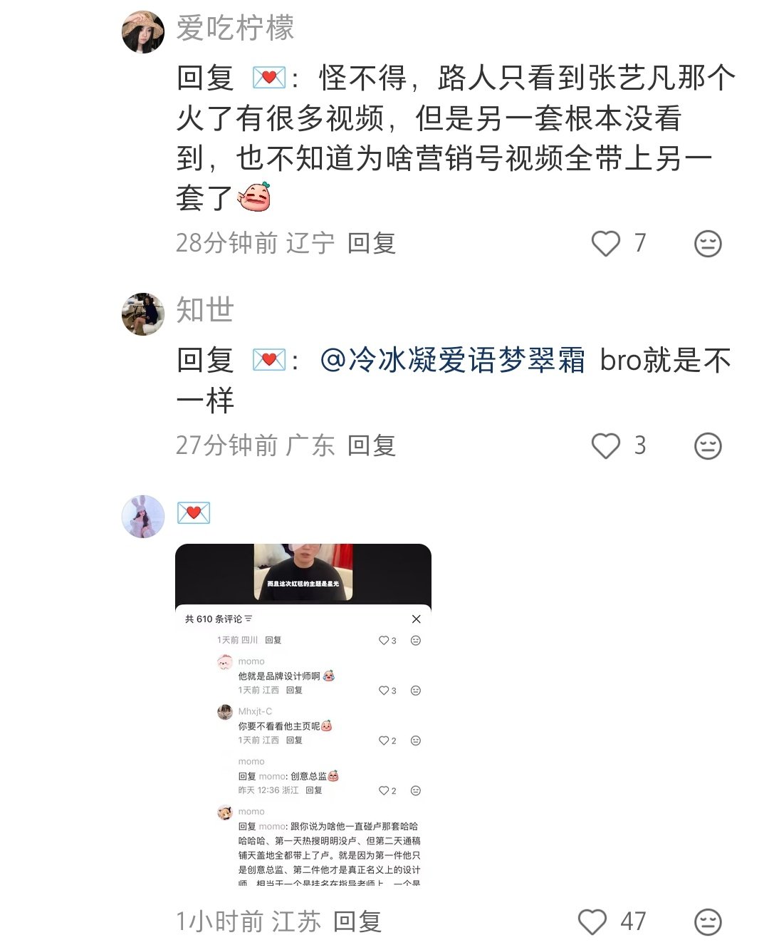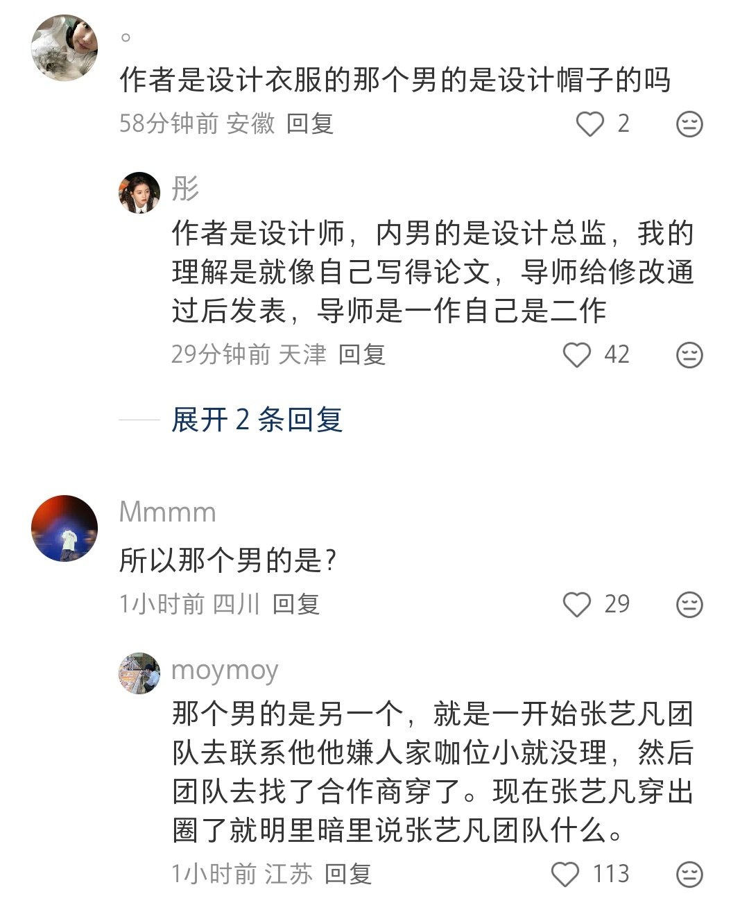昨天看到有个男设计师yygq张艺凡穿出圈的那套衣服,他不想给她穿的意思吧,还瞧不上张的咖位。但是刚刚刷到另一个设计师,说衣服上她设计的。不知道是一家的,还是说衣服和帽子是分开设计的[泪奔]
