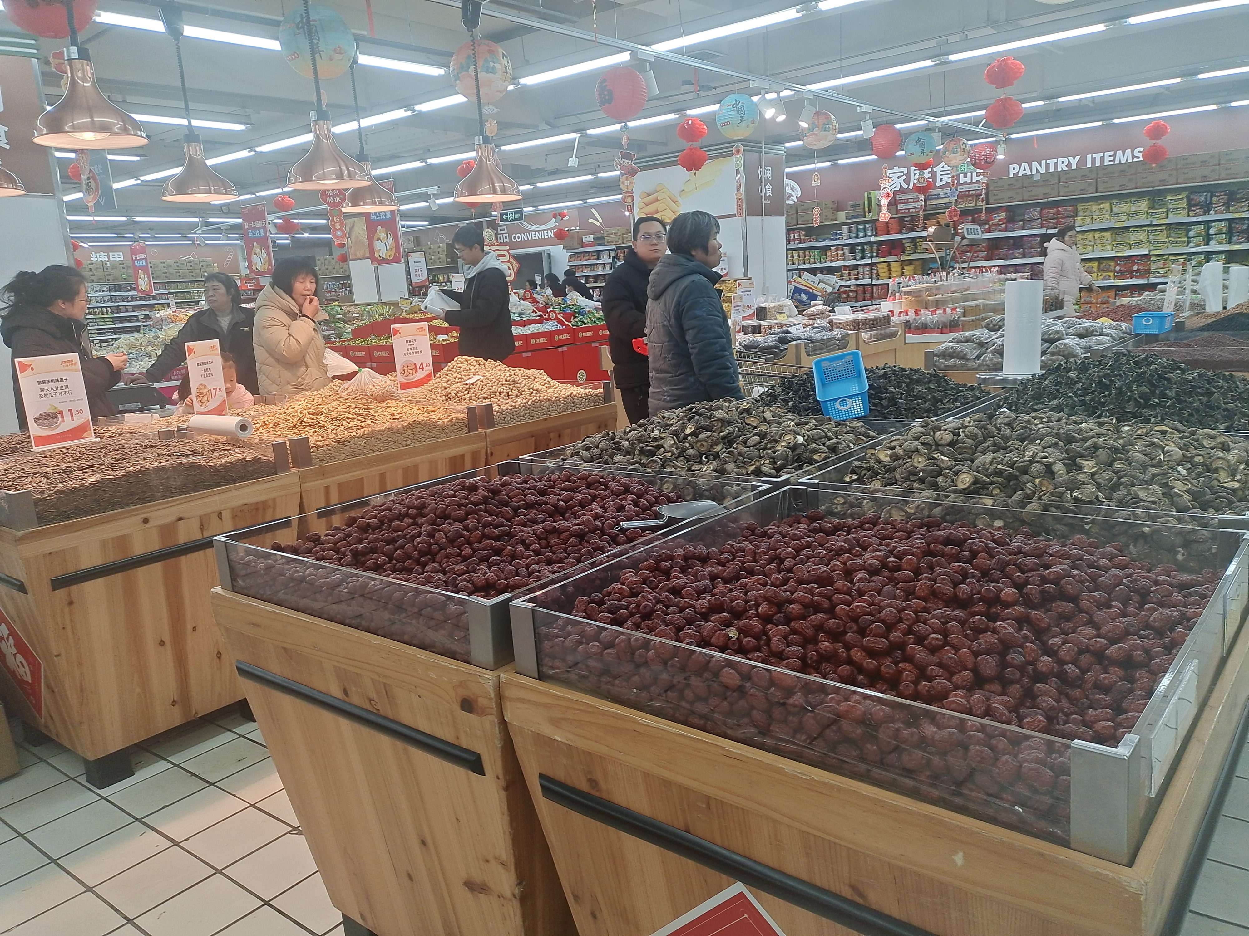 节前逛华润,福满进万家。超市里红灯笼一挂,坚果多多随你挑,年味儿就蹭蹭冒泡~推着购物车逛万家喜市,红枣核桃堆成山,连空气都甜丝丝的③