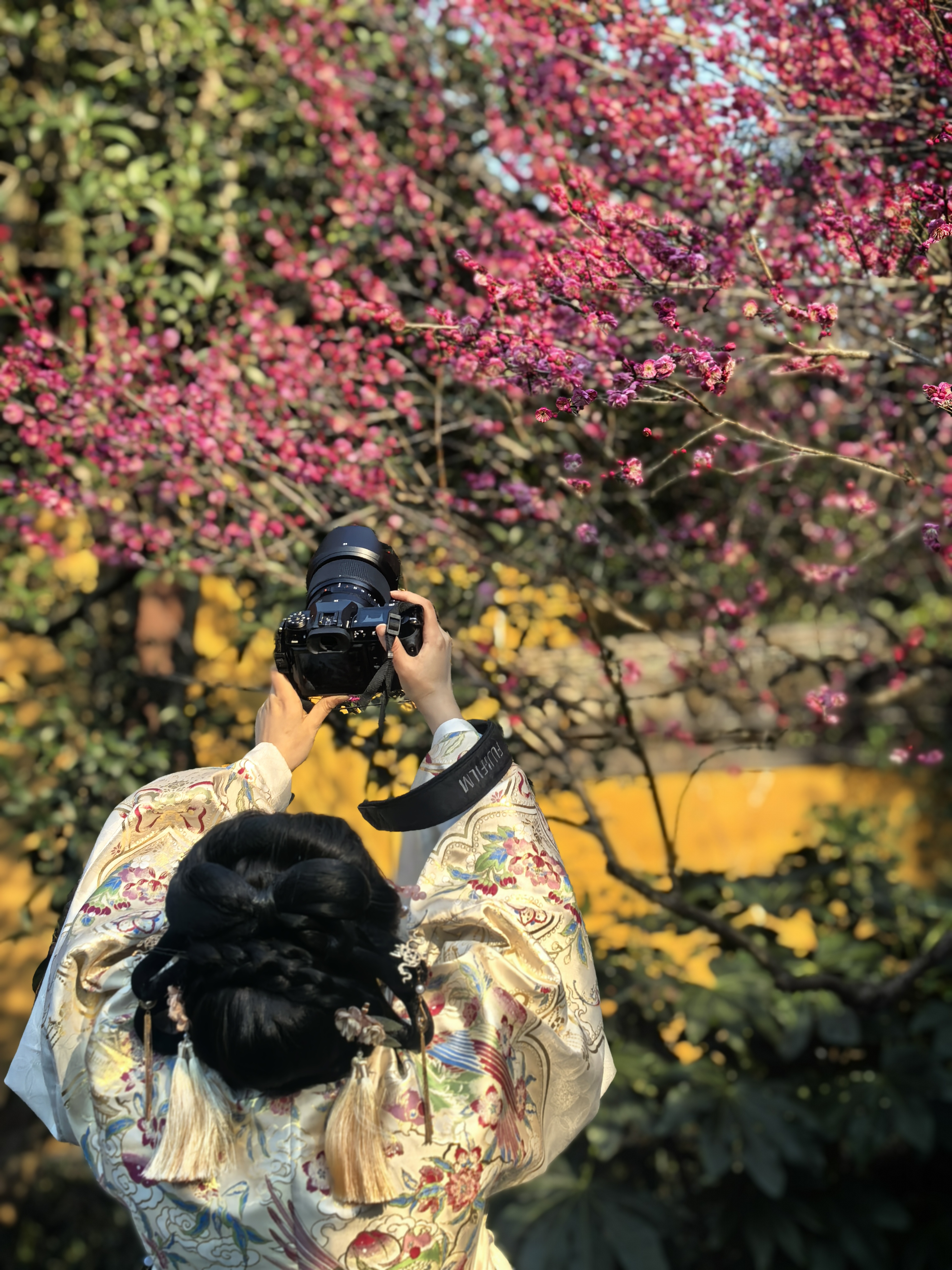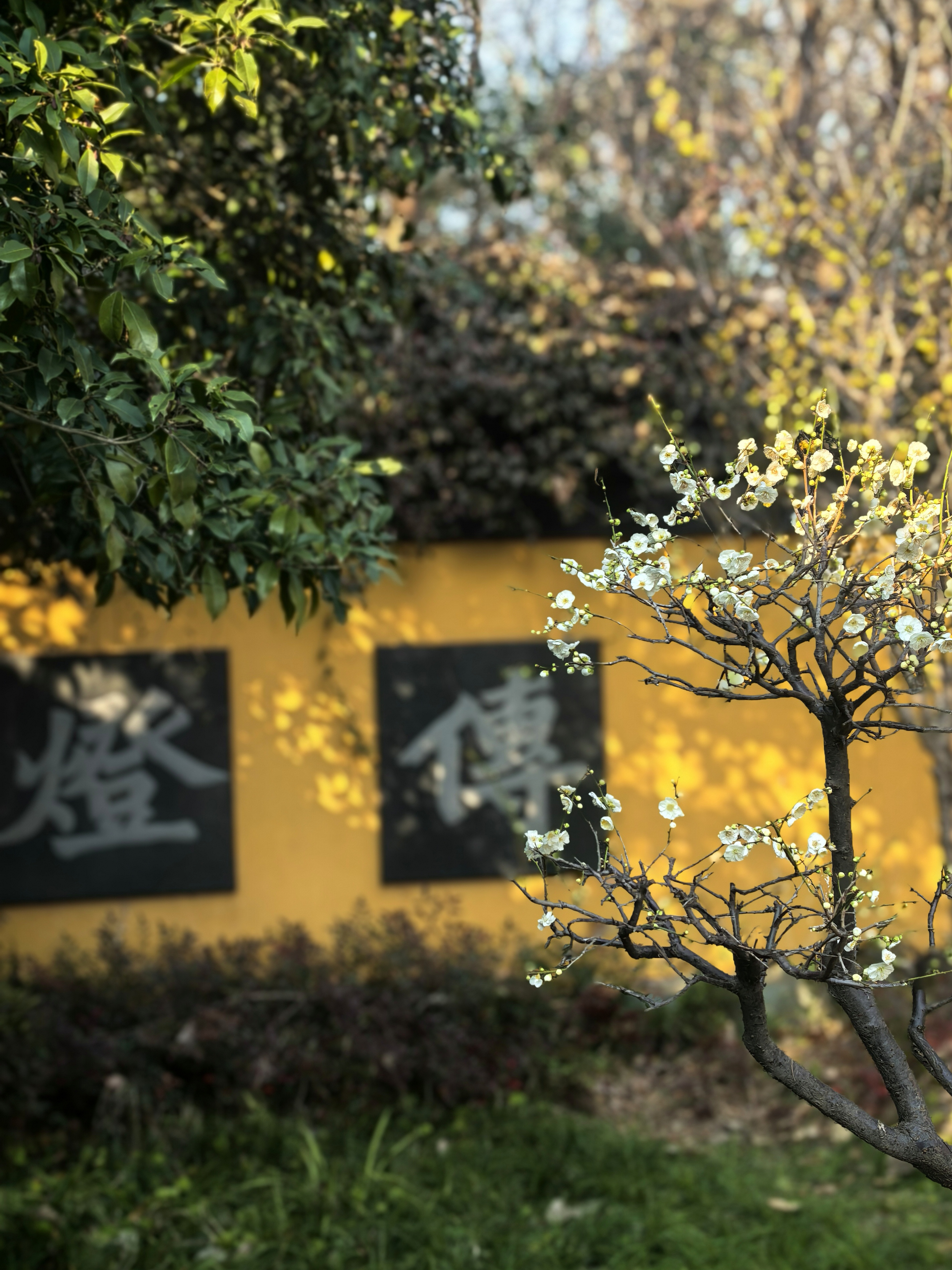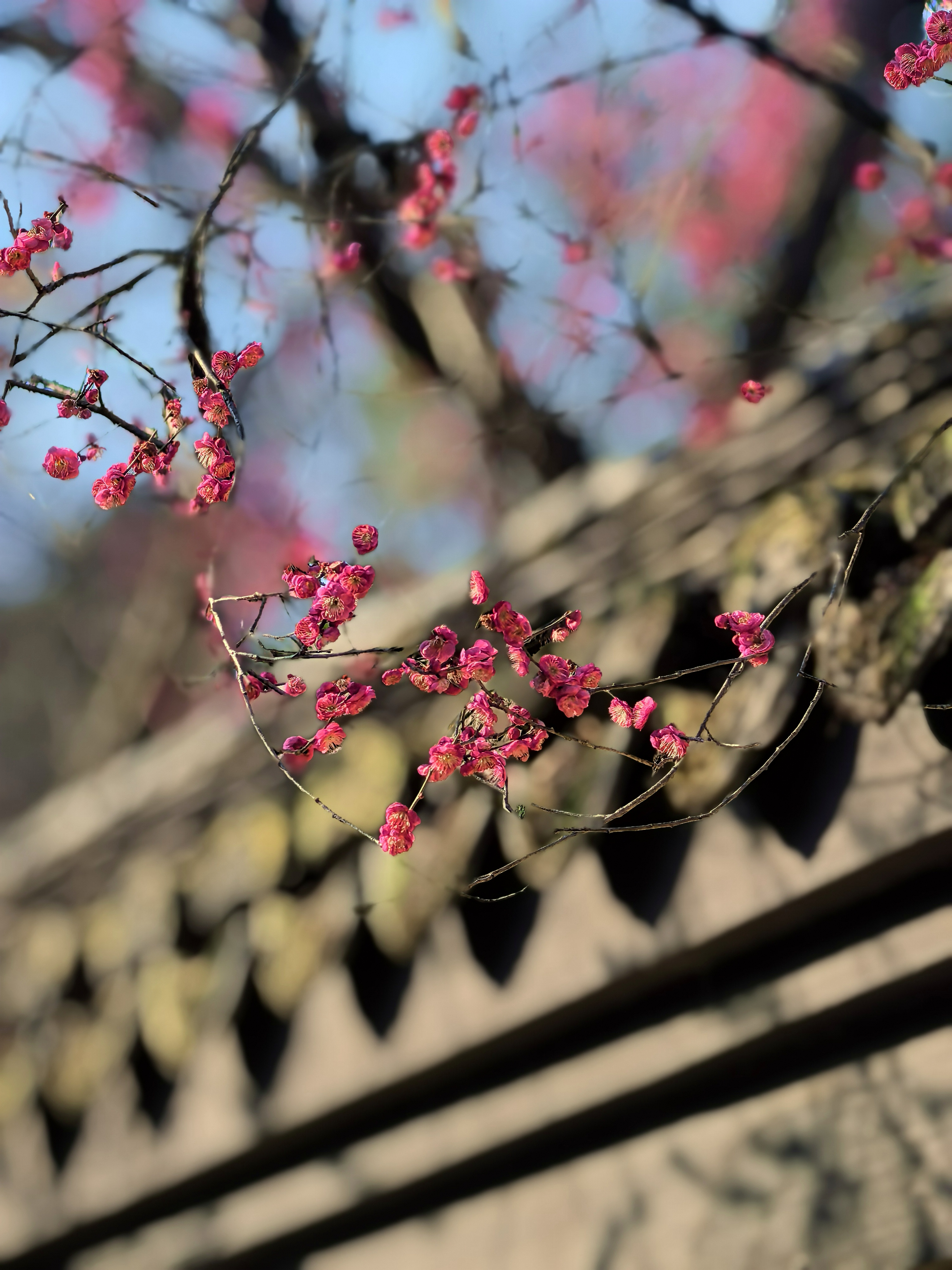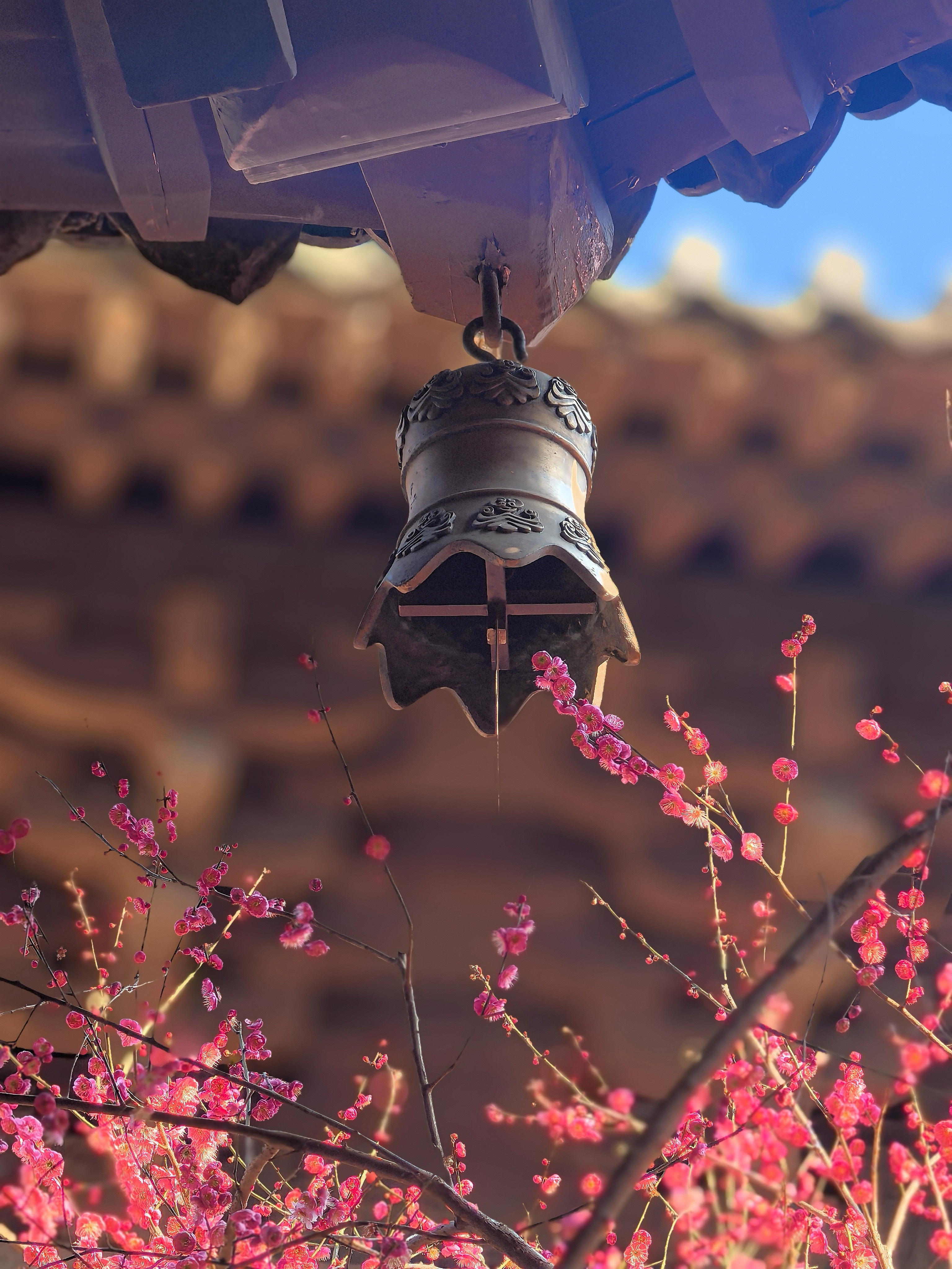 今天的慧因高丽寺,是一个朋友圈摄影大赛的热点秀场。平日里静谧的古寺内,游人如织。几株红梅生得摇曳多姿,如诗如画。 下午暖阳慵懒地漫过黄墙,在斑驳的光影中唤醒了一树的梅朵。虬枝如墨线,勾勒着风骨;繁花似绯云,灼灼然燃烧在檐角瓦当之畔。 飞檐翘角承载着时光的厚重;红梅轻颤,每一瓣都诉说着生命的鲜活。暗香浮于回廊之间,偶有游人仰首细嗅,或举镜凝眸,恨不得将这动人的绯红伴着禅寂一同收入自己的方寸之间。 古朴的永恒与绚烂的须臾,真的是相看两不厌,有时候静默也成为永恒。年年赏梅必拍地,这里算是相当出片的地方了!杭城赏梅之八慧因高丽寺。