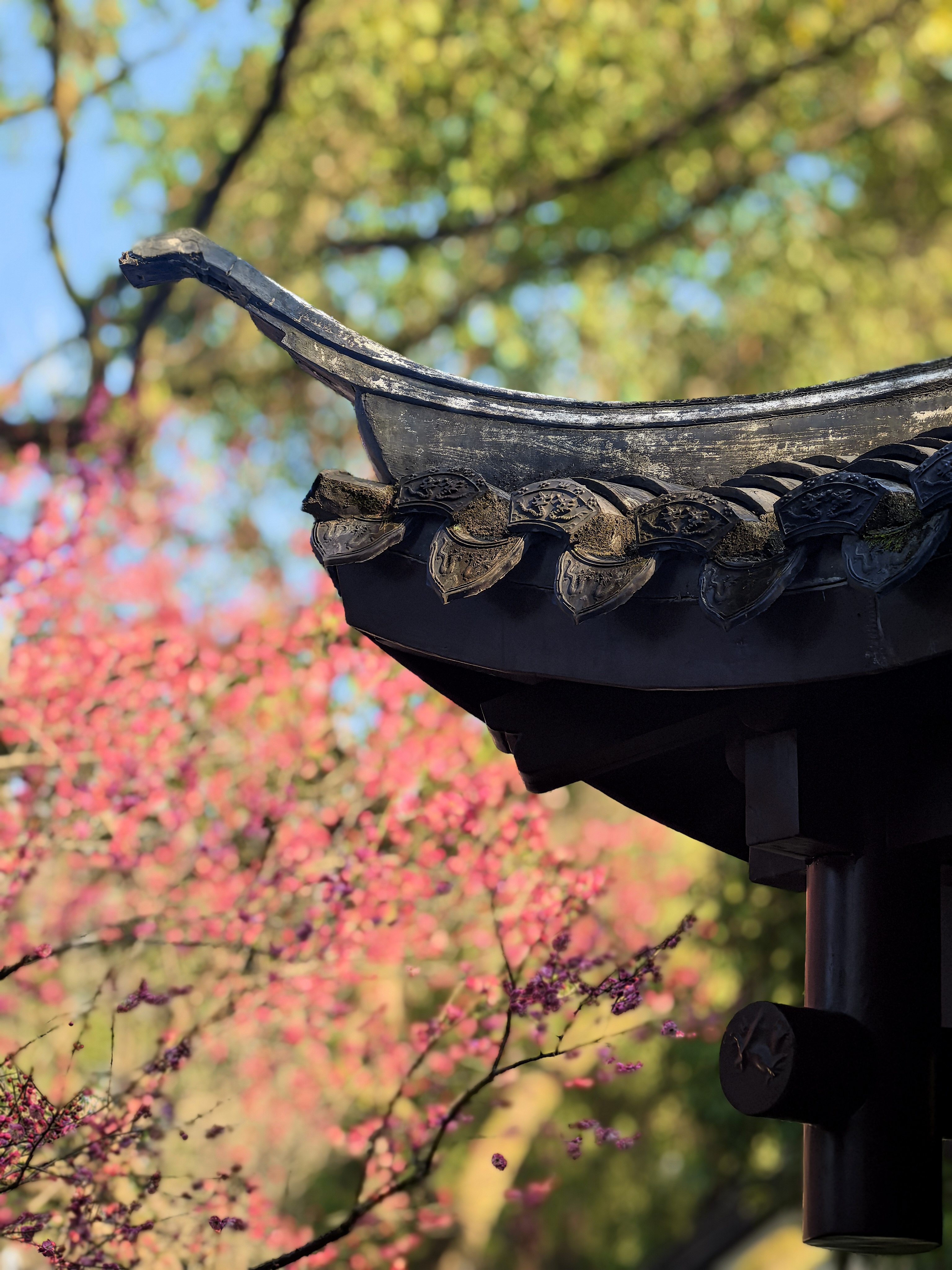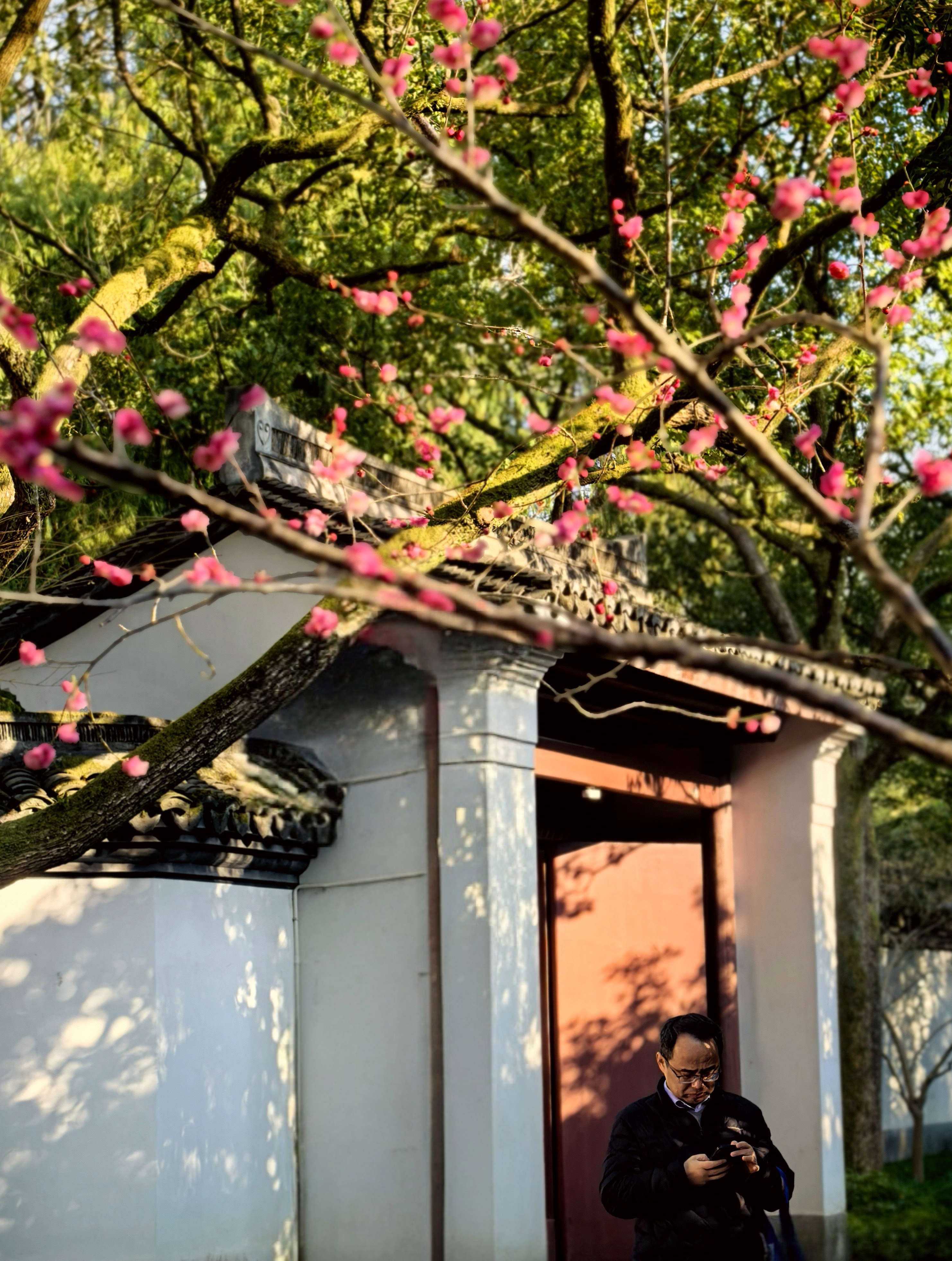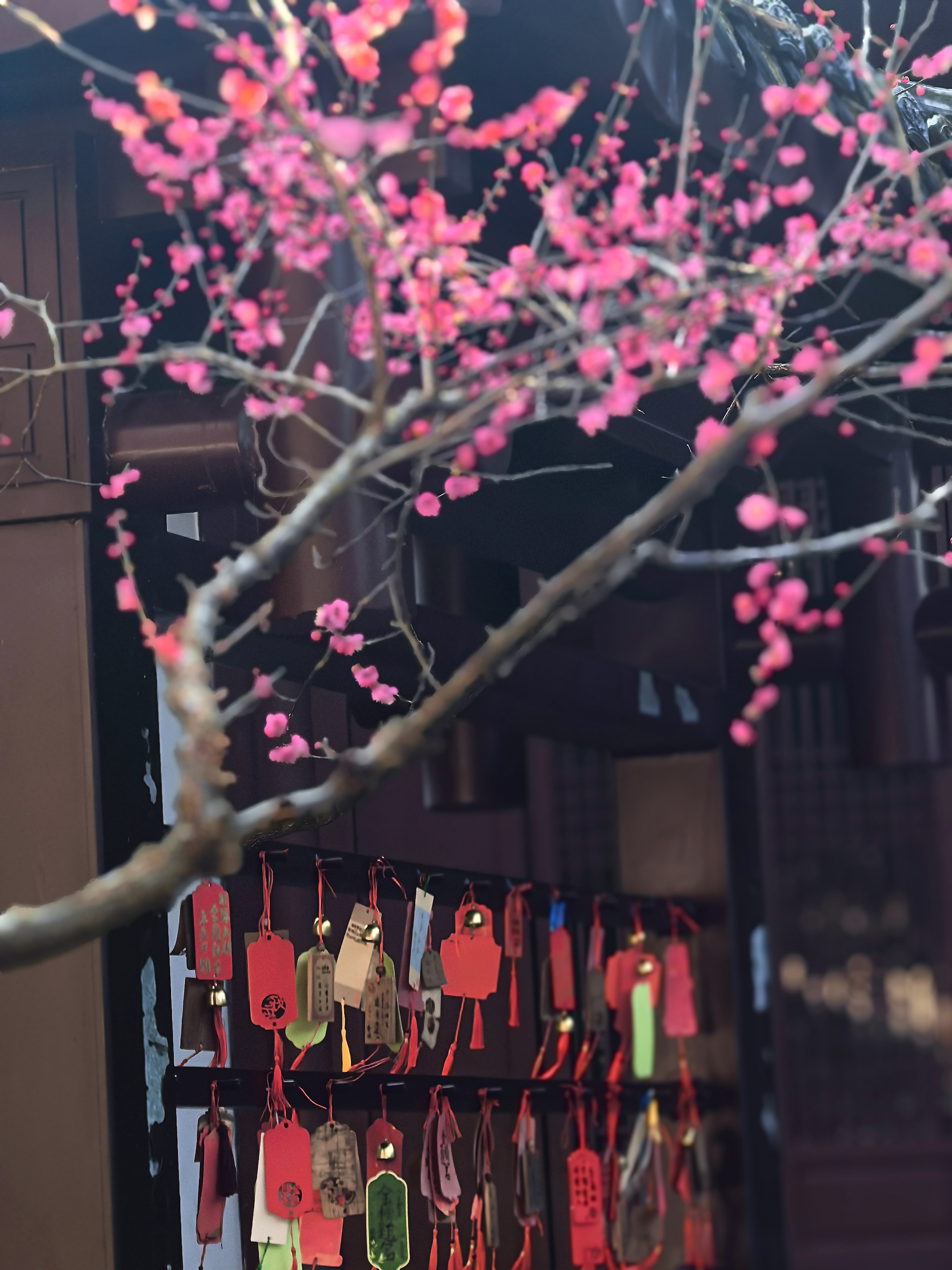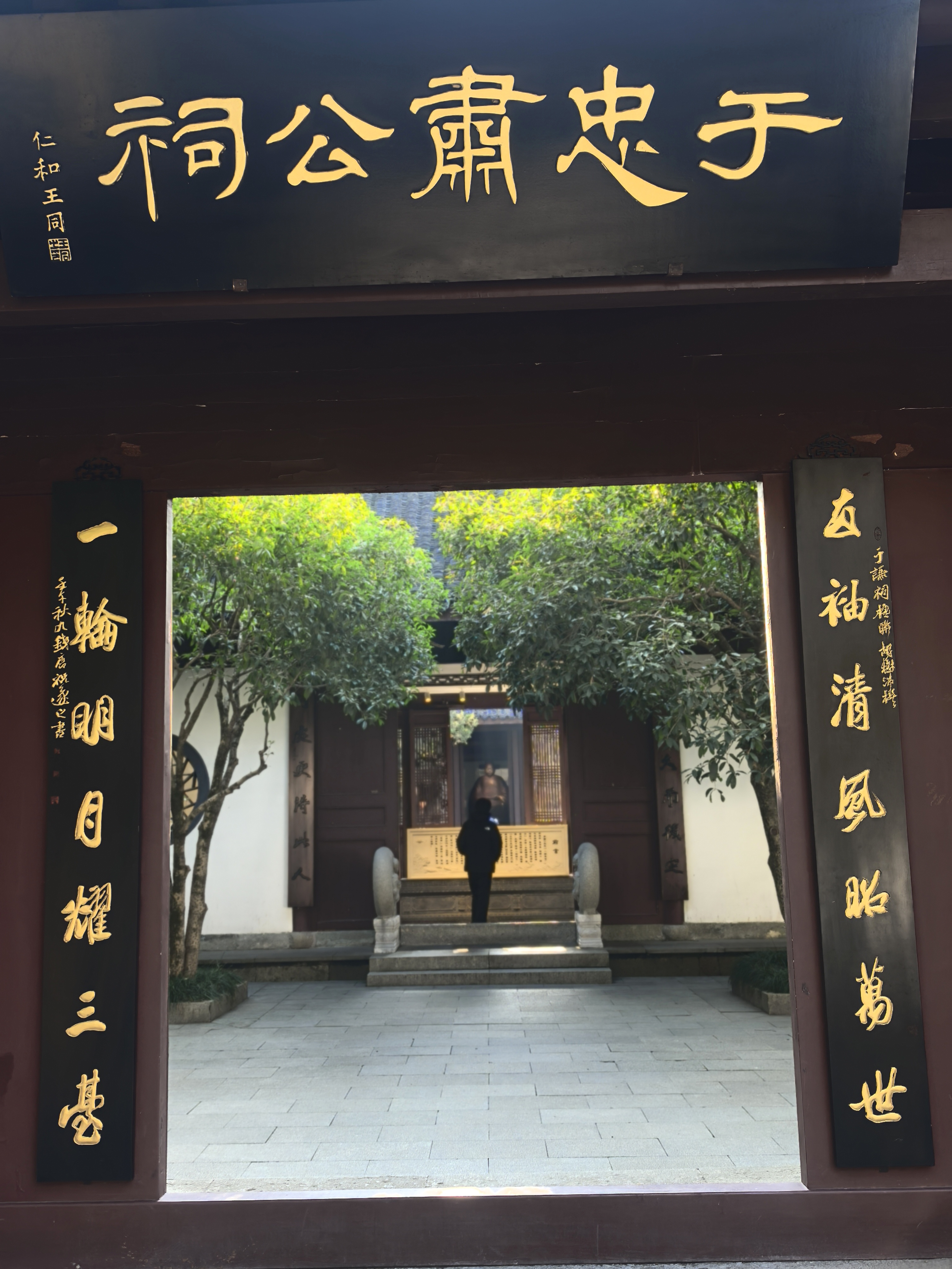 于谦祠的梅花只有一株,却觉得别有风骨。前二年没有细看,所以特地来赏。午后斜阳照在祈梦殿前的青砖黛瓦间。一树的梅花密密匝匝,几乎要将那苍劲的黑枝压弯。 梅树边挂满了心愿结,红的,绿的,系着铃铛的,层层叠叠如时光的璎珞。我忽然想起那个写下“粉骨碎身浑不怕”的于肃愍公,当年京师告急,满朝惶然,只有他一人立在中流,撑起了大明将倾的江山。 而今,所有金戈铁马都化作檐角风铃的轻响,唯有这株梅花,年年开得这样烈,仿佛要把那段被风雪掩埋的风骨,一朵一朵全都唤醒。 循着门下牌匾望去,梅枝与古檐交错。那些系在心愿结里的期盼,其实与600百年前京城百姓的期盼并无二致:要的不过是个清白人间。 梅花不语,把根系深深扎进历史的缝隙,让每一个路过的人都能看见:有一种绽放,可以穿透漫长的寒冬,在每一颗企盼光明的心灵里,开成永不凋零的春天。杭城赏梅之九于谦祠。