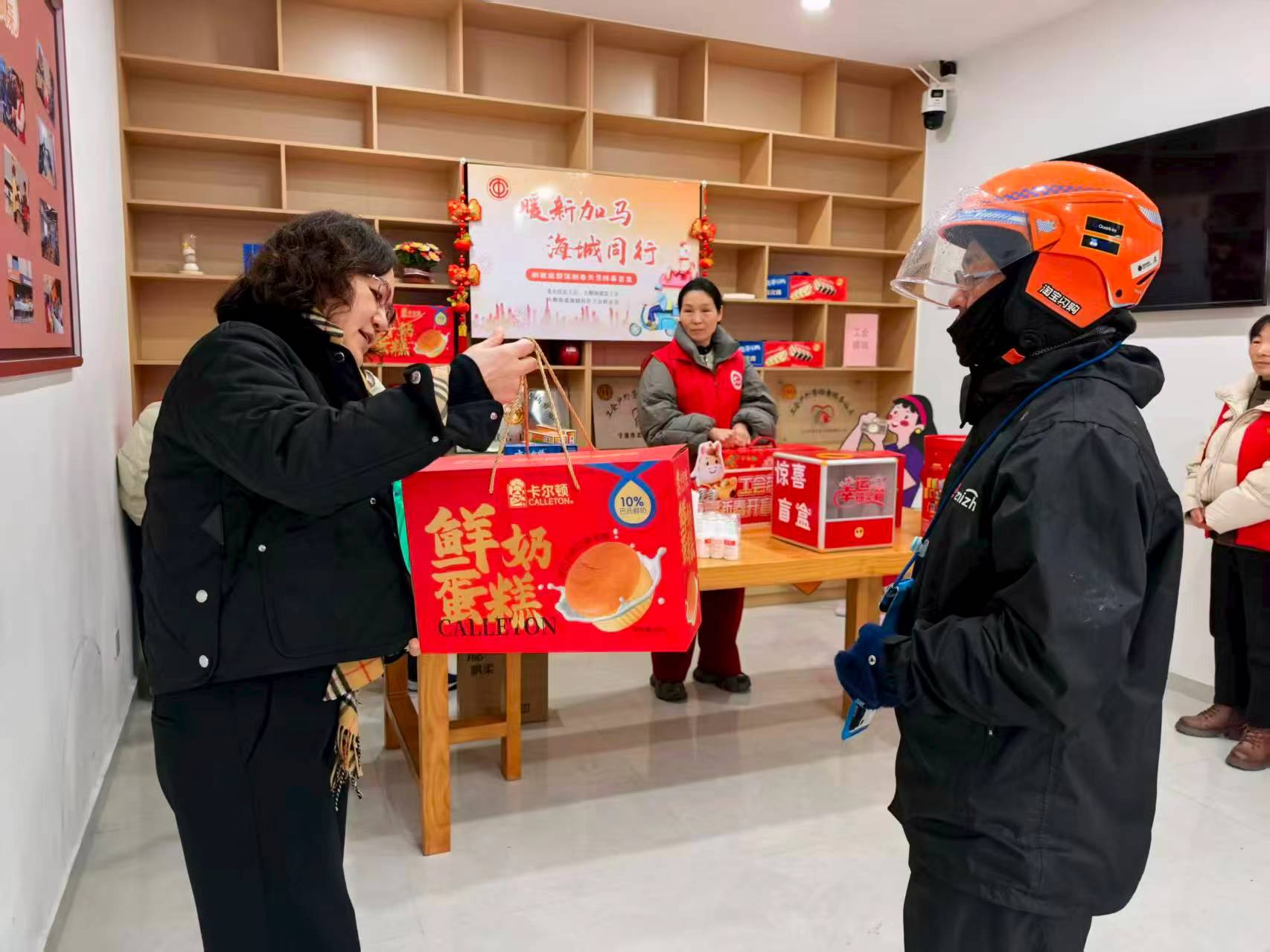 2月6日上午,海城社区举办的“暖新加马,海城同行”新春关怀活动在慈善惠民益站温馨开展。上午10点起,陆续有新业态群体利用接单间隙前来抽奖领取盲盒。他们的脸上都洋溢着笑容,这份突如其来的关怀,让他们在奔波途中感受到来自“娘家人”的牵挂与体贴。“平时都是我们给别人送东西,今天收到工会送的礼物,真的很暖心!”一位外卖骑手在领取盲盒后感慨地说。不少快递小哥和网约车司机也表示,这样的活动让他们更有归属感,体会到社会对他们的尊重与认可。活动现场秩序井然,温馨和谐,劳动者们短暂停留、互相问候,驿站内外洋溢着浓浓的节日氛围与人情温暖。