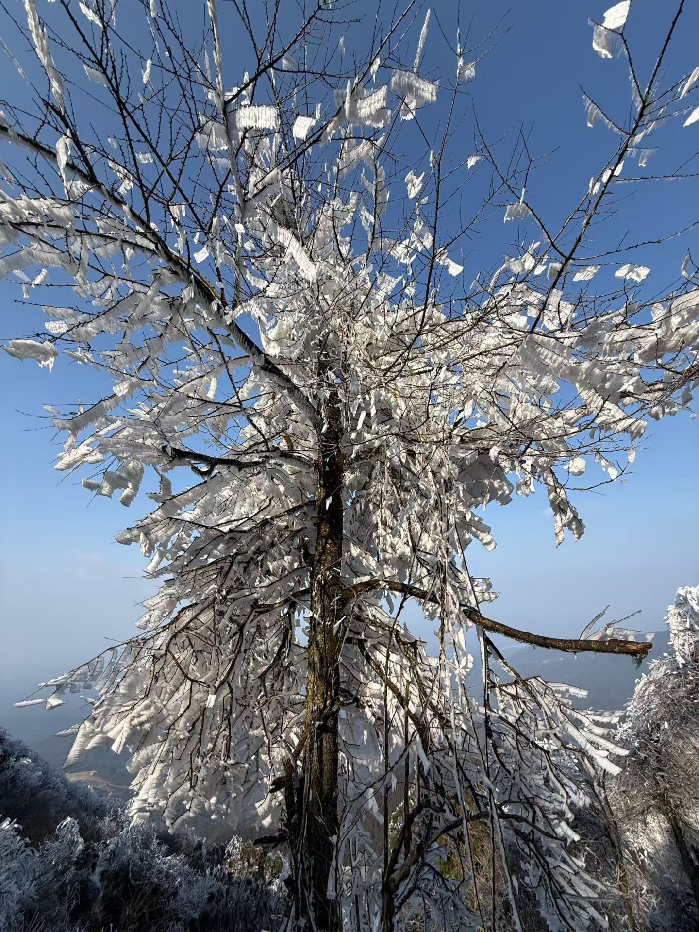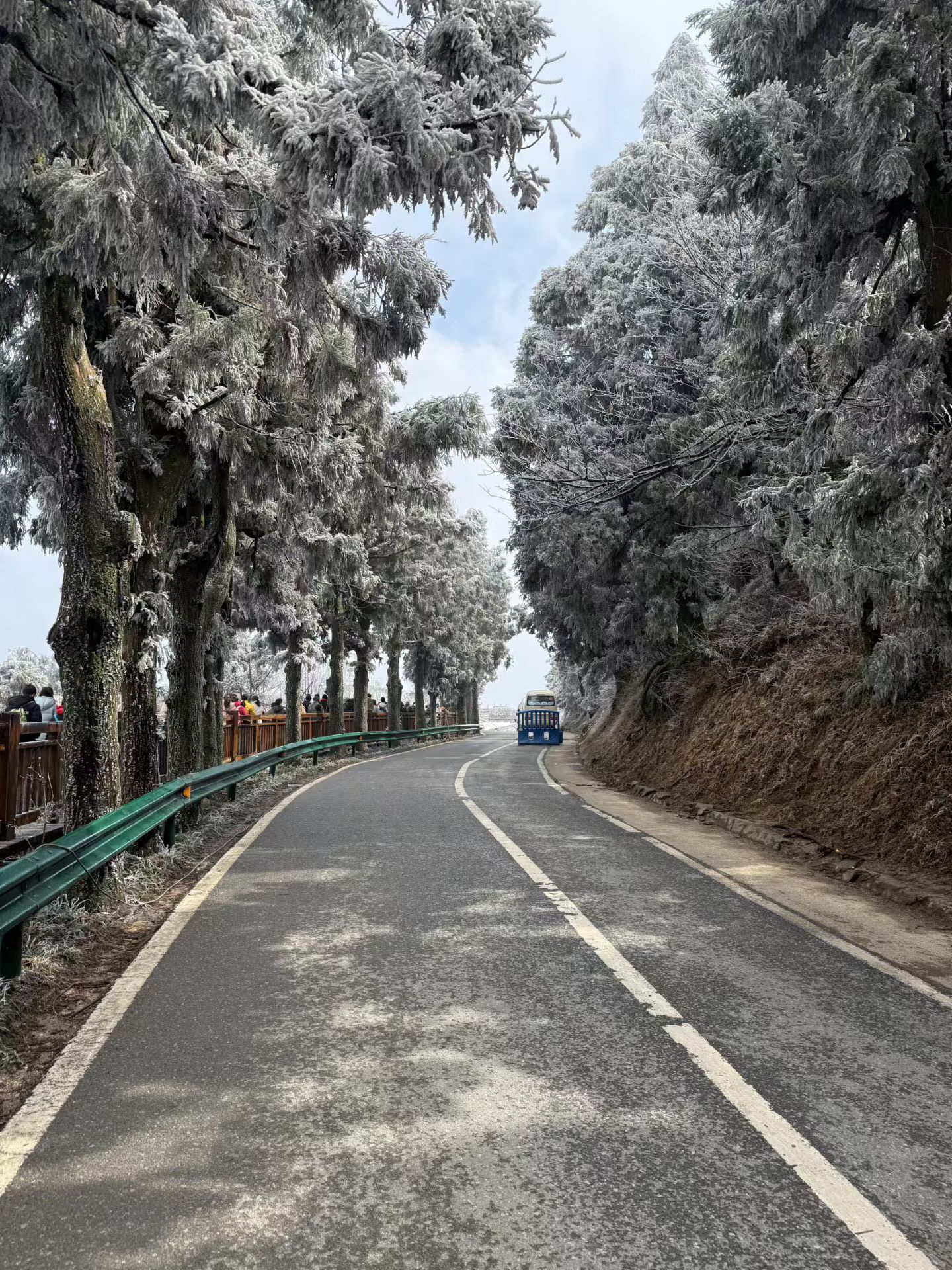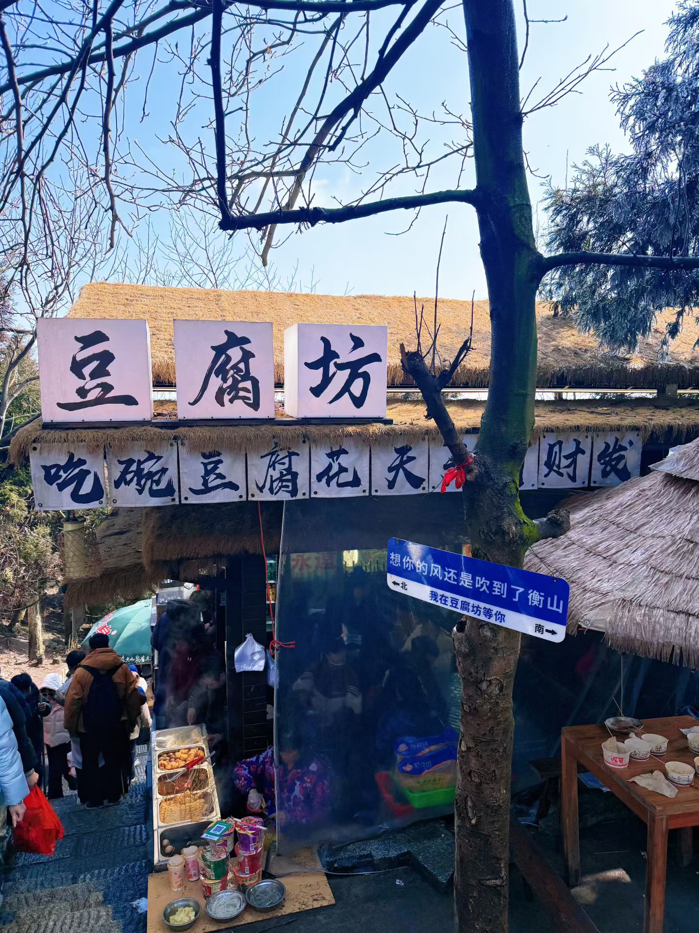 赴一场南岳的冬日之约,在冰雪与烟火间寻得平衡。车行至半山以上,仿佛闯入琉璃仙境,千树琼花,万枝凝霜,雾凇在蓝天映衬下闪着清透的光,每一步都似踏在碎玉之上。登顶的疲惫,全被一碗热乎的豆腐花消解。草棚下的招牌写着“吃碗豆腐花,天天发大财”,粗粝的山野气里藏着最直白的祝福。风里是凛冽的冰意,碗里是温润的豆香,这一刻,衡山的仙气与烟火气,都化作了心头的暖意。