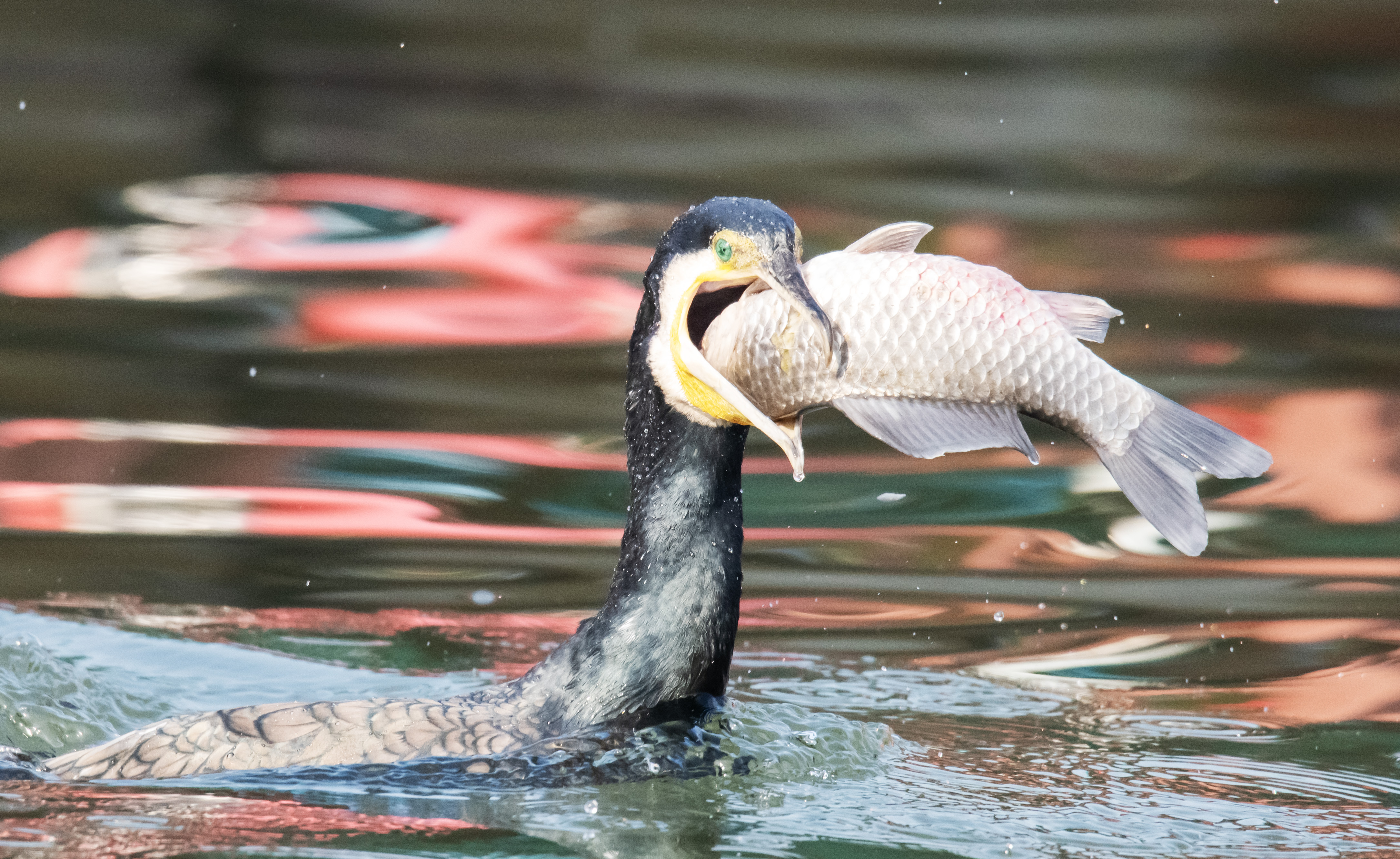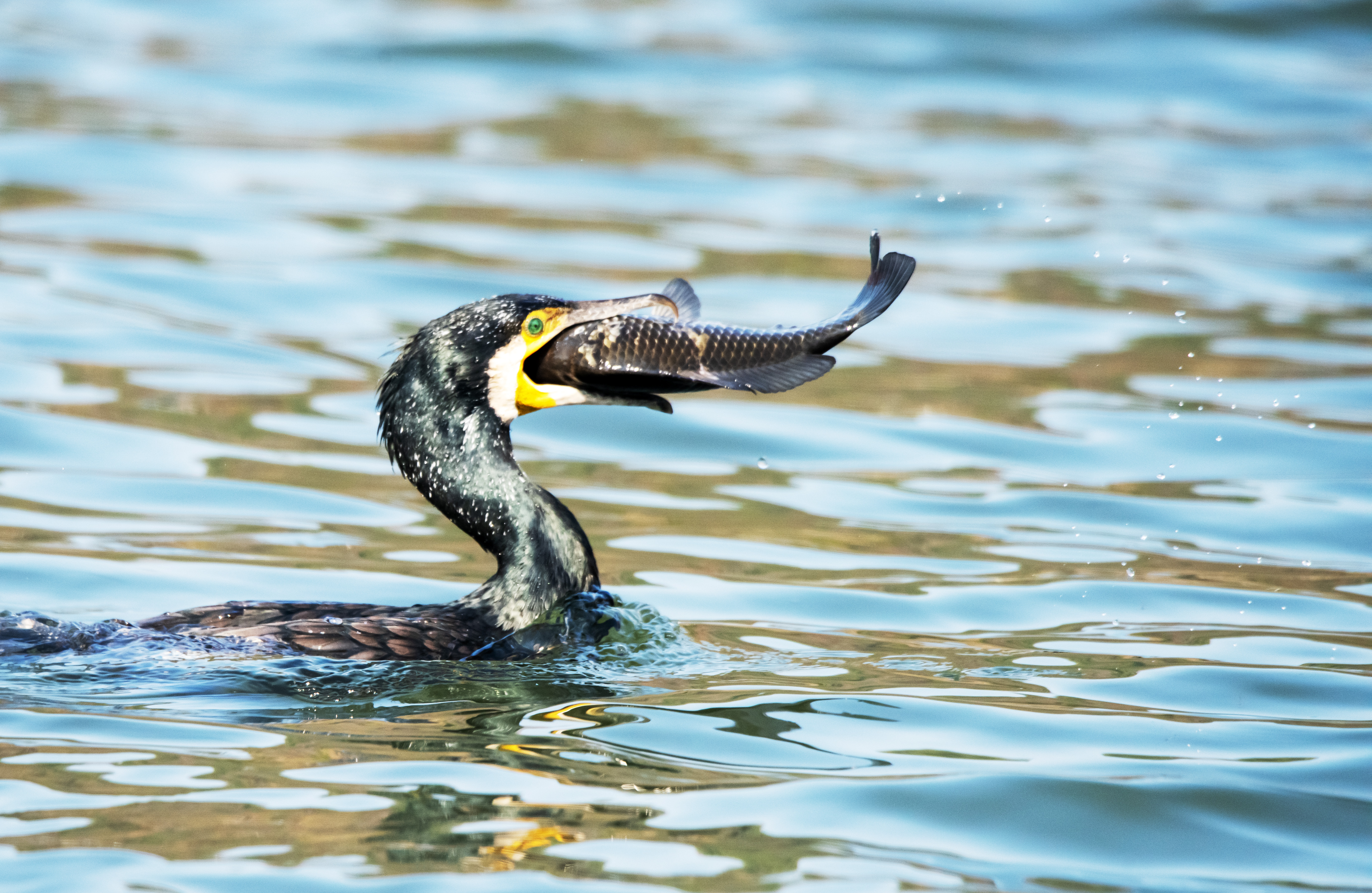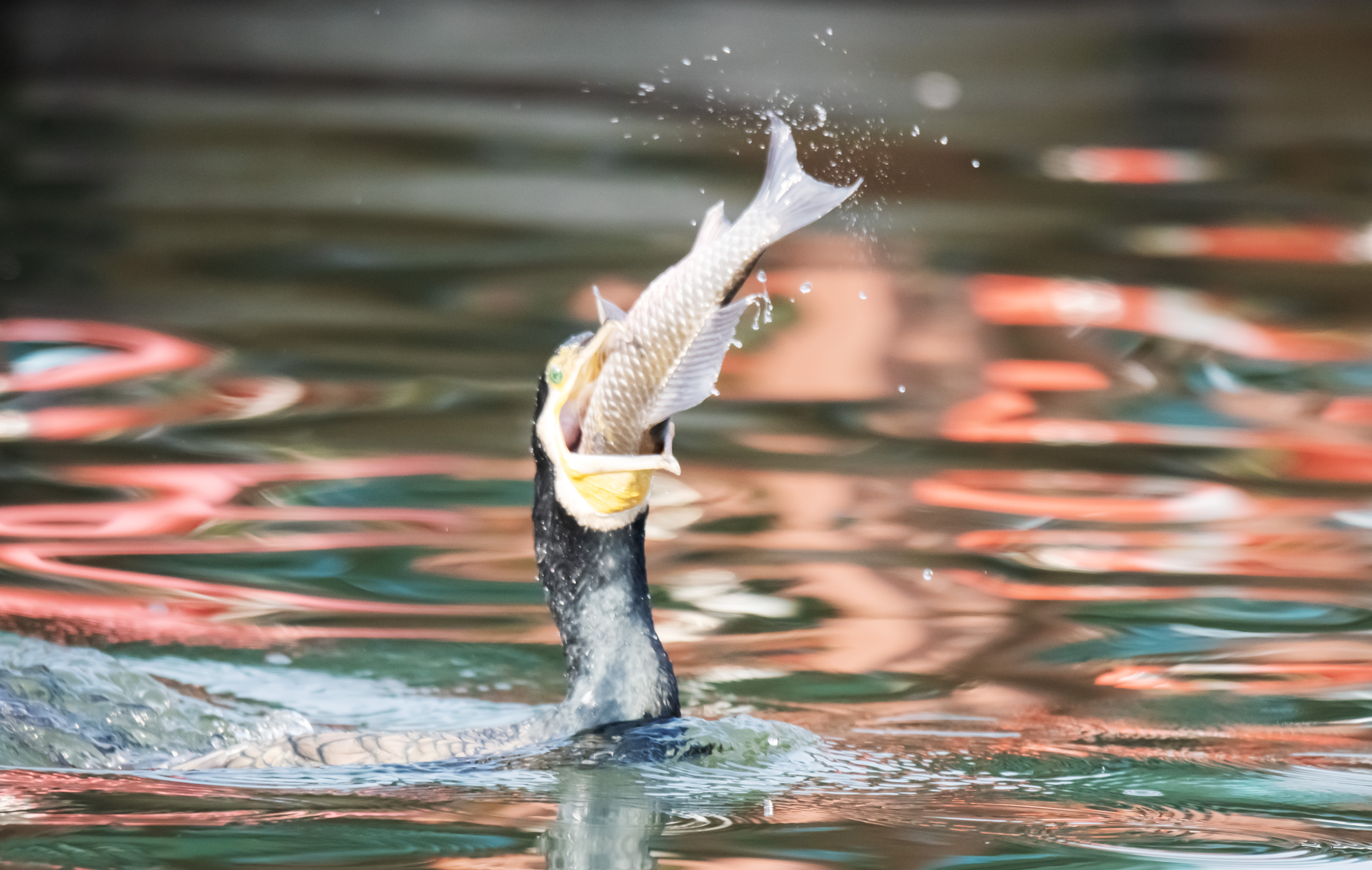 鸬鹚水中戏小鱼,转瞬又把大鱼吞
