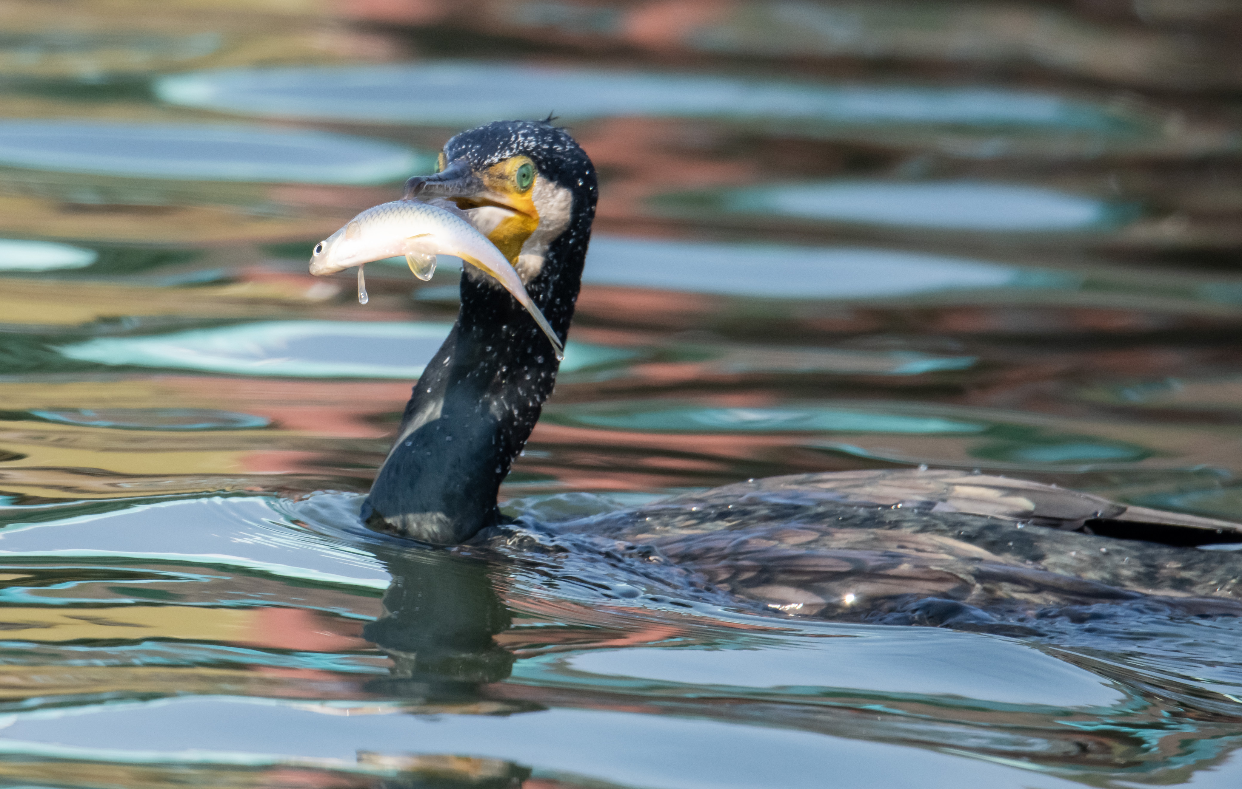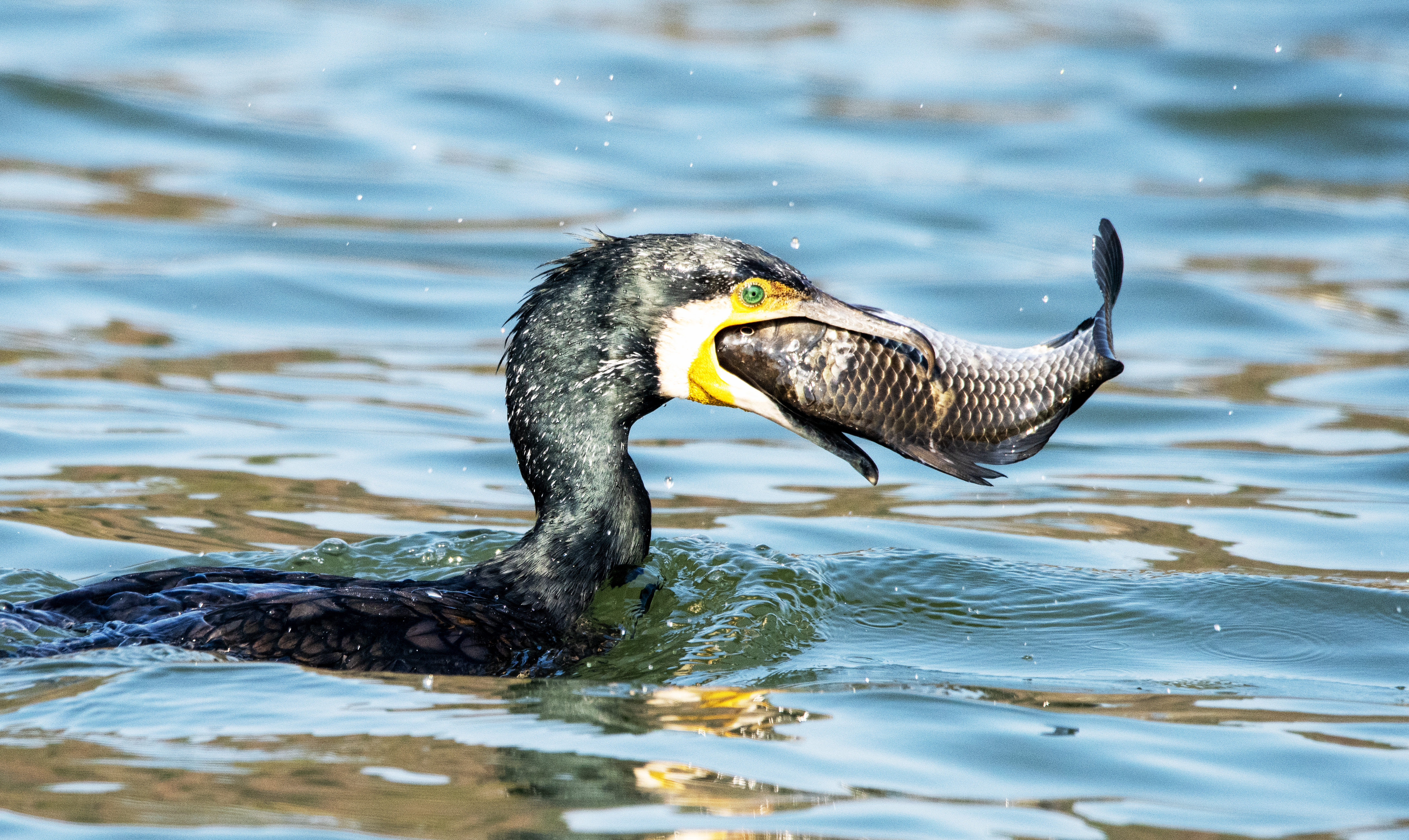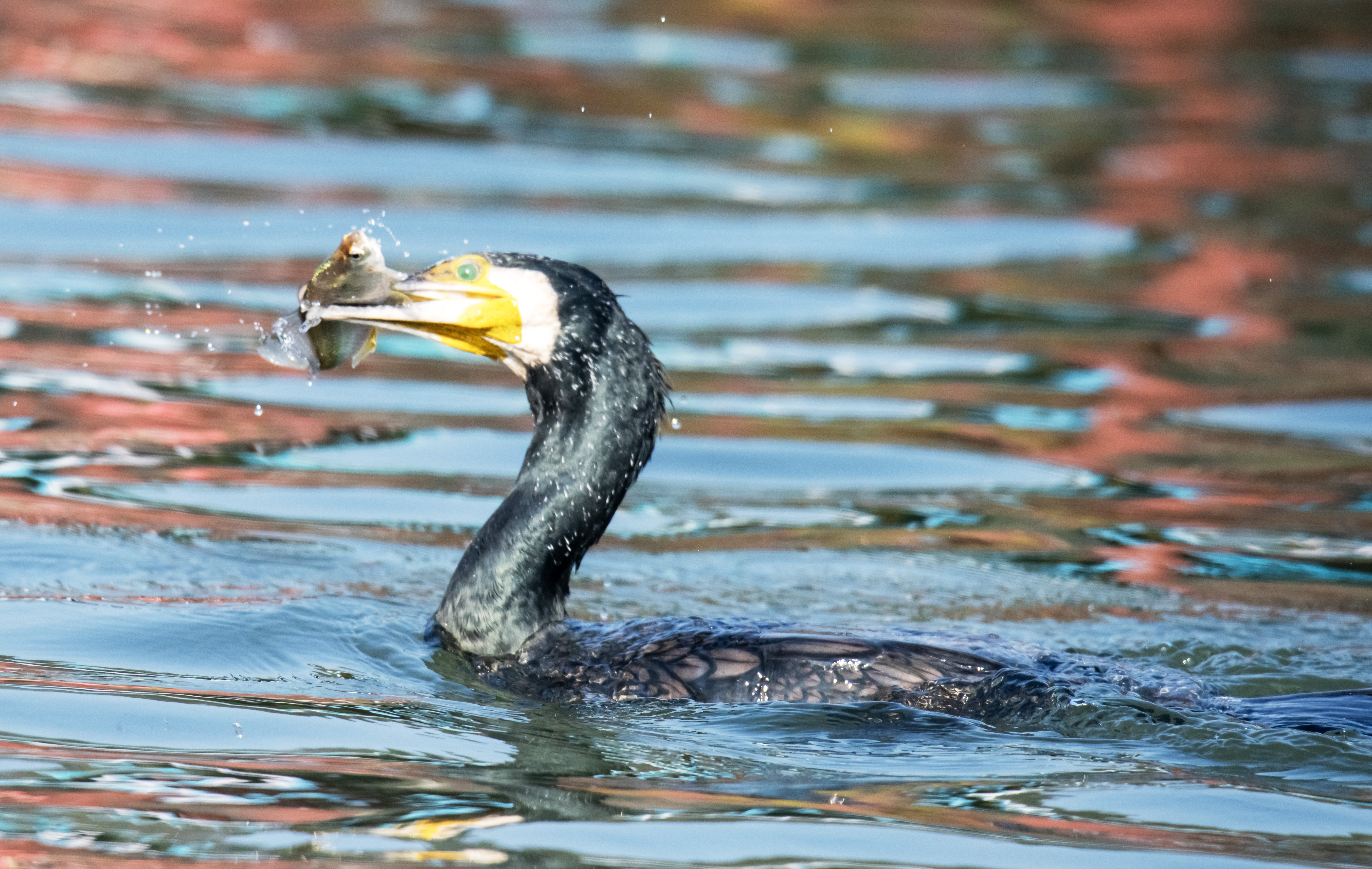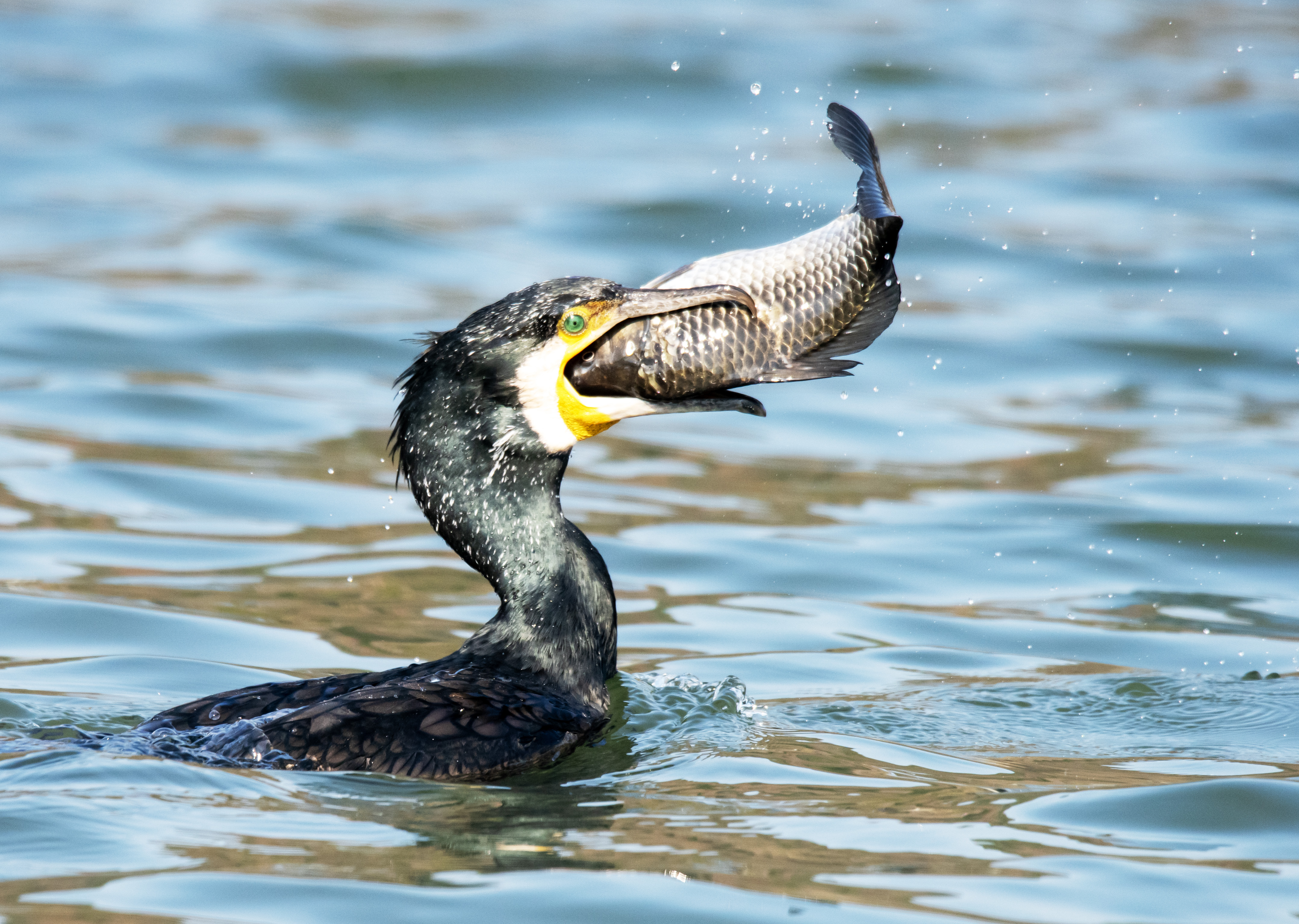 鸬鹚水中戏小鱼,转瞬又把大鱼吞