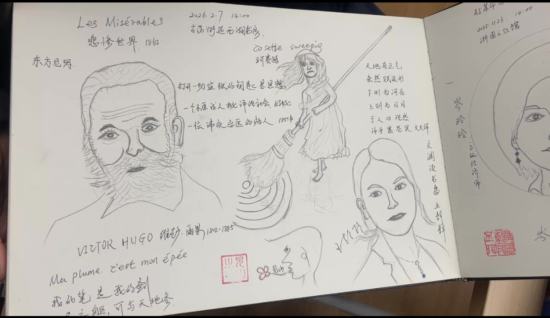腊月二十,文澜读书岛马年前的最后一场阅读分享会如期而至,有幸亲临现场参与。这次分享的是世界名著雨果的《悲惨世界》,这本书分上下两册,翻译过来近百万字,好久没有读这么厚的书籍了。 这次分享会热闹非凡,来了很多书友,原先准备的座位都不够,还添加了好多临时座位。在中英文双学士王静静老师的分享下,更进一步清晰了这本名著中主要人物性格特征,以及启示。 现场书友都很活跃,纷纷分享了自己的阅读感受,还有书友自己画了分享会绘本,非常特别。整整三小时的分享会还是意犹未尽,很多书友都没有时间发言了,读书岛的气氛越来越热烈。 这场分享让我想起老子曾说过“天道无亲,常与善人”,所以《悲惨世界》里的好人并不一定有好结局,但你依然可以做出你自己的选择。非常欣赏王静静老师送给大家的结束语“如果你想生活在什么样的社会,就努力让它变成那个样子。”我觉得至少从自己及自己的生活可以开始改变~
