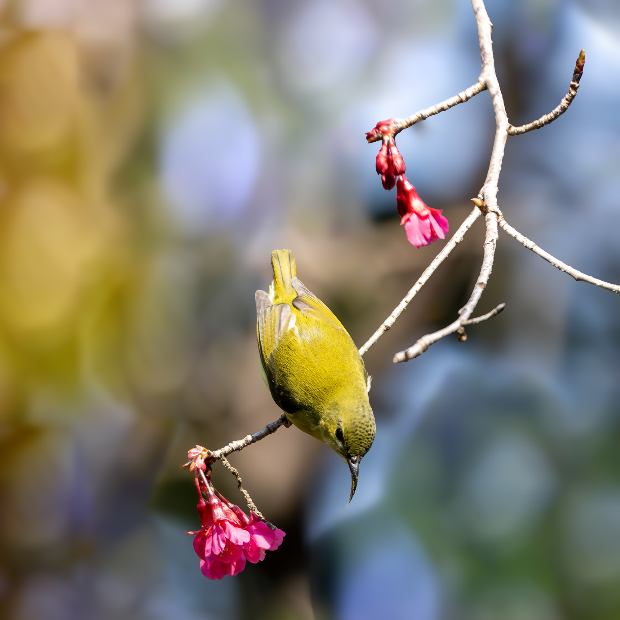 植物园吸花蜜的太阳鸟!(雌啦)