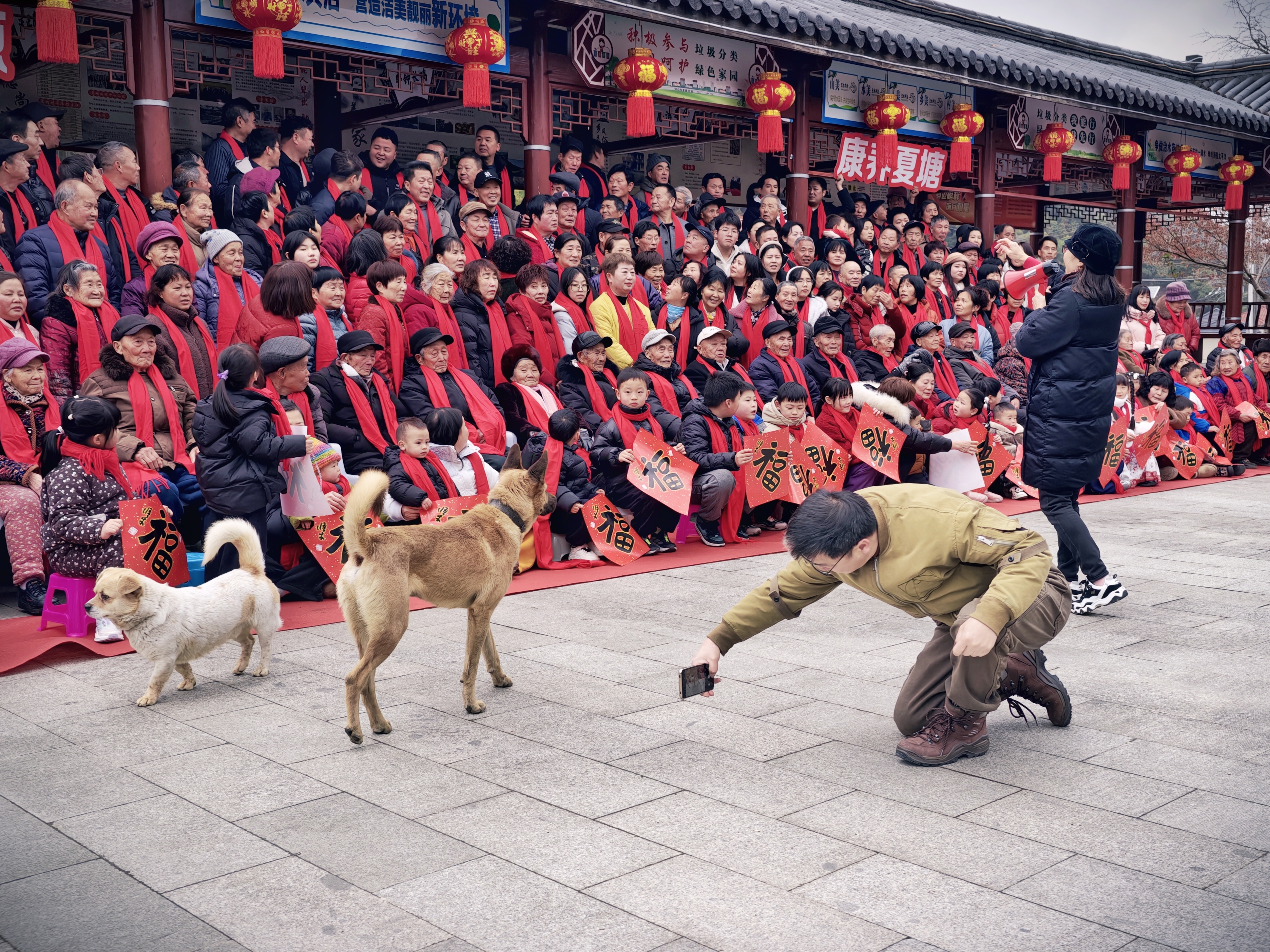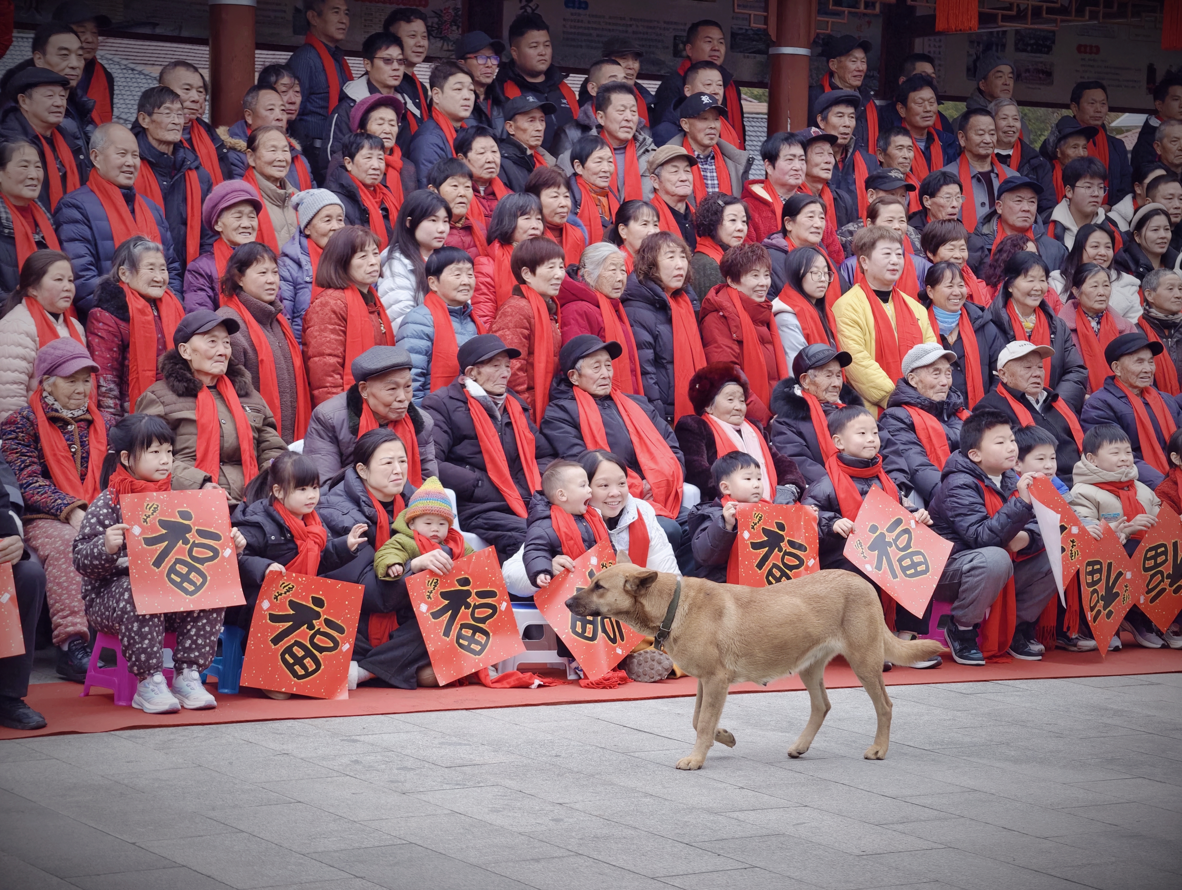 拍全村福时的有趣画面