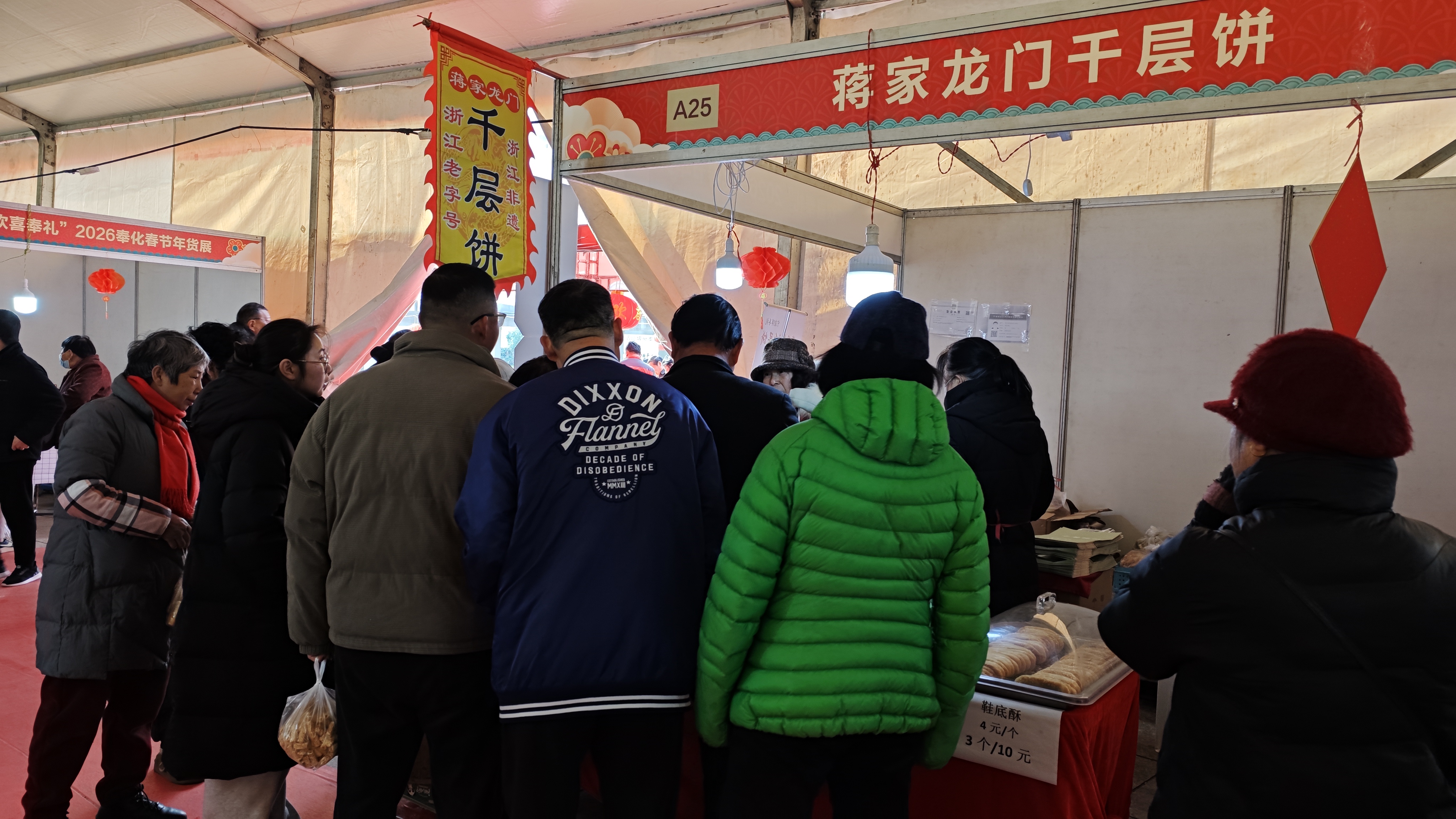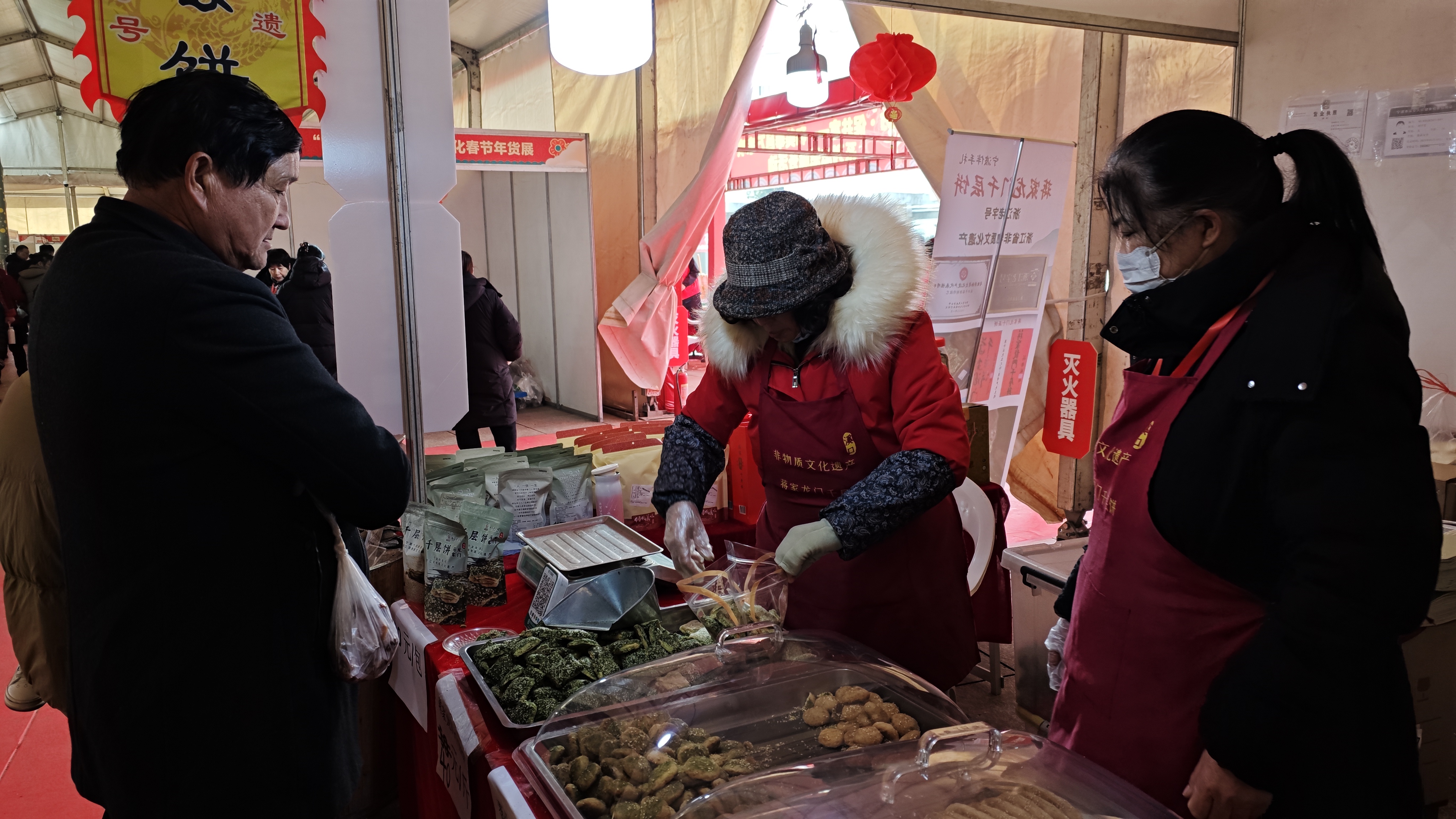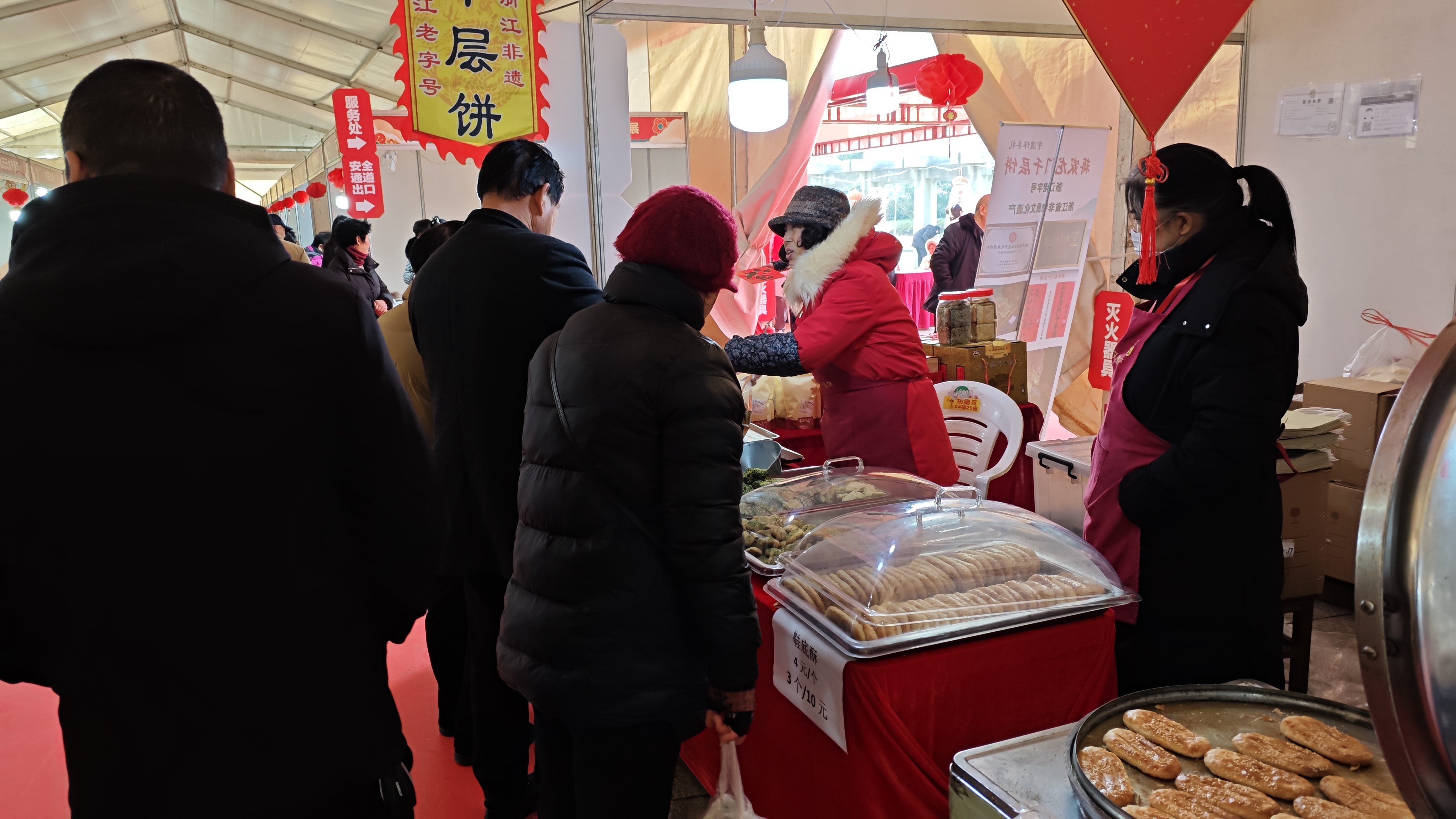 奉化非遗美食亮相"欢喜奉礼"年货展 传统技艺点燃新春消费热潮 马宜奋毛美儿 2月5日至9日,"欢喜奉礼"2026奉化春节年货展在岳林文化广场火热举行。奉化非遗协会积极组织会员参展,以传统美食为载体,向市民展示非遗的独特魅力,为新春佳节增添浓浓年味。 本届年货展规模盛大,共设置110个产品推广展位、5个特装活动专区及2个特色功能专区,涵盖肉禽蛋奶、粮油米面、鲜活水产、时令蔬果等全品类年货。在众多展位中,非遗美食格外引人注目,成为市民争相打卡的热门区域。 古法工艺受热捧 蒋家龙门千层饼受欢迎 在溪口蒋家龙门千层饼展位前,前来选购的市民络绎不绝,现场人头攒动。作为浙江省非物质文化遗产,蒋家龙门千层饼坚持古法柴火烘烤工艺,每一块饼都需经过12-13道精细工序,采用独特的27层手工折叠技法——上下外皮各1层、馅料1层,经两次折叠形成27层酥皮,成品厚度仅1-2厘米,层层分明不粘连。 "我们选用象山港冬苔菜、菜籽油等优质原料,烘焙需2小时,全程纯手工制作,不添加任何防腐剂。"展位负责人介绍道。刚出炉的千层饼外层微焦带韧,内里松软交错,咸鲜苔香与芝麻味完美融合,咬下去"咔嚓"作响,不掉渣却满口香,咸甜比例恰到好处。 "快过年了,买点非遗传统食品当年货刚刚好,春节送礼既实惠又有面子,品质也让人放心。"市民陈女士一边挑选一边笑着说道。 非遗美食百花齐放 传统味道温暖人心 除蒋家龙门千层饼外,昇仟食品带来的莱饼、小桃酥等非遗食品同样深受市民喜爱。酥脆可口的口感、承载记忆的味道,让这些传统美食成为年货清单上的"必选项"。现场处处洋溢着置办年货的喜庆氛围,市民们在品尝与选购中感受传统文化的温度。 搭建展示平台 推动非遗活态传承 奉化非遗协会相关负责人表示,此次组织会员参展,不仅展示了奉化非遗的独特魅力,有效促进了非遗的传播,更进一步提升了奉化非遗美食的品牌力和市场影响力。未来,协会将继续搭建多元化展示平台,积极探索传统技艺与现代生活的融合路径,让非遗在新时代焕发更加绚丽的光彩。为奉城消费市场注入强劲活力。