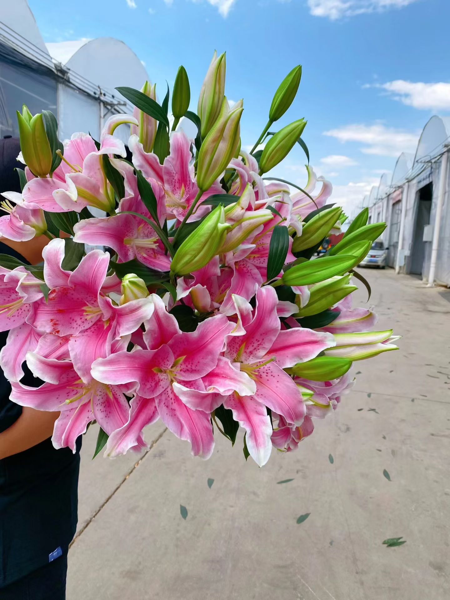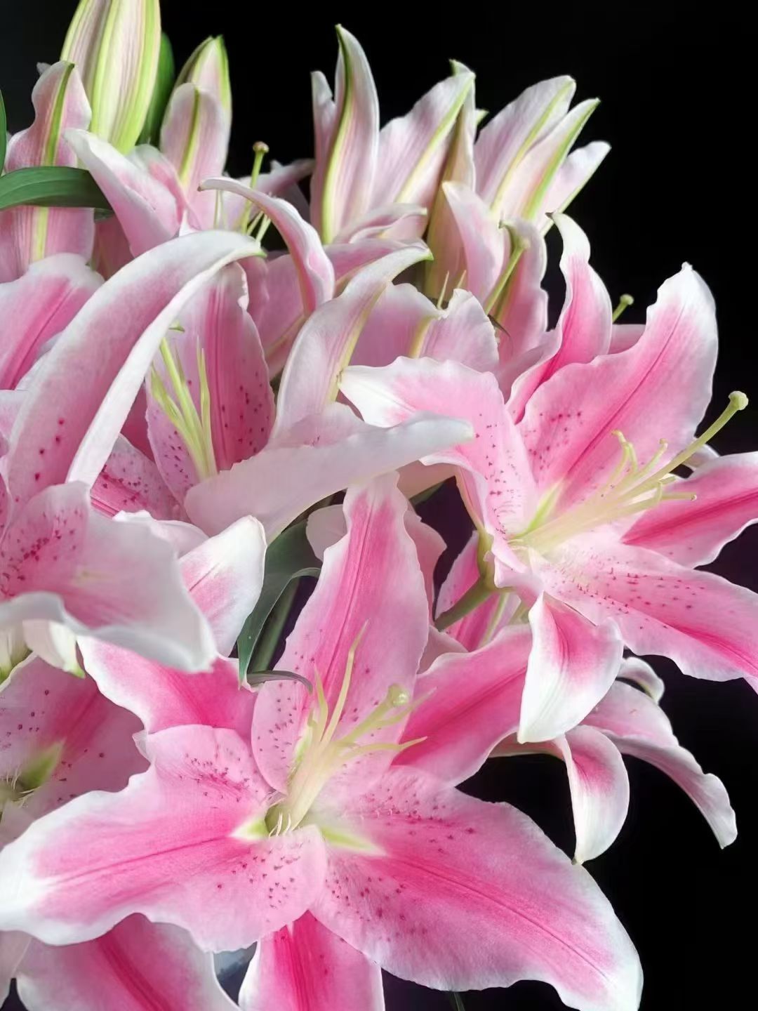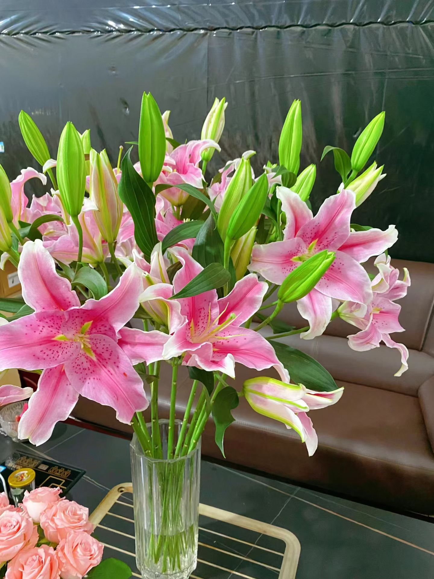 粉百合静立玻璃瓶中,柔光轻抚花瓣,绿意与粉霞在悄然私语。
